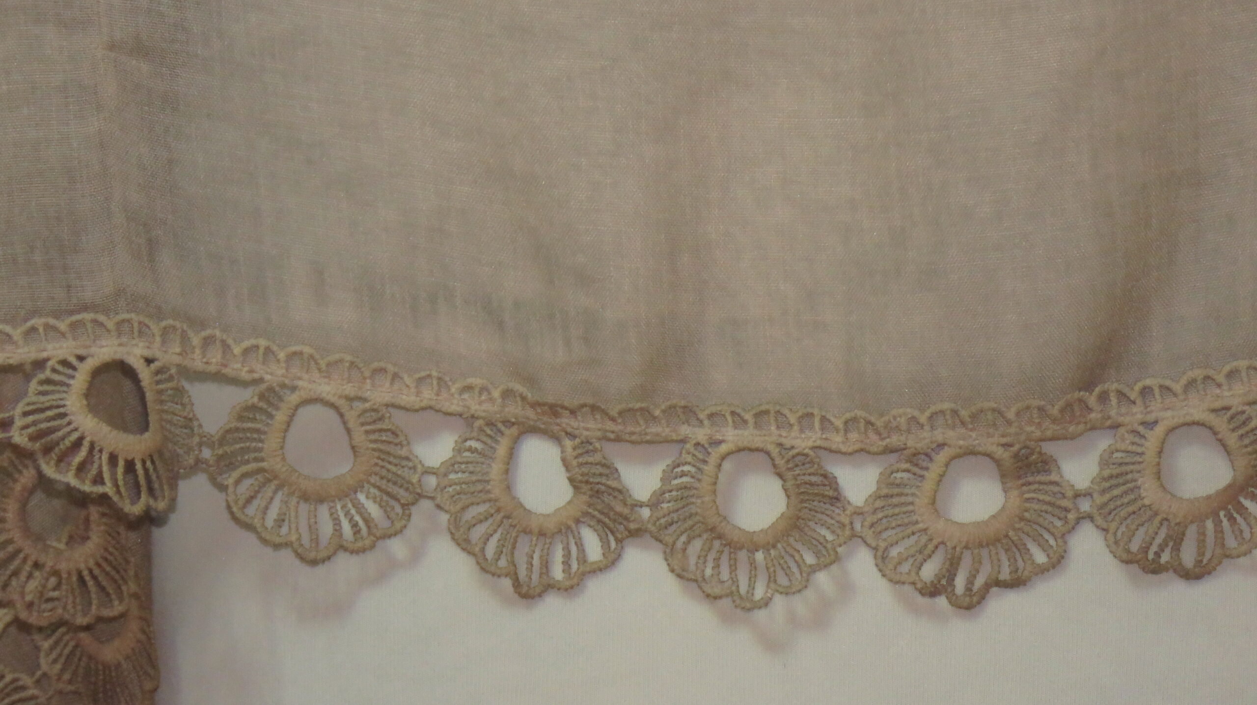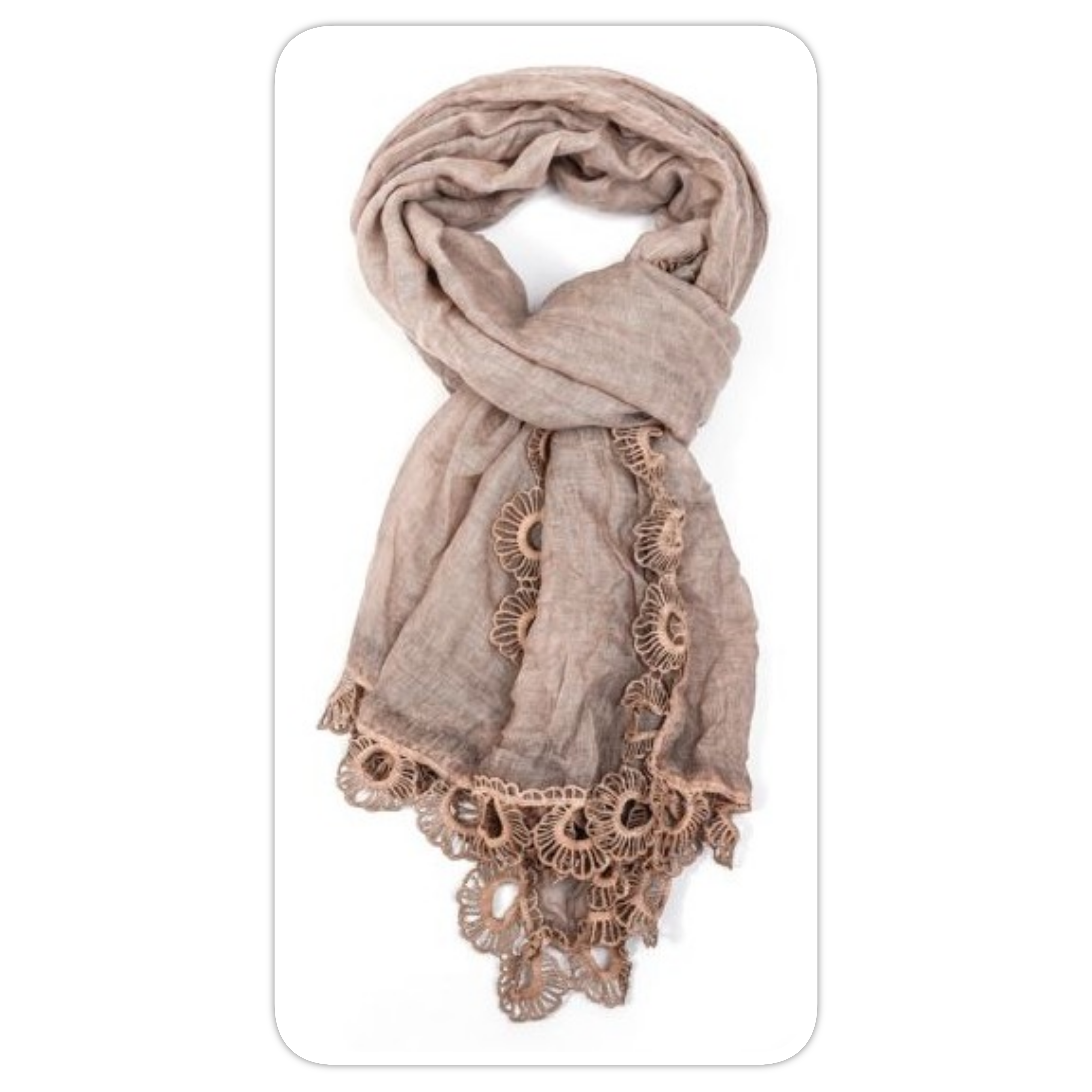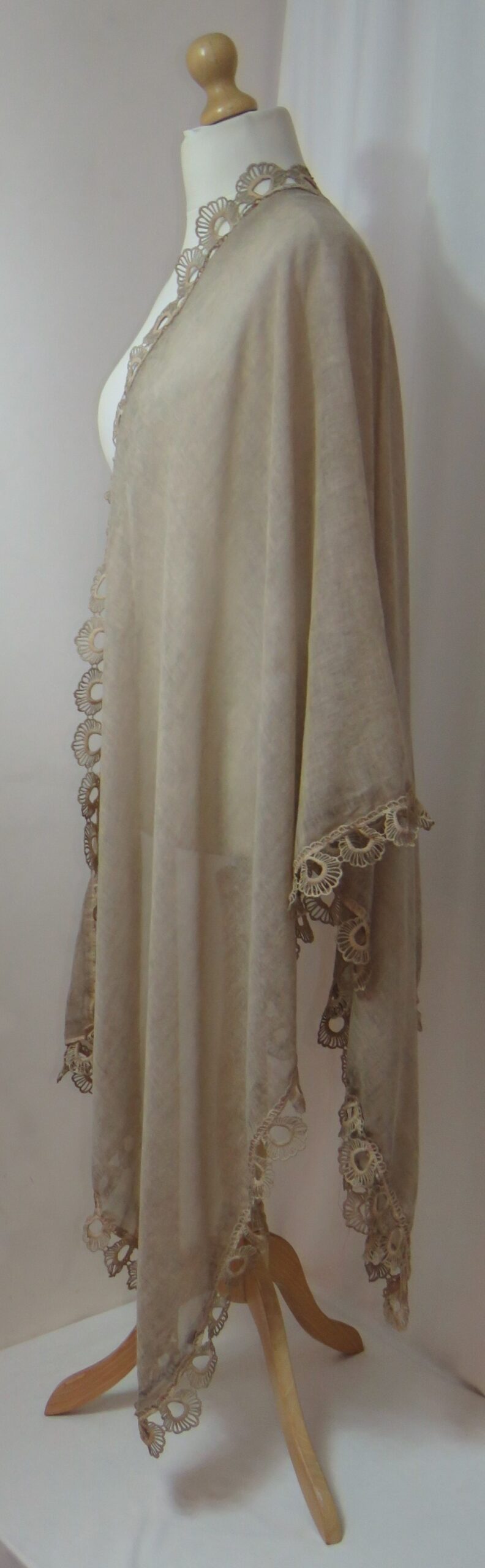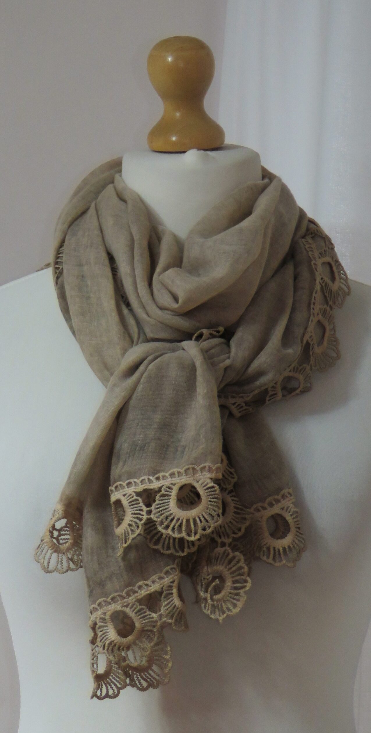 Beige, vintage-wash, lace-edged, large scarf