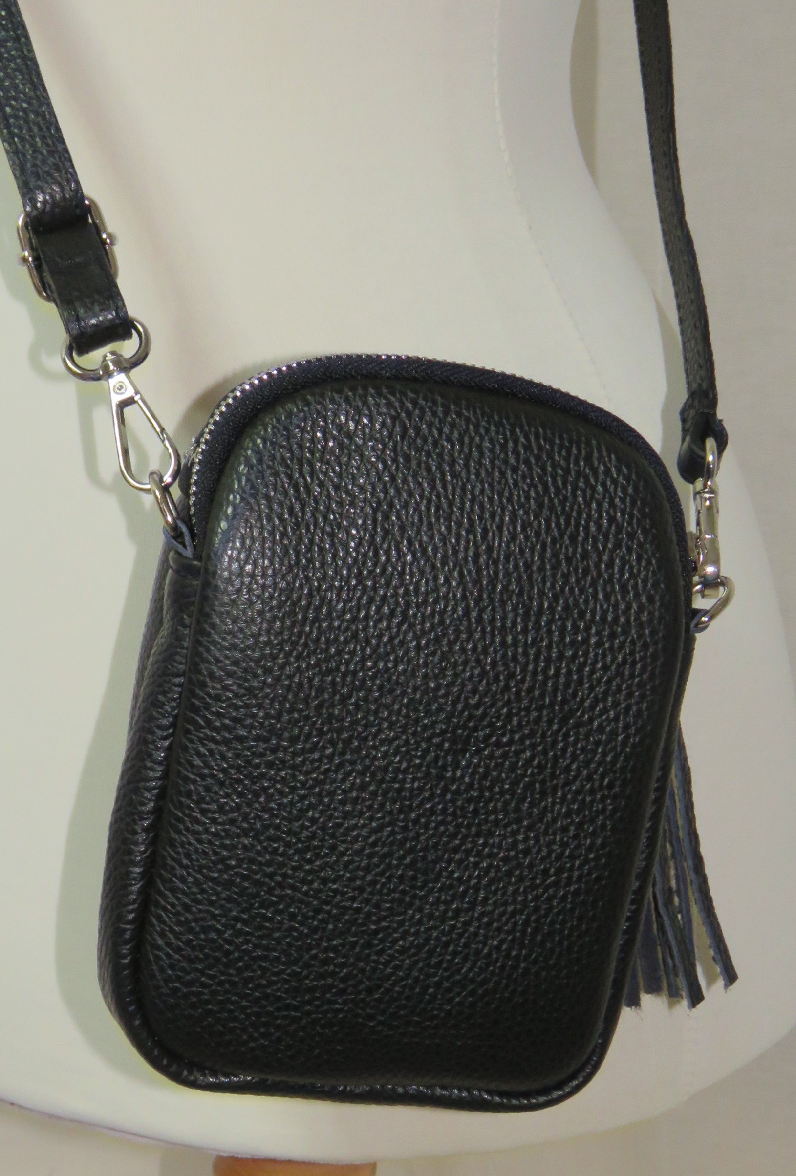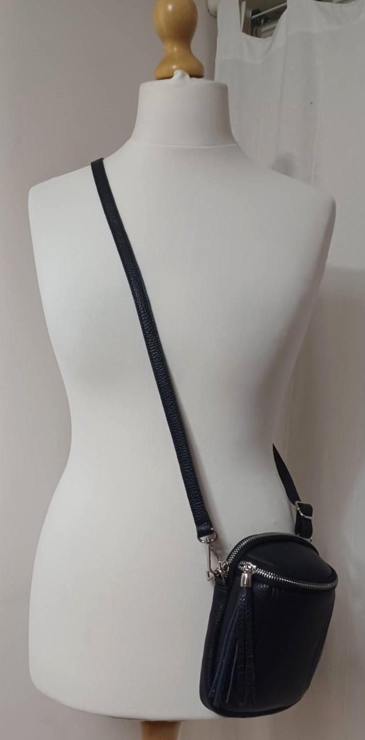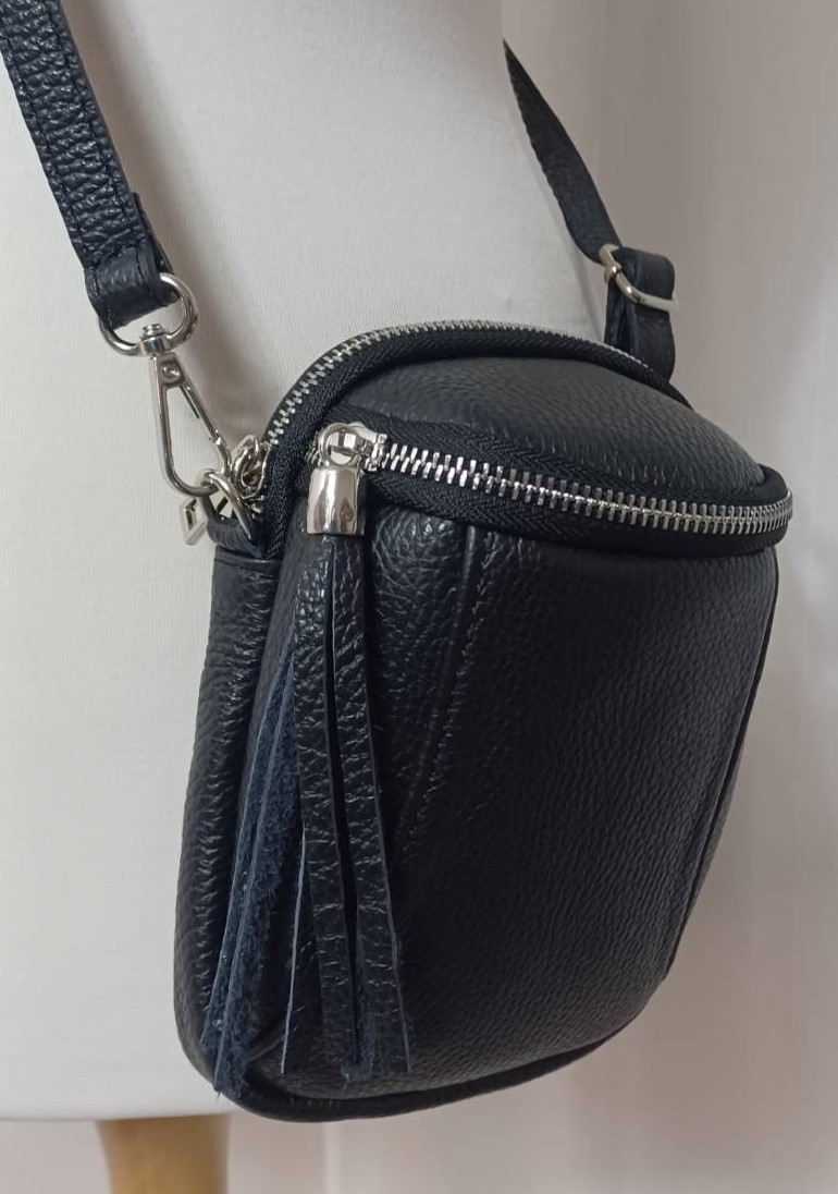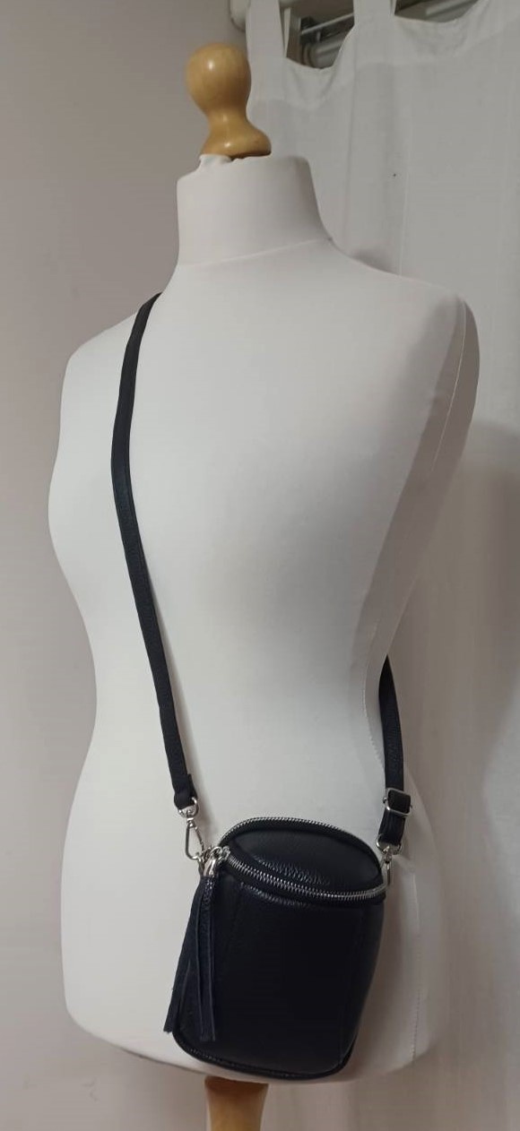 Black, Italian leather, crossbody/shoulder bag
