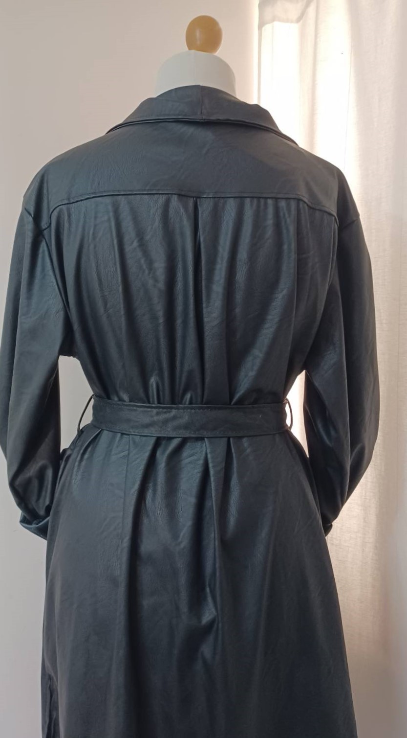- Double-faced fabric – pleather on the outside and viscose on the inside – which is 76% viscose/19% polyamide/5% elastane (photo 11 shows the reverse side)