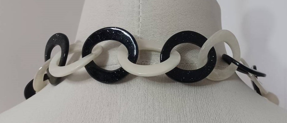 Black & white, resin-link necklace