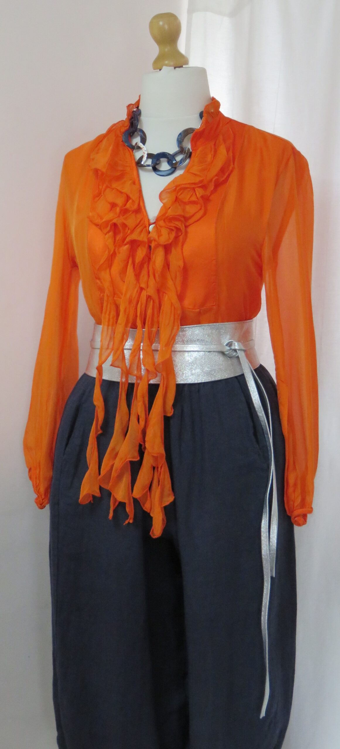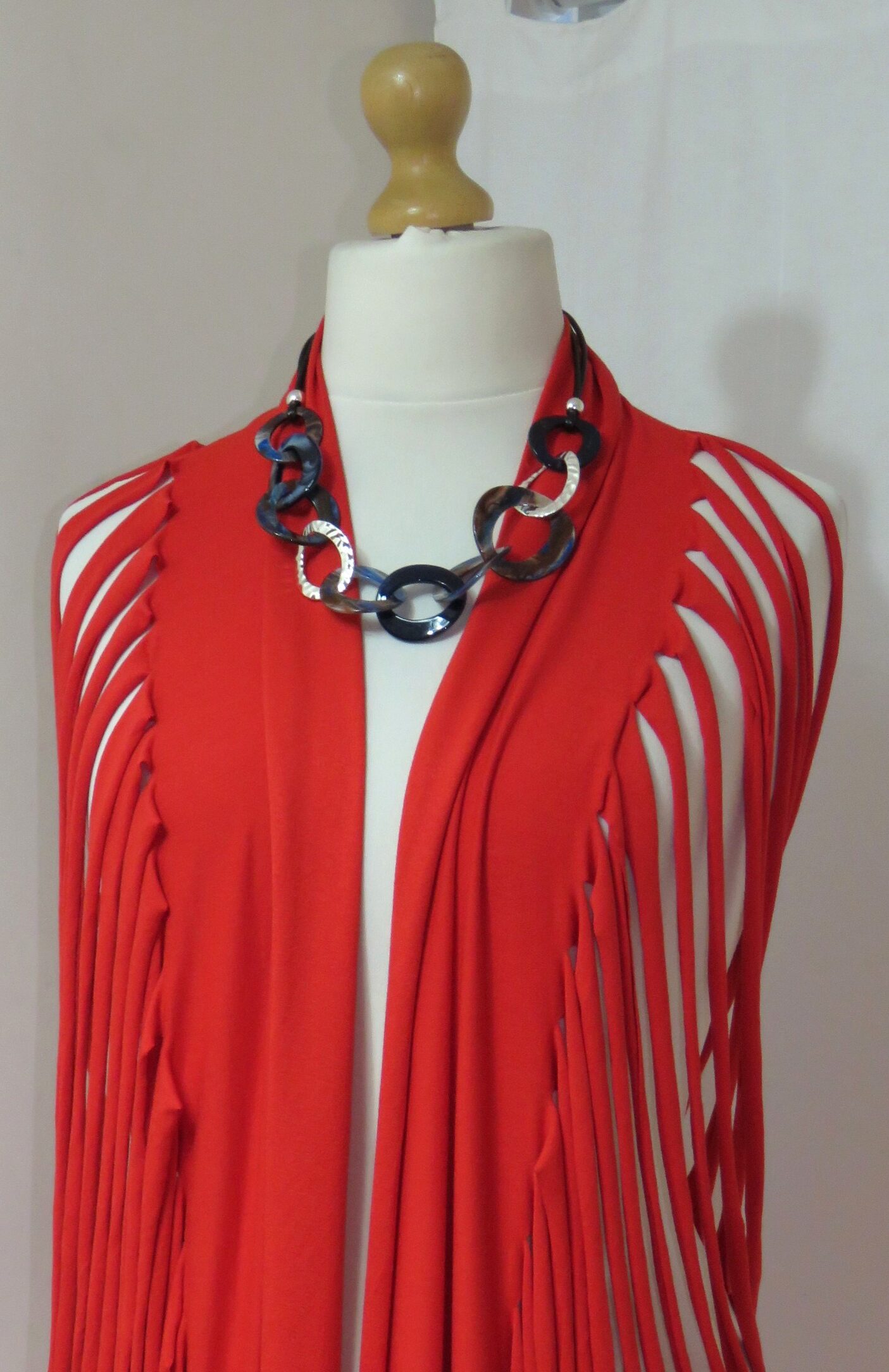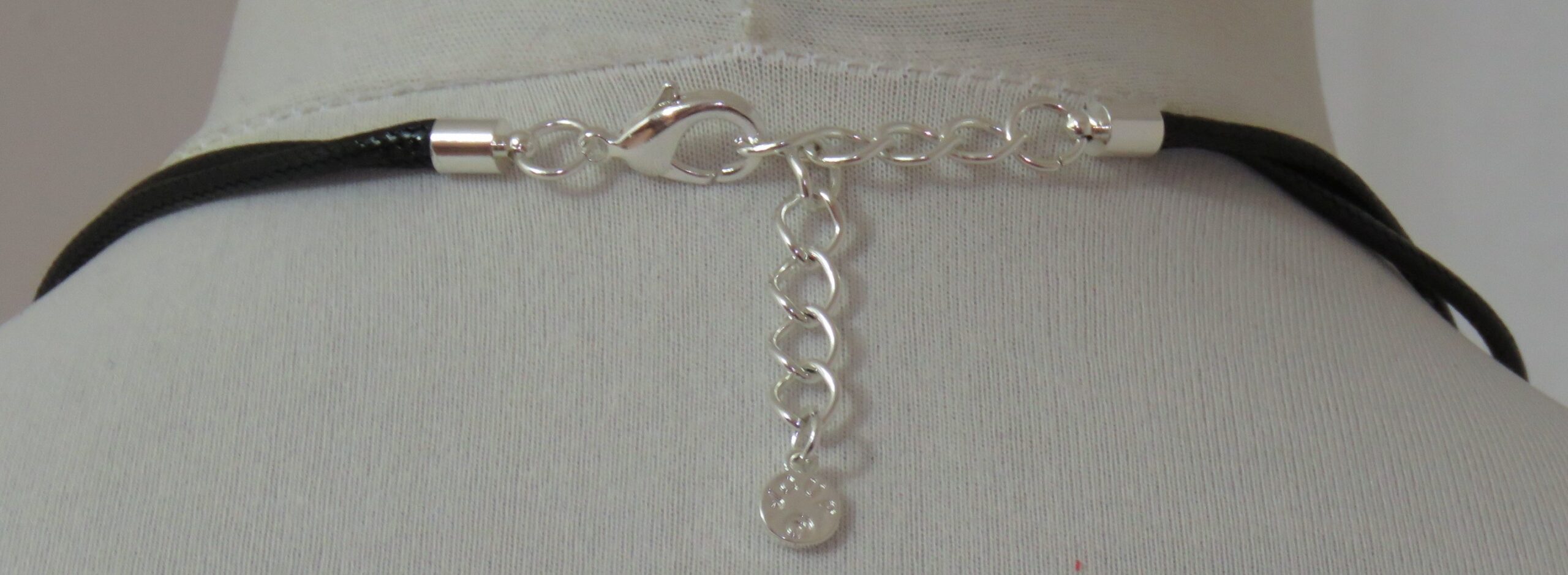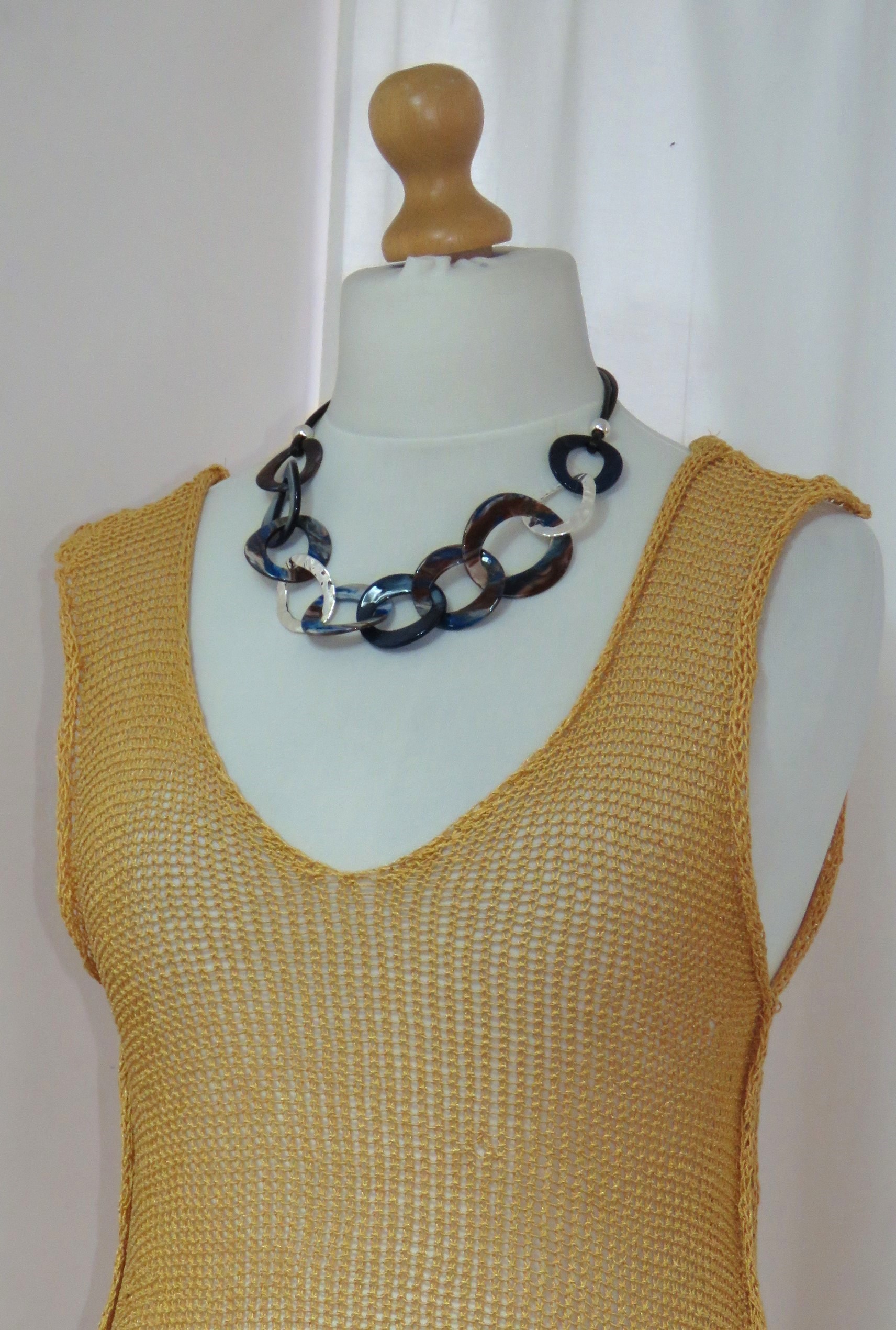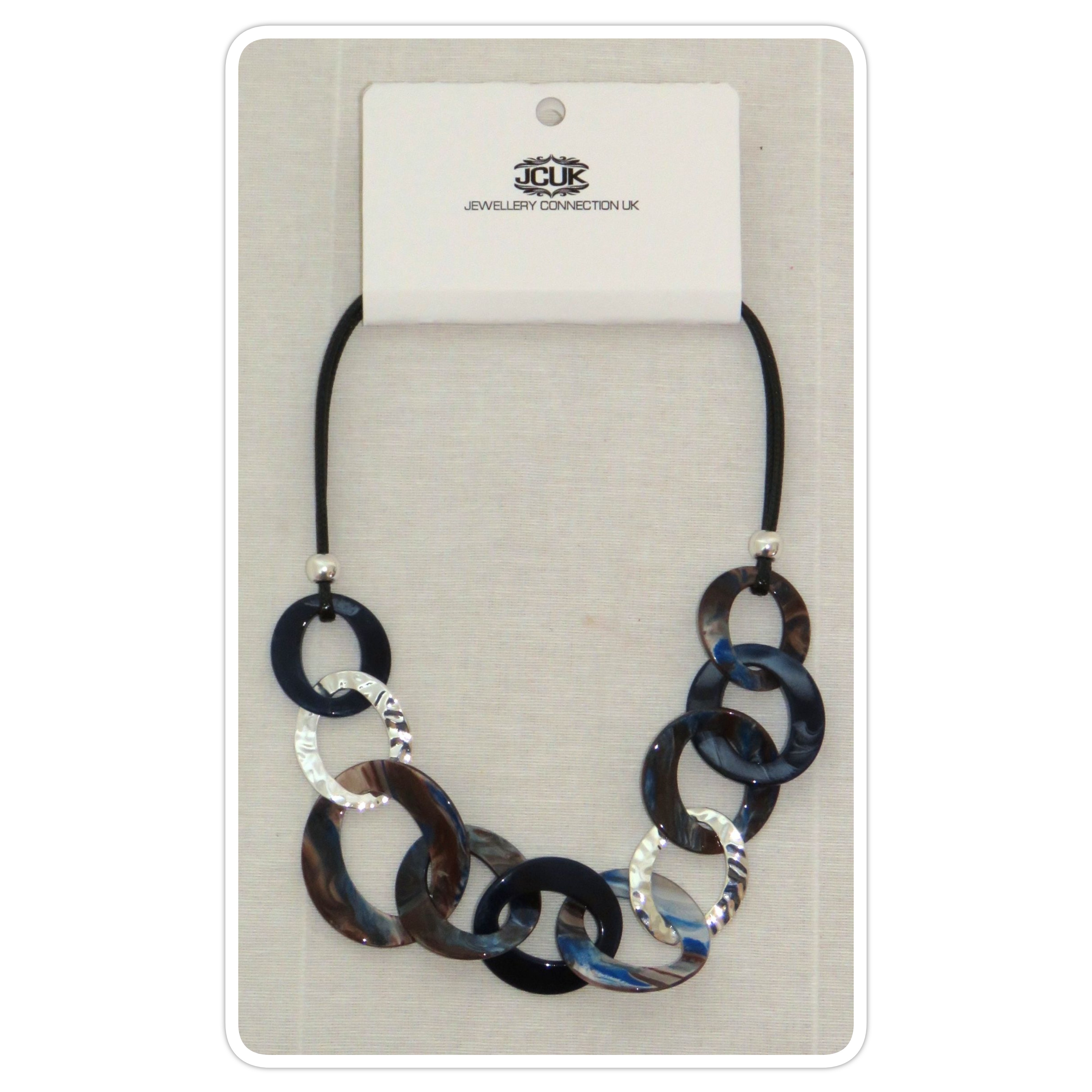 - Statement necklace, made of blue & brown marble-effect resin links and hammered, silver-coloured metal ones, suspended from a waxed cord