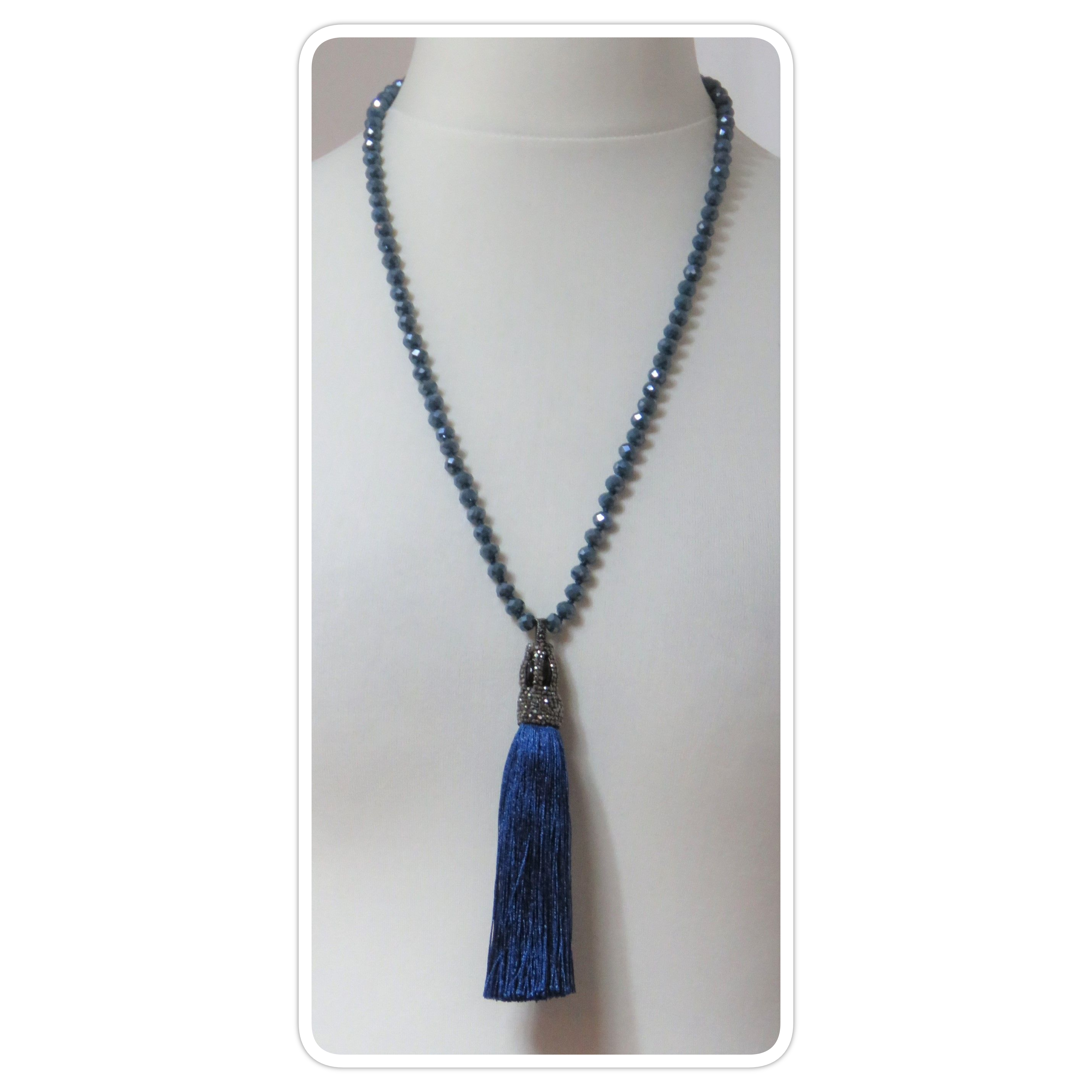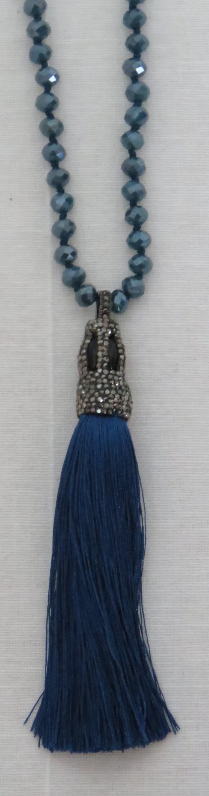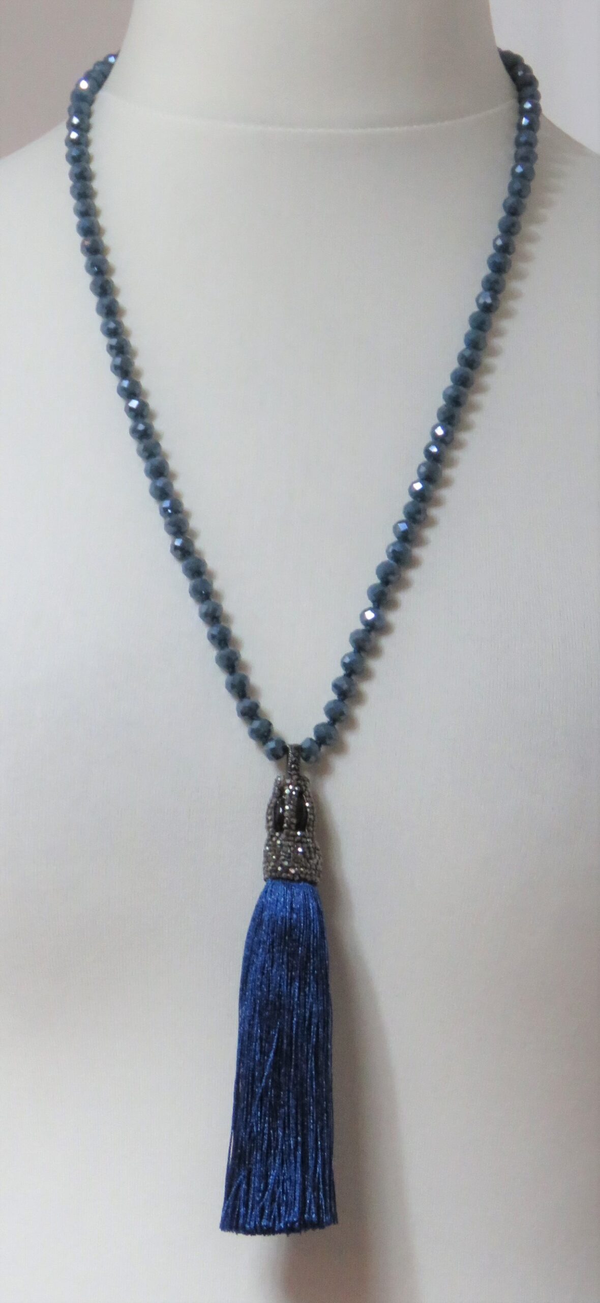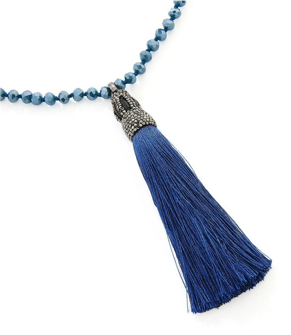 Blue, faceted-bead, tassel, necklace