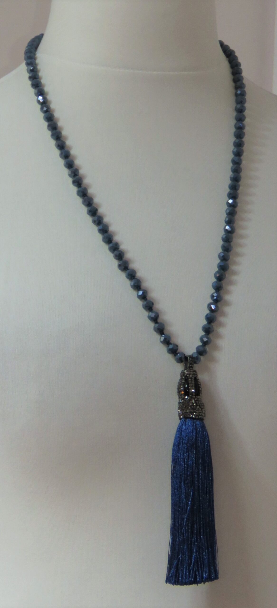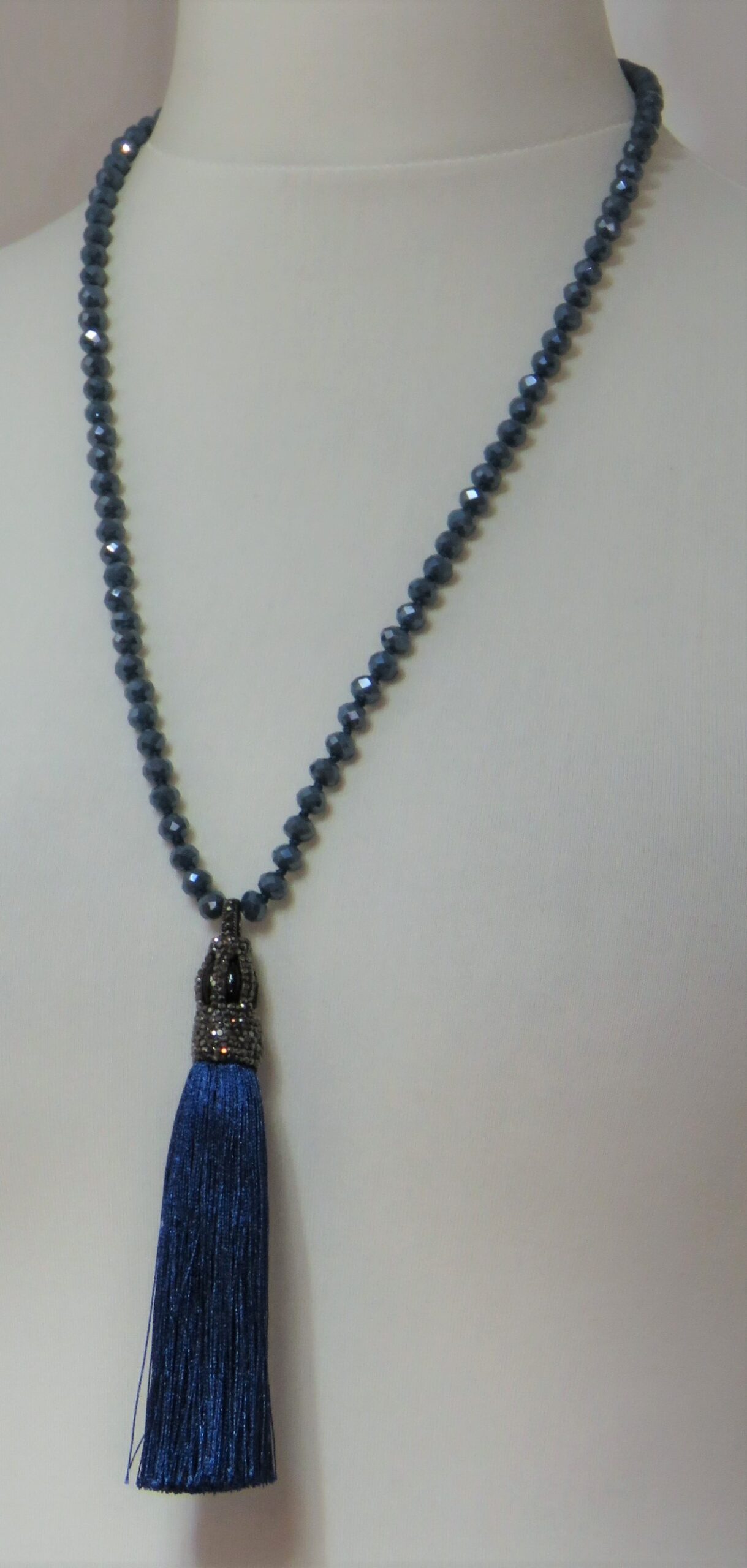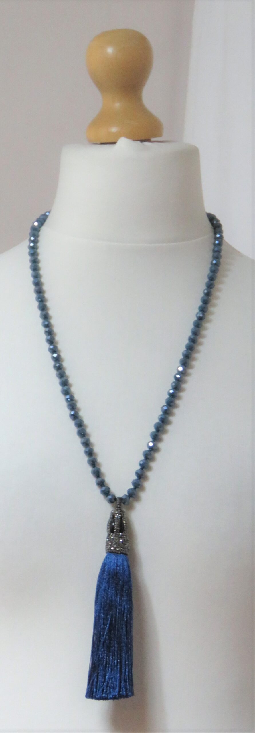 Blue, faceted-bead, tassel, necklace