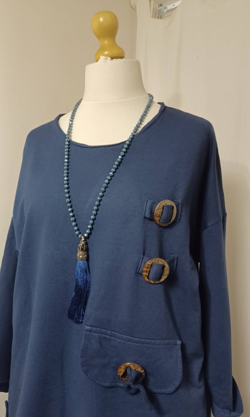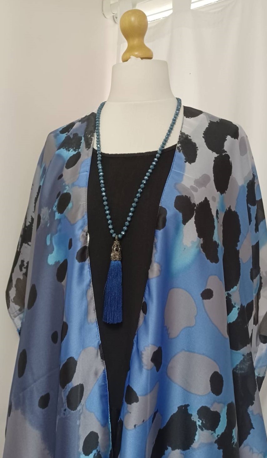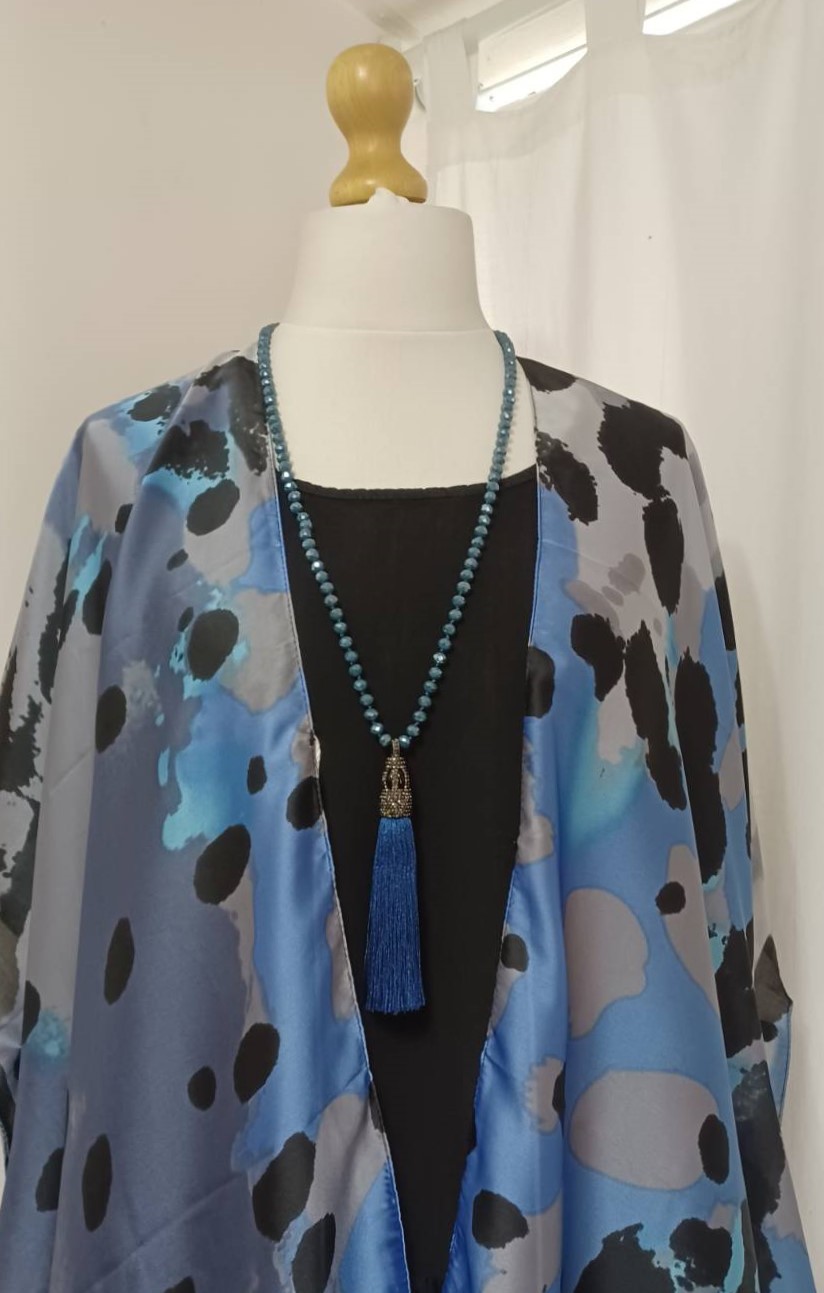 • Lagenlook, statement necklace, made of faceted, blue-coloured beads and a fabulous, silky, blue tassel