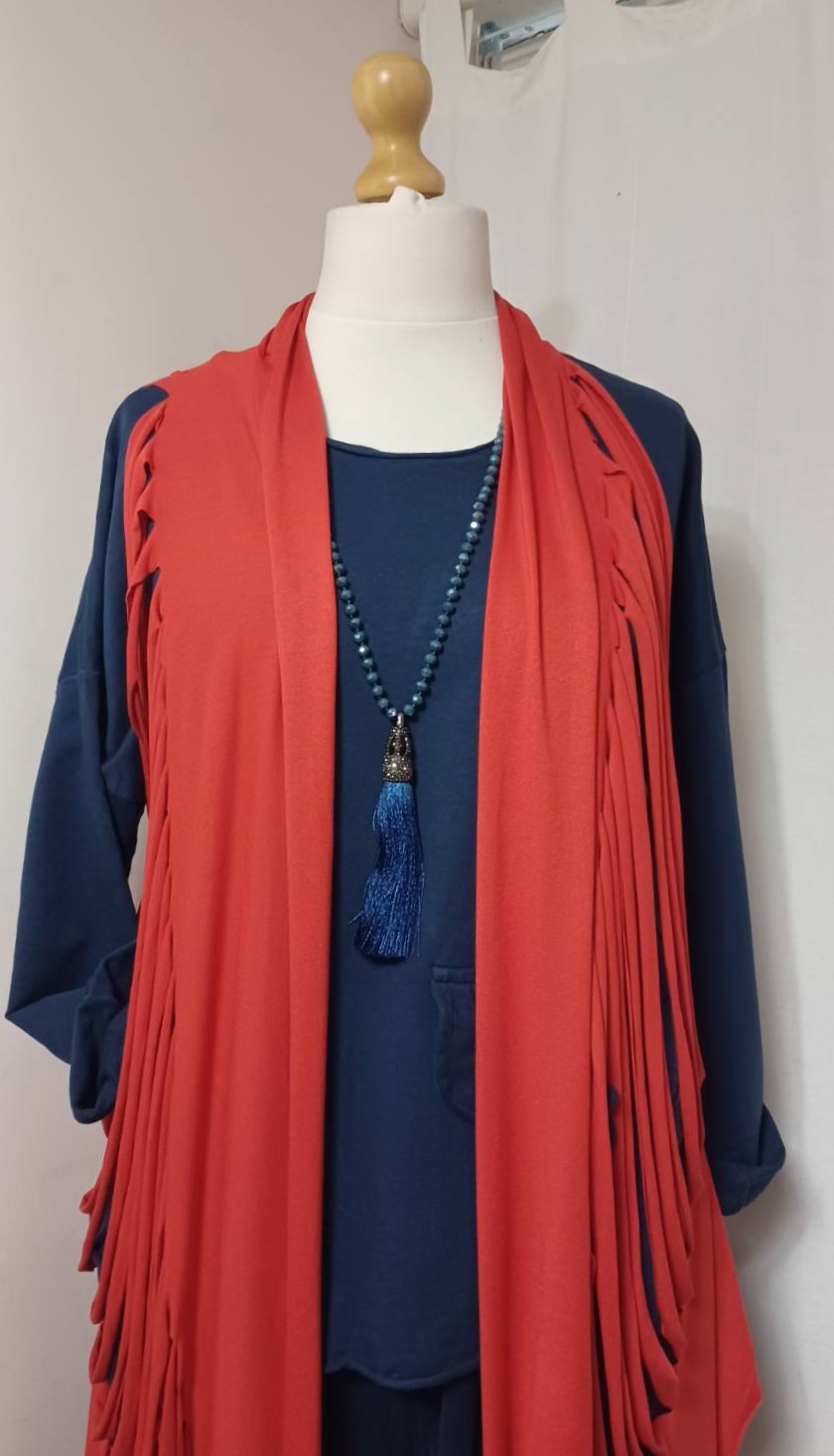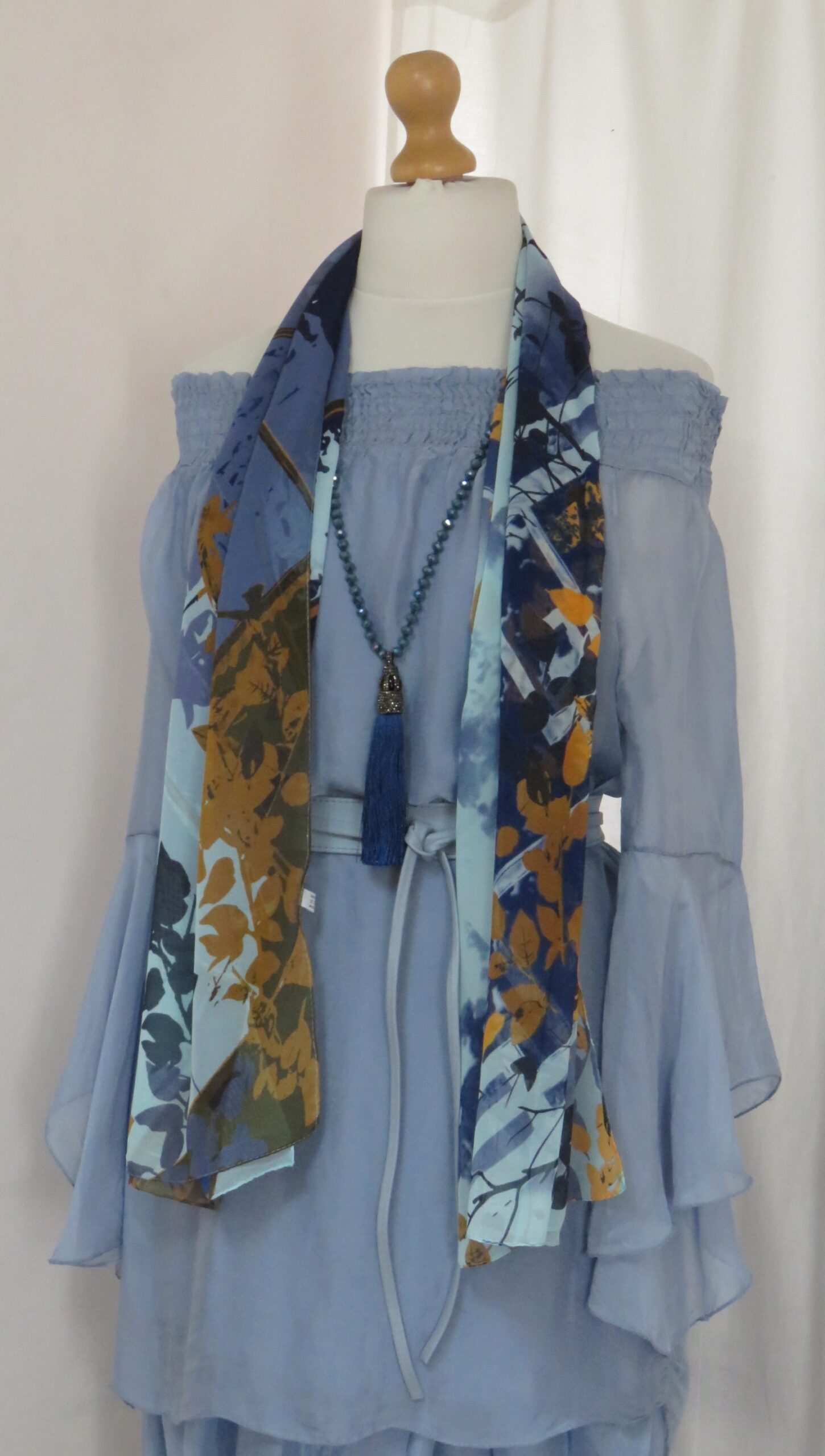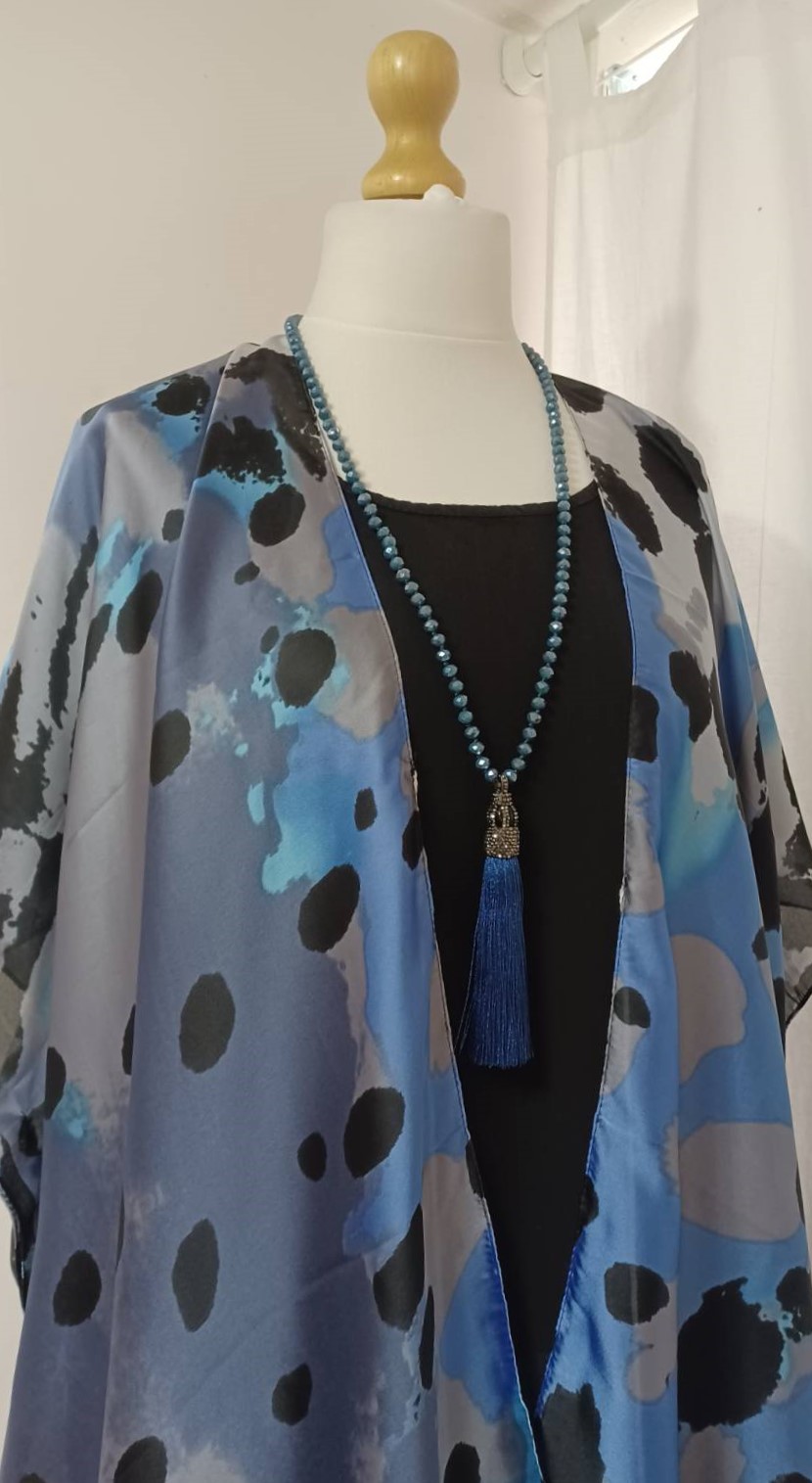 • Lagenlook, statement necklace, made of faceted, blue-coloured beads and a fabulous, silky, blue tassel