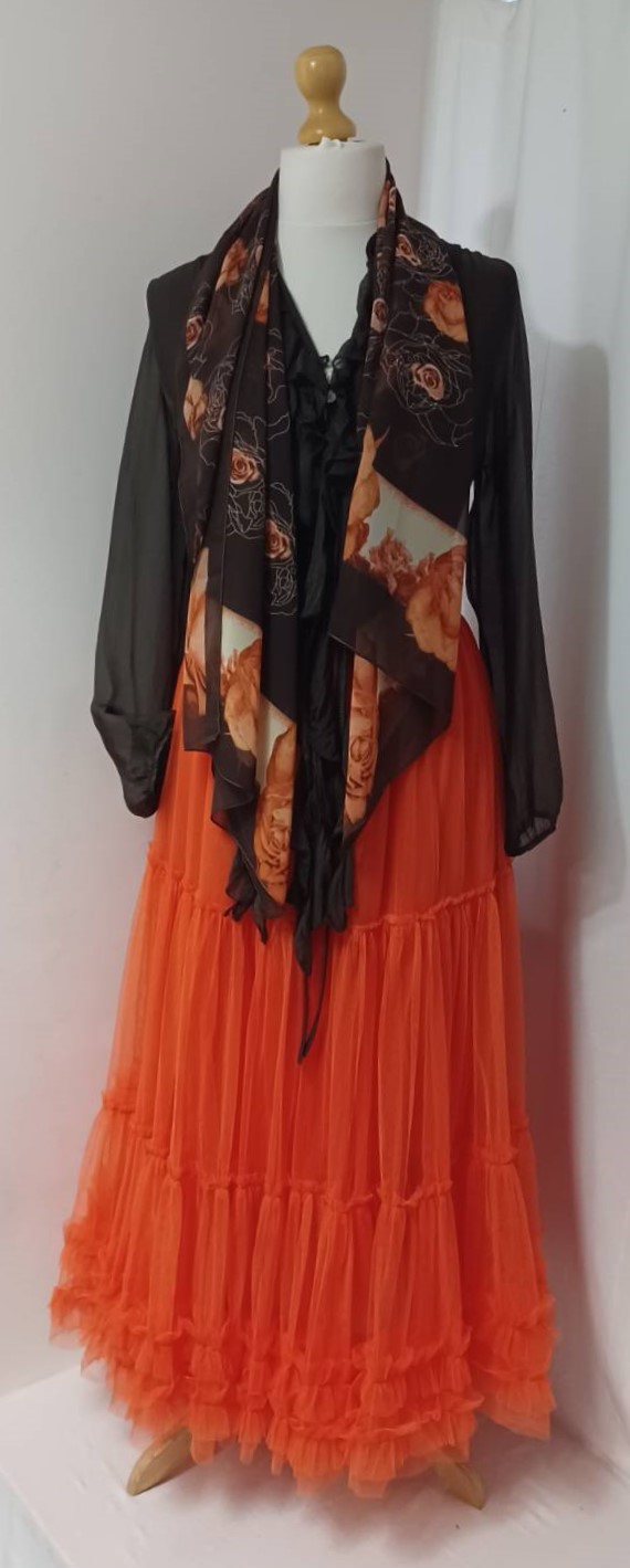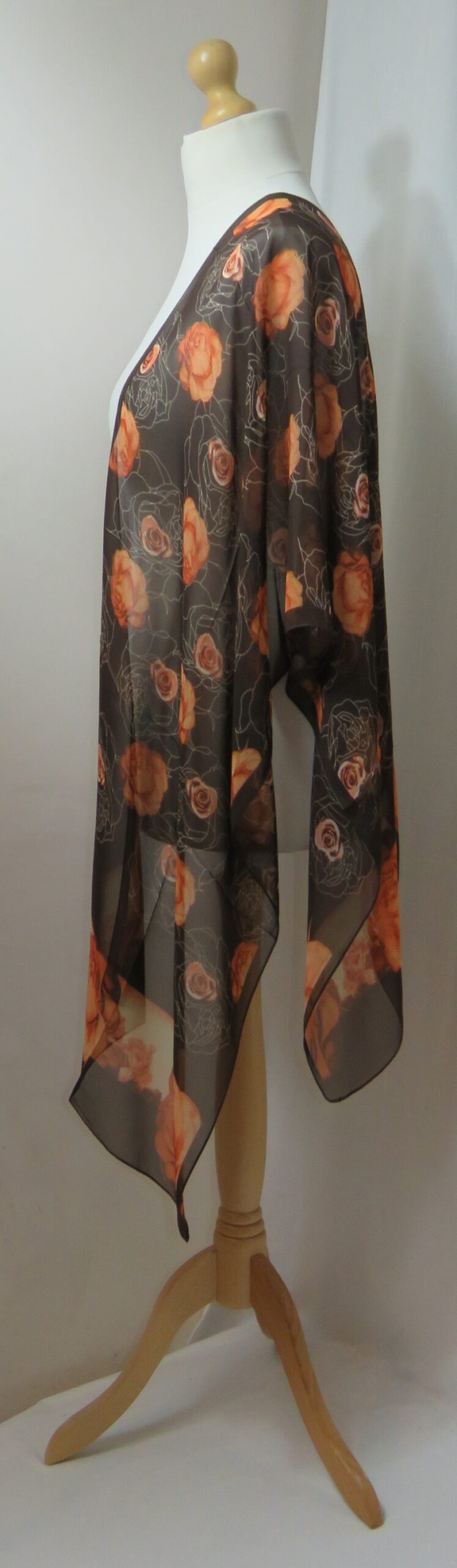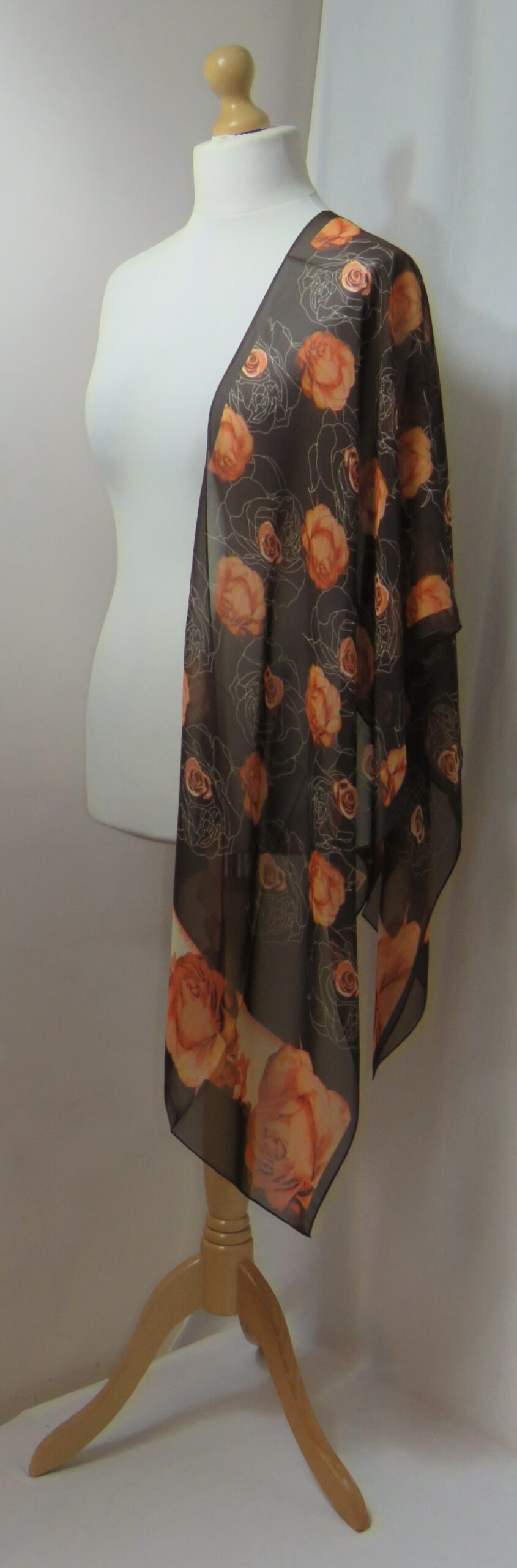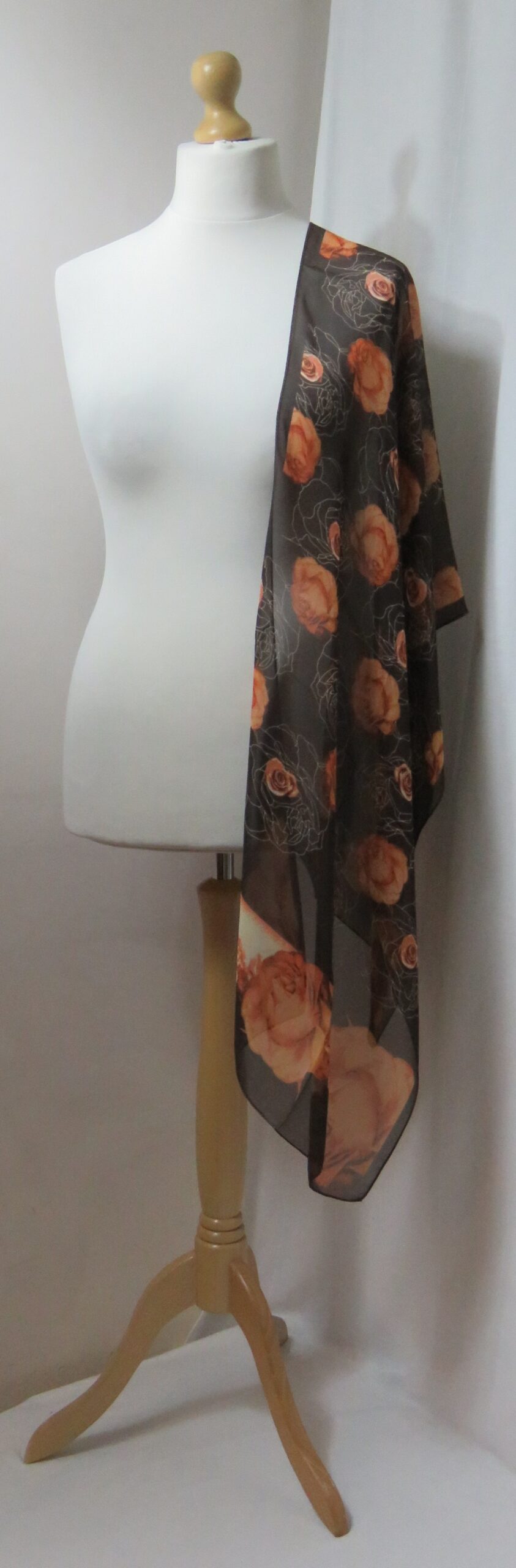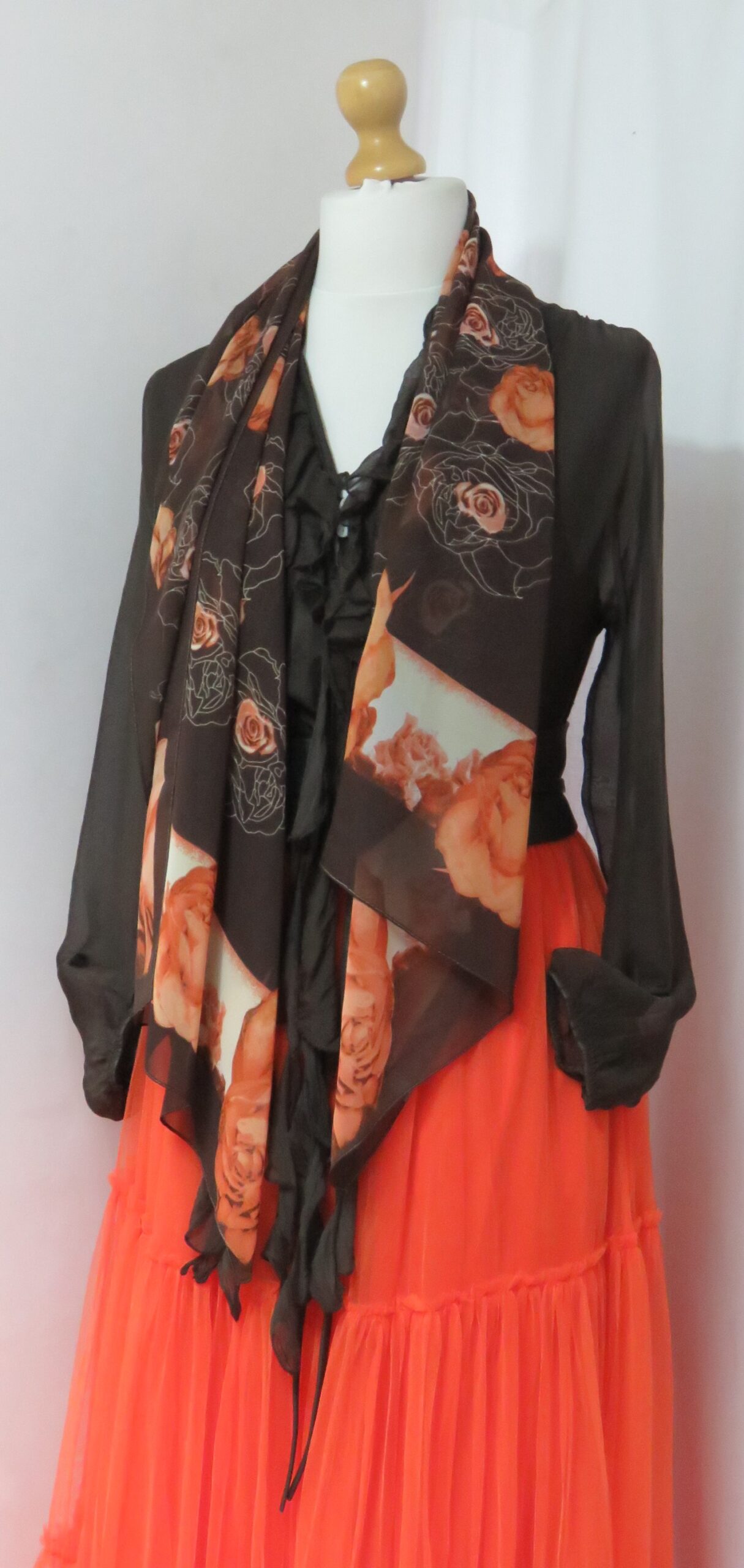 Brown & orange, floral roses, chiffon scarf