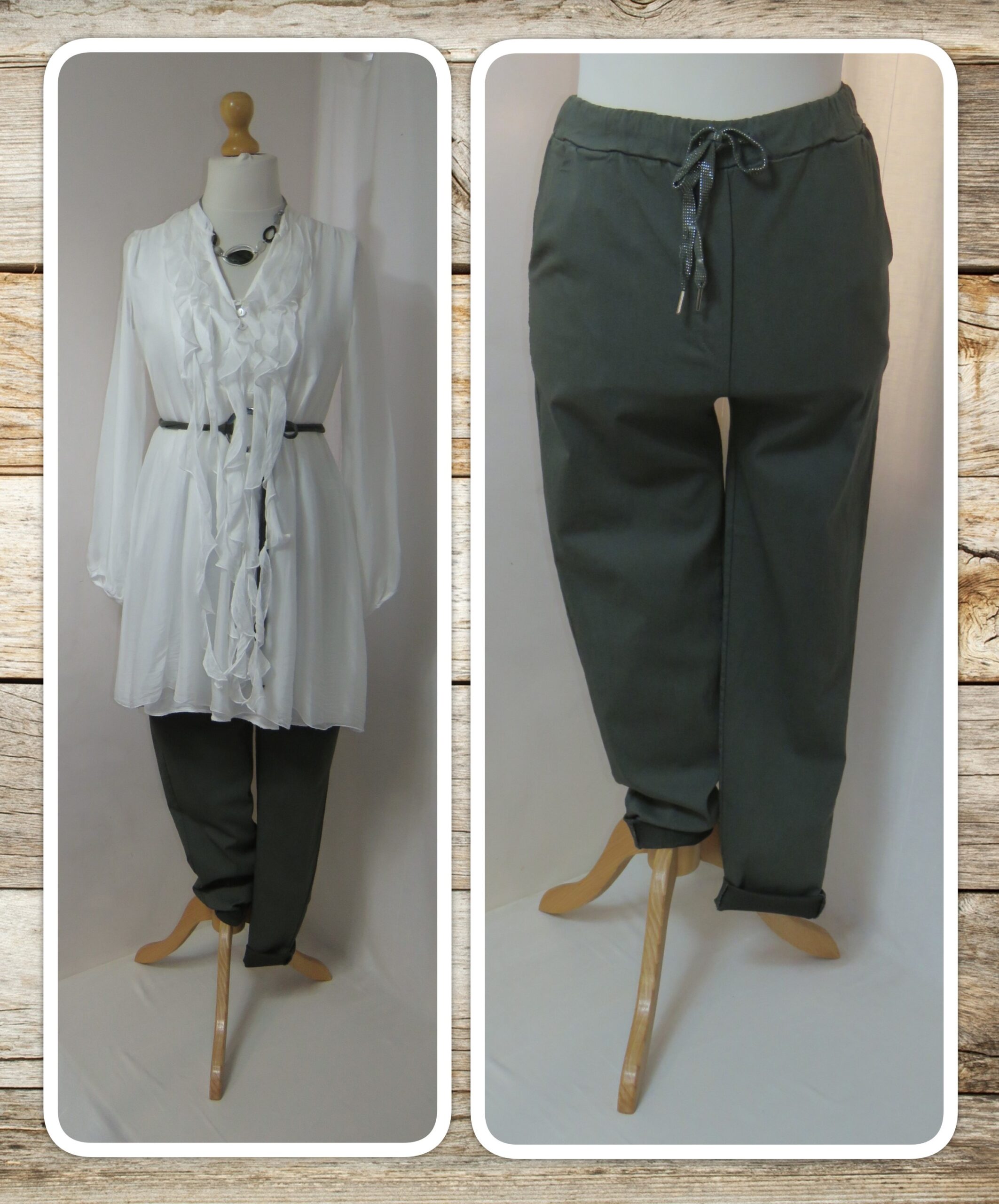 - Beautiful pair of Lagenlook, dark khaki, Magic pants