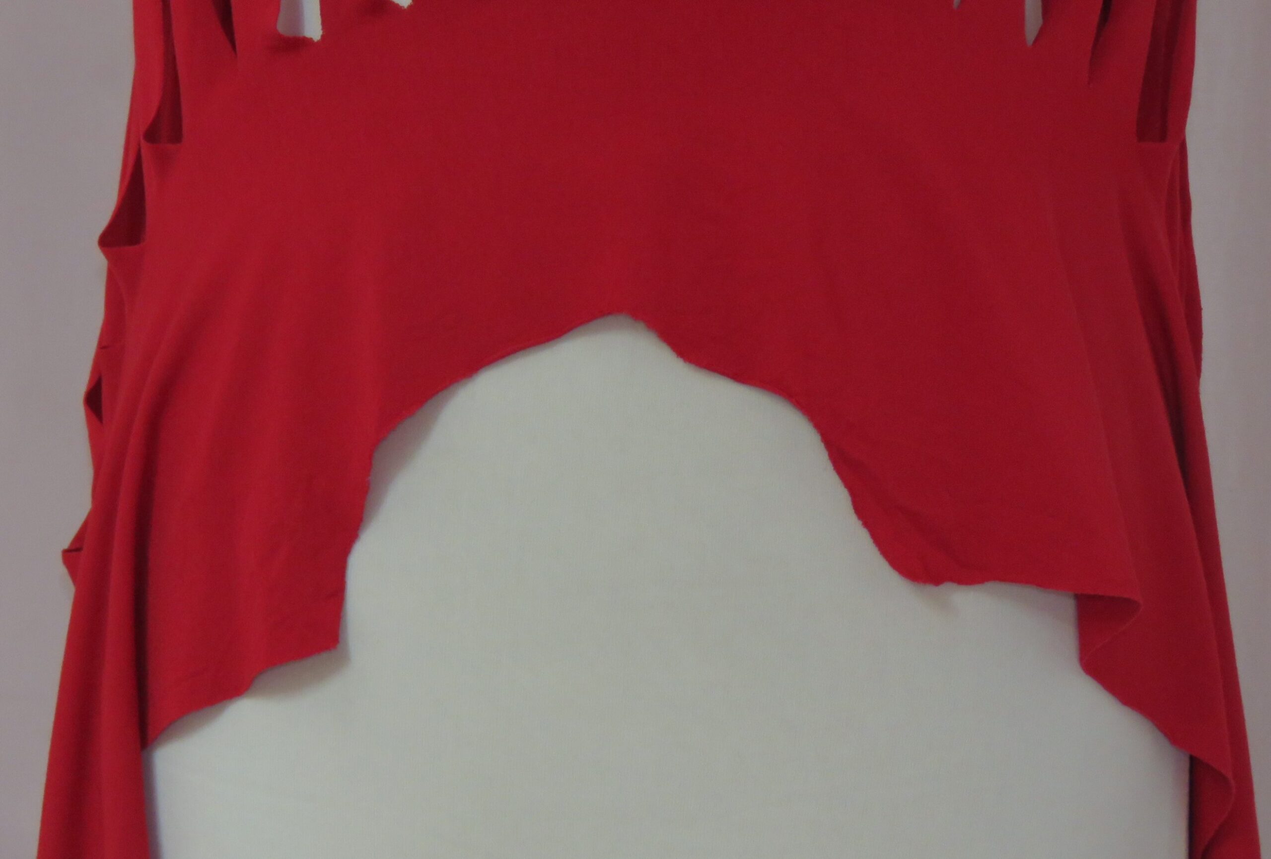 - Turn it horizontally, fold it in half and put your arms through the slits, to create a short waistcoat/bolero