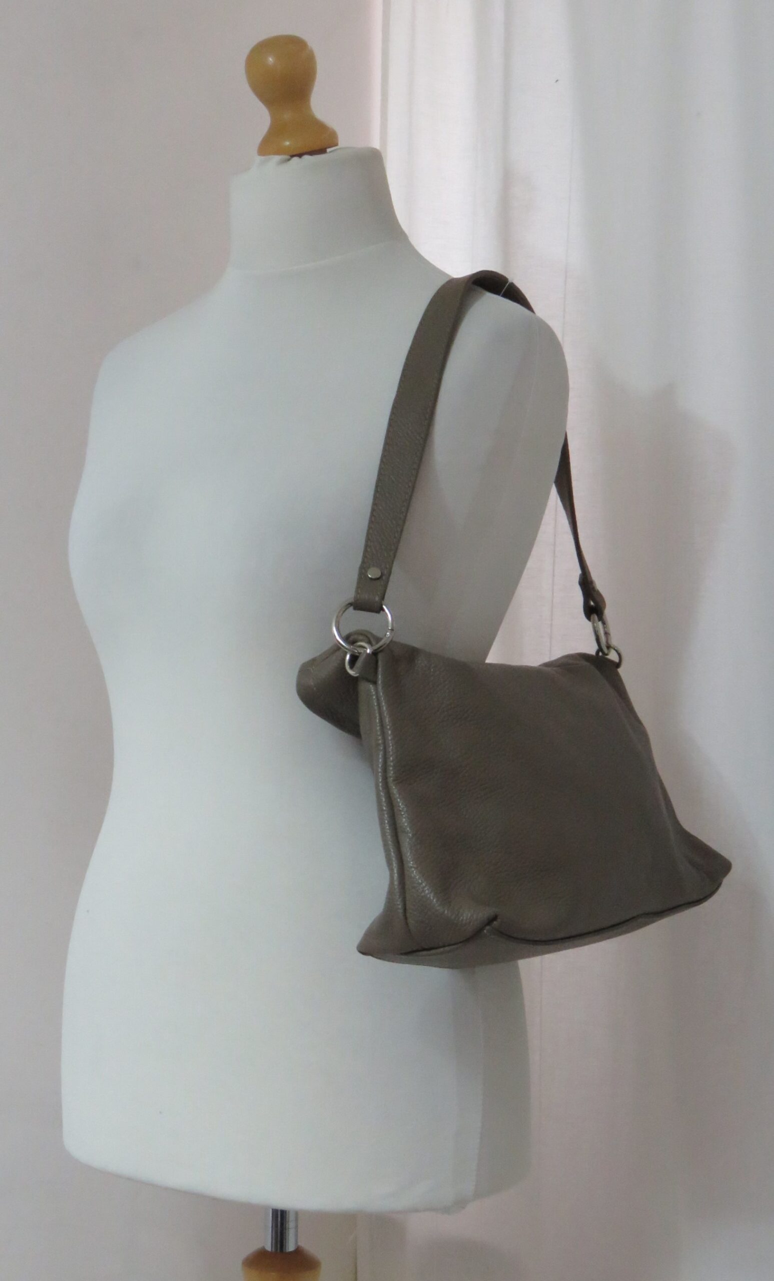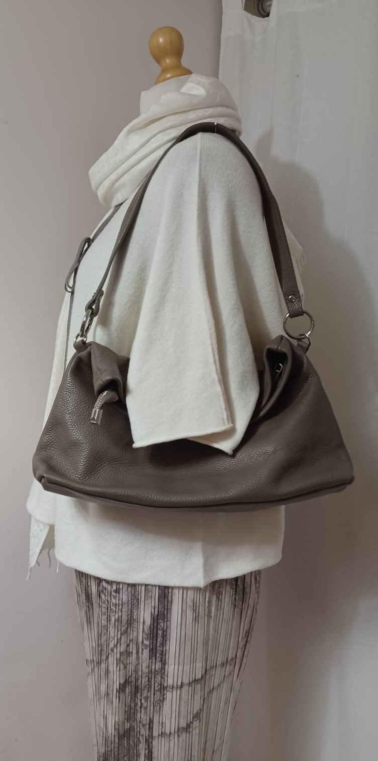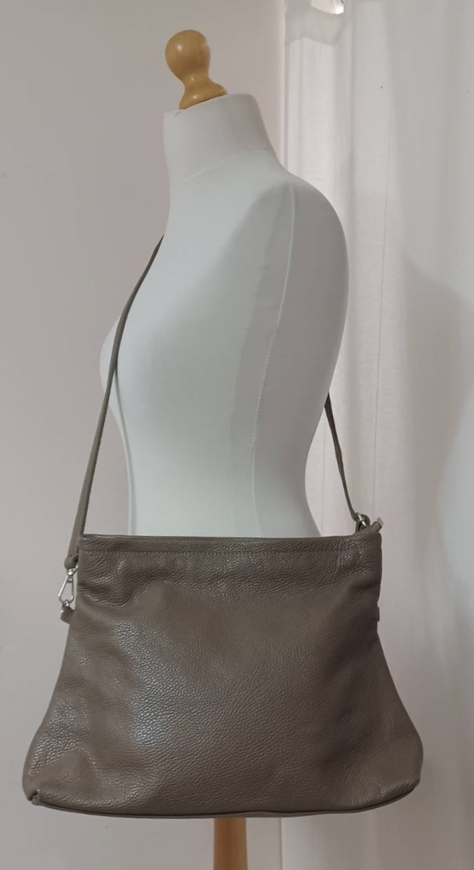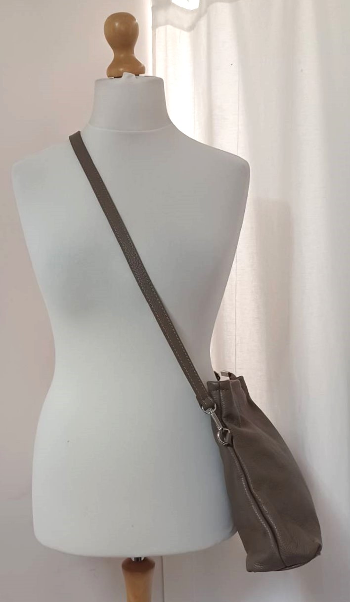Dark taupe, genuine Italian leather, crossbody/shoulder bag