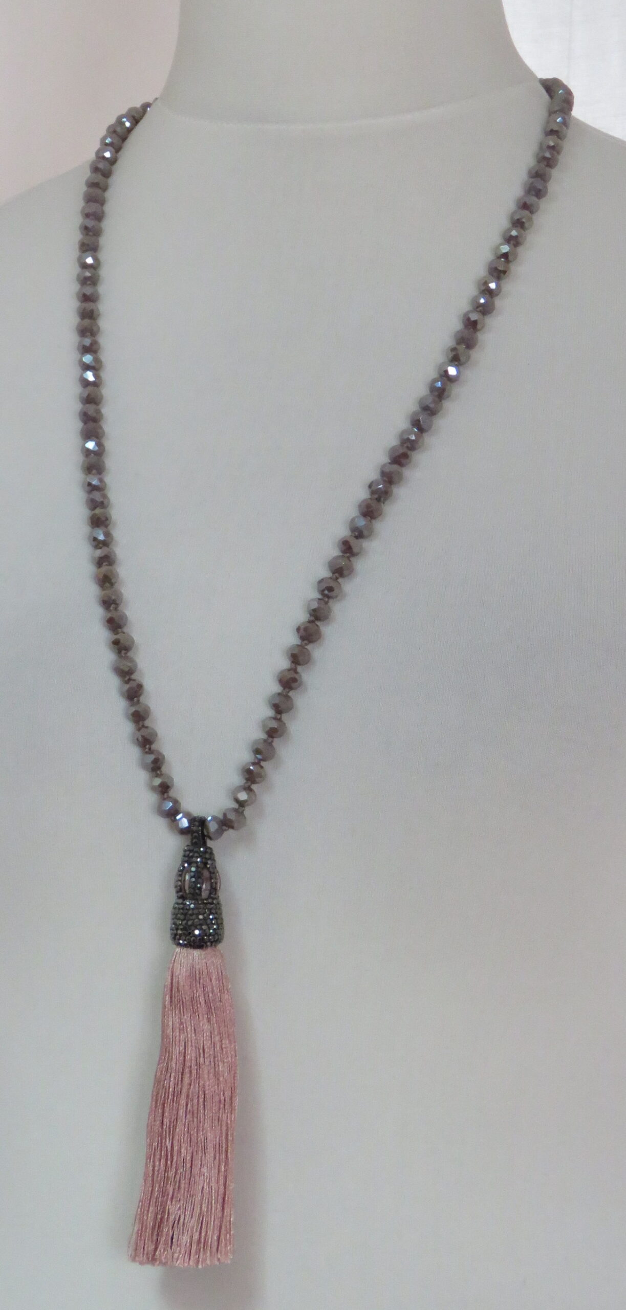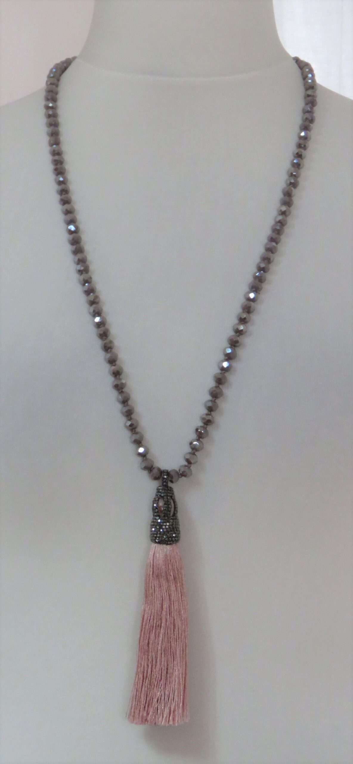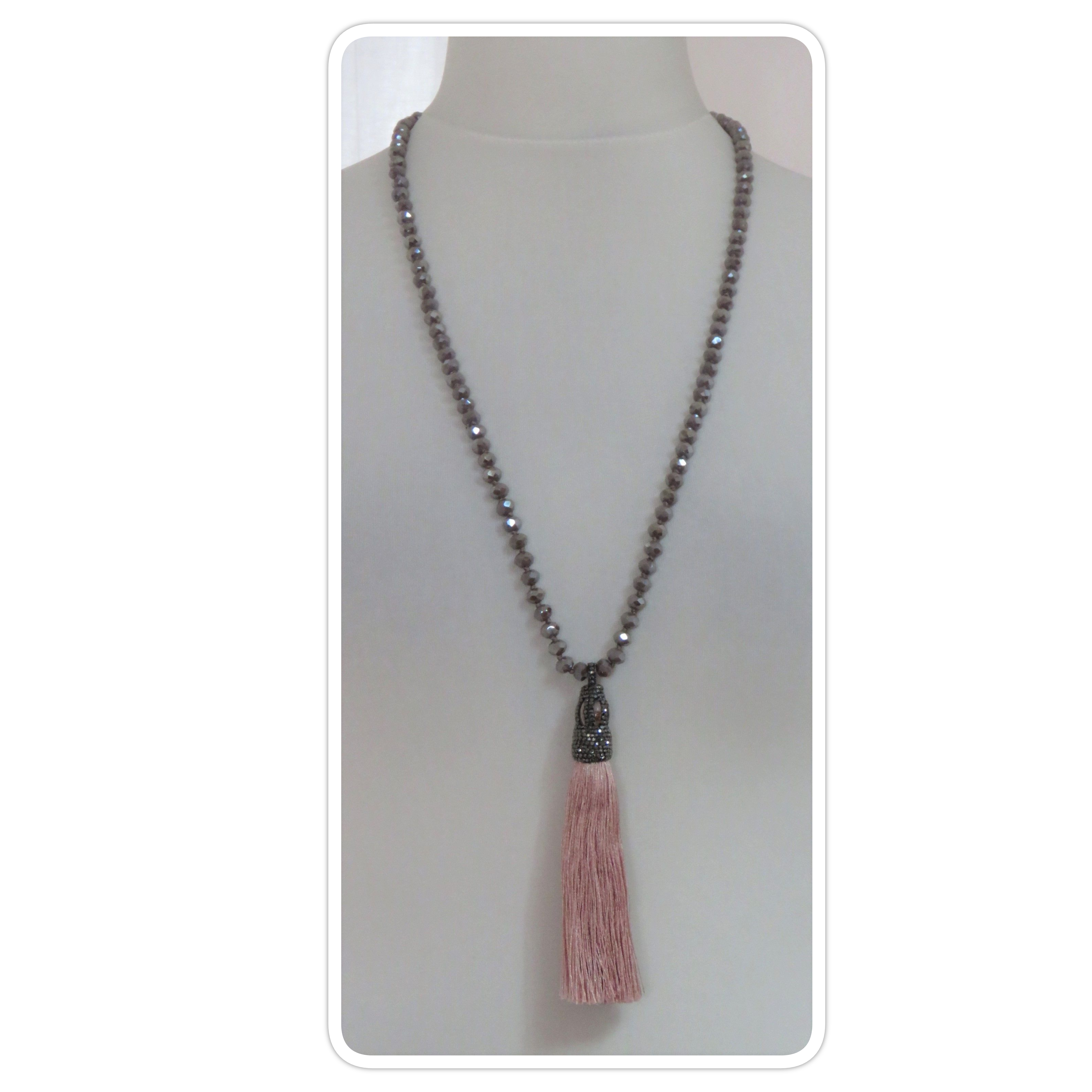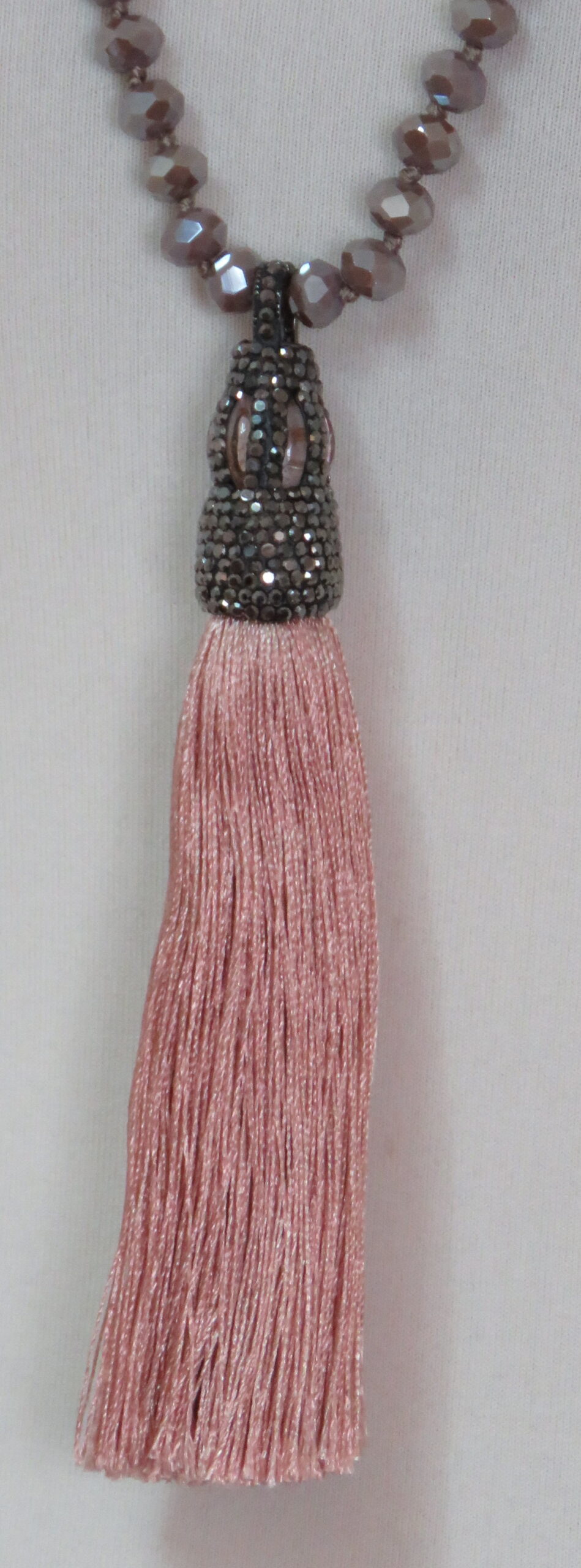 Dusky pink, faceted-bead, tassel, necklace