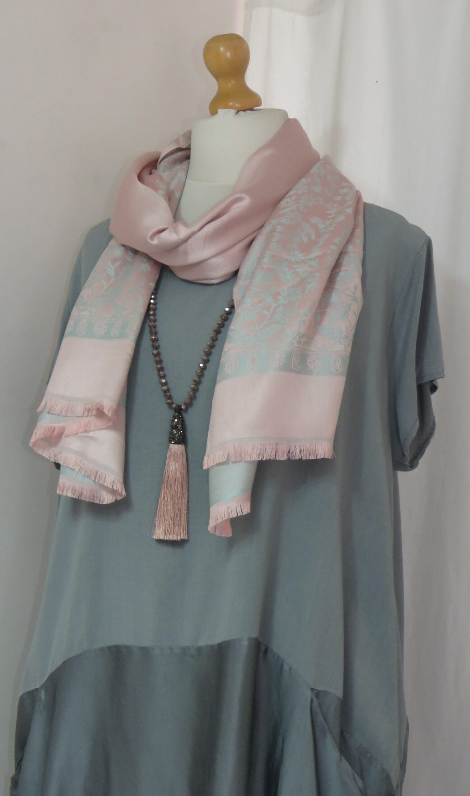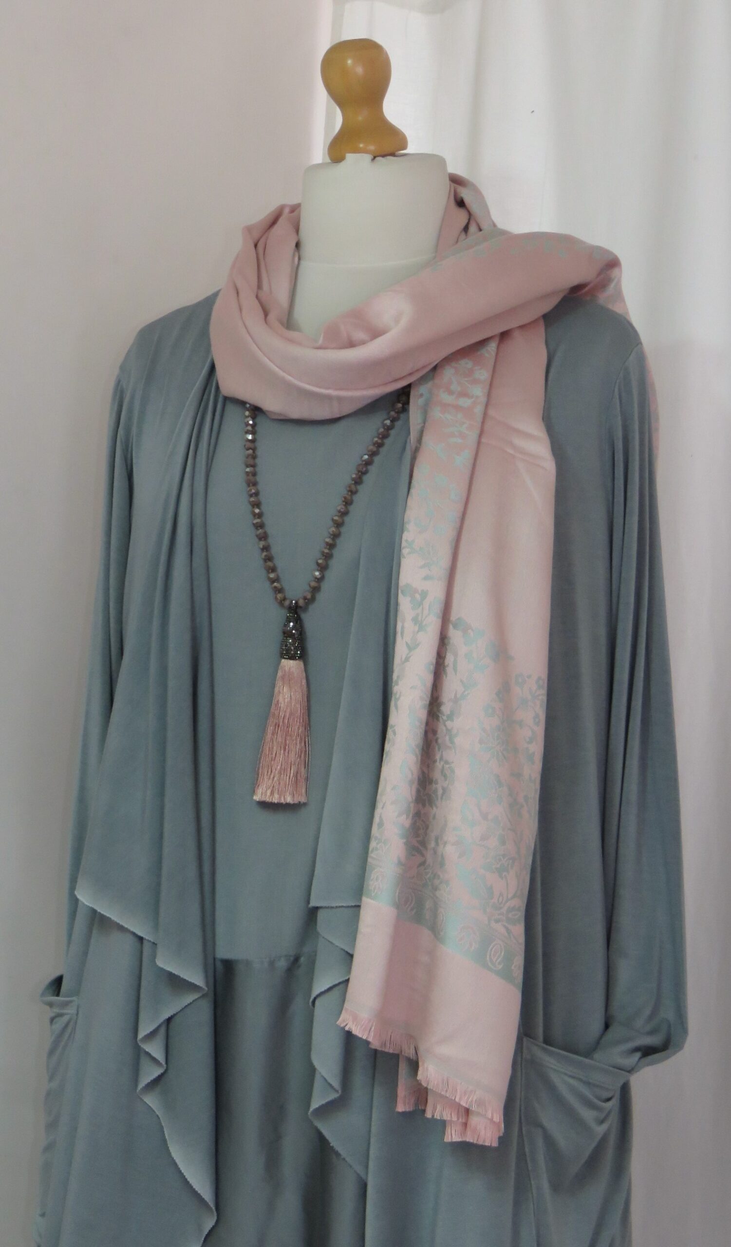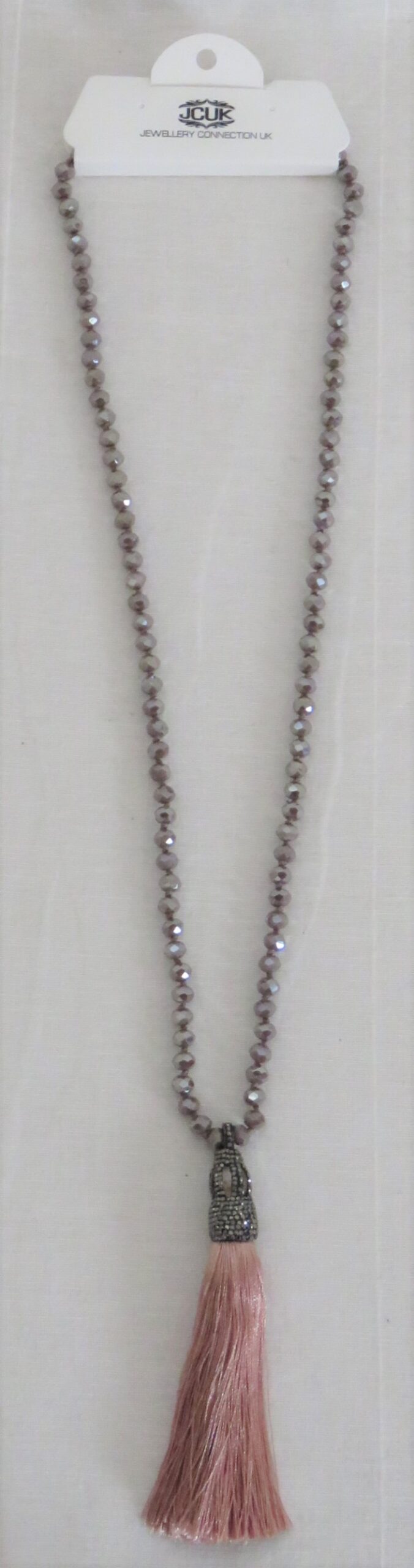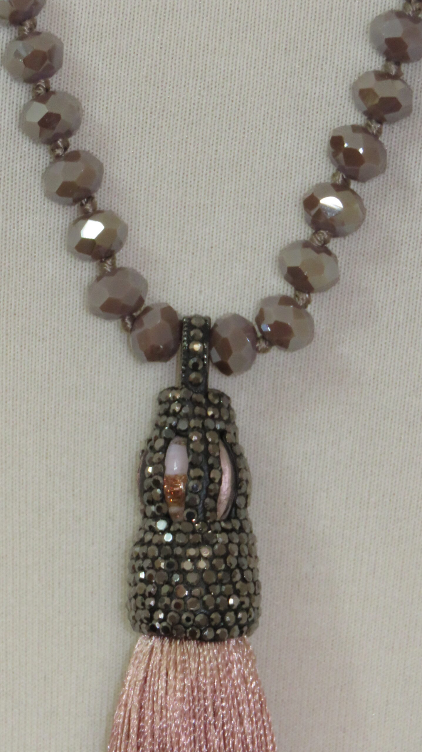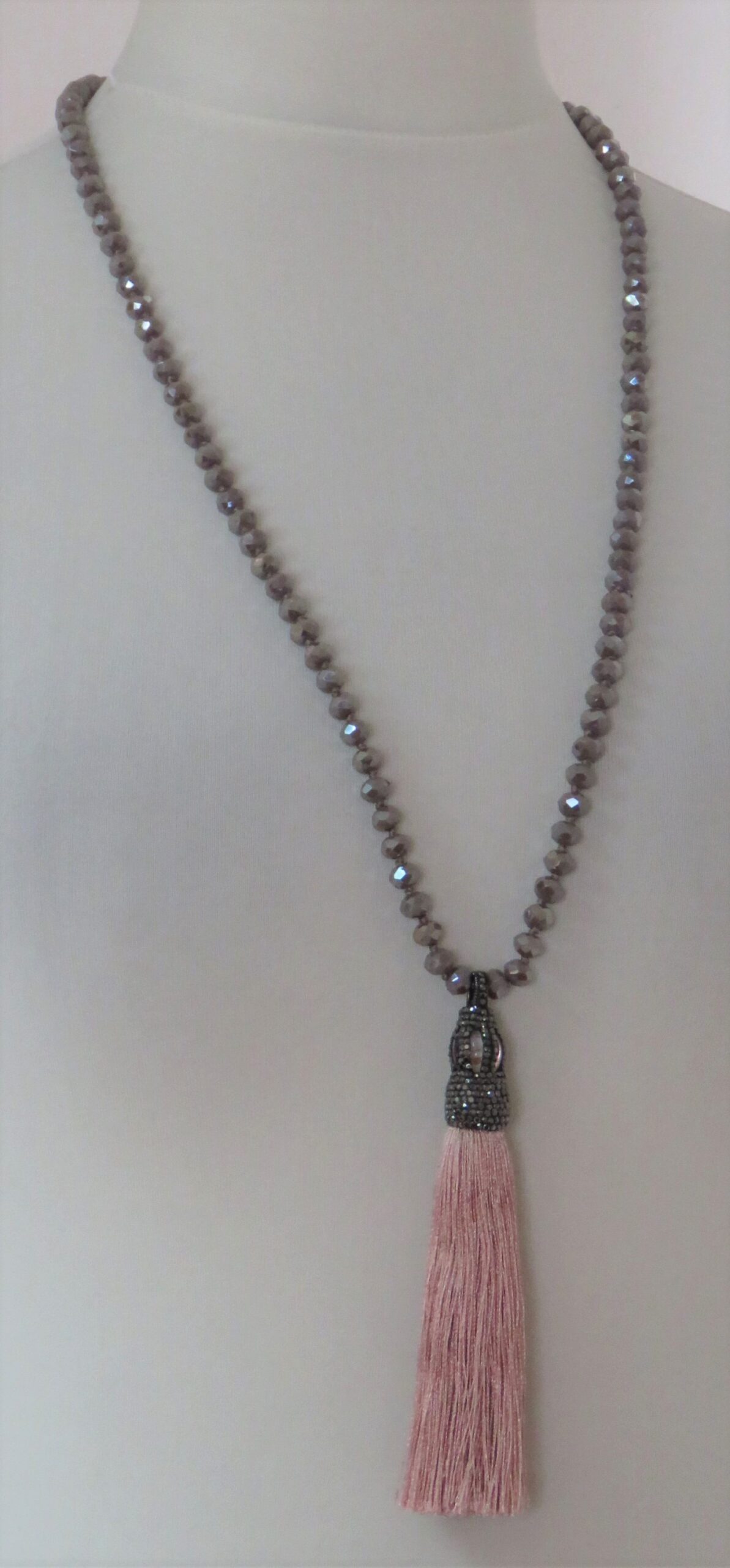 Dusky pink, faceted-bead, tassel, necklace