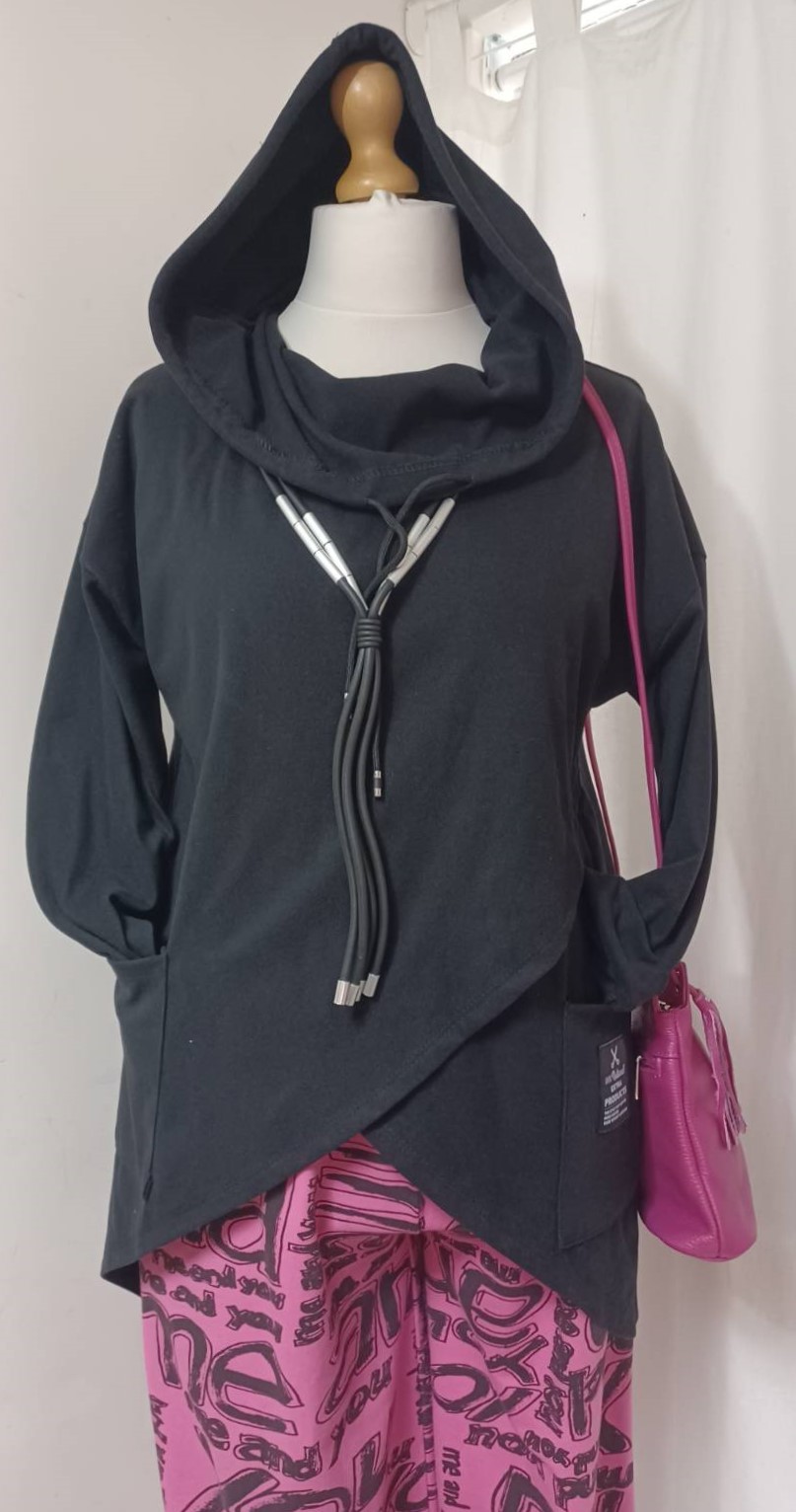 - Fastens with a zip