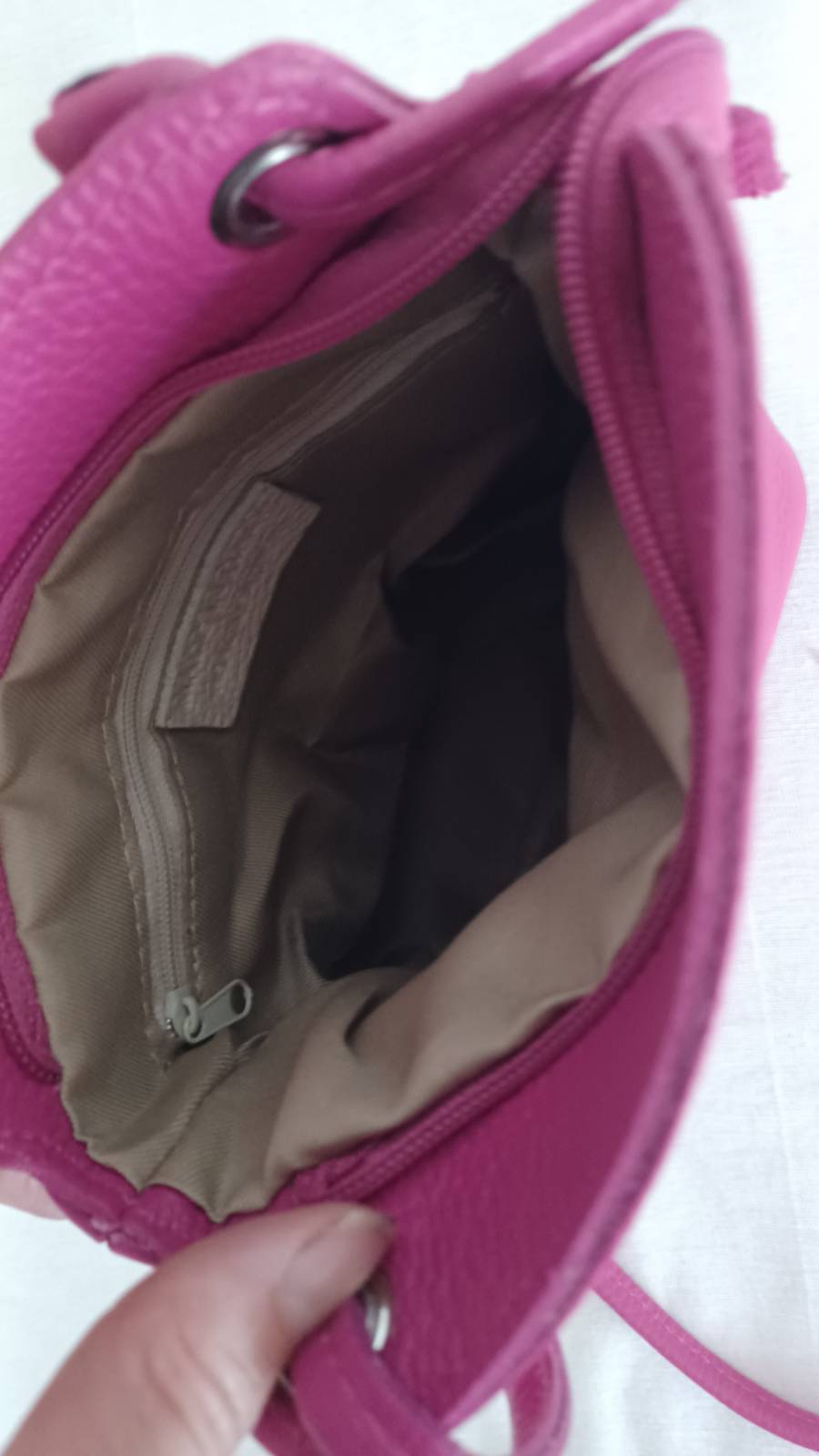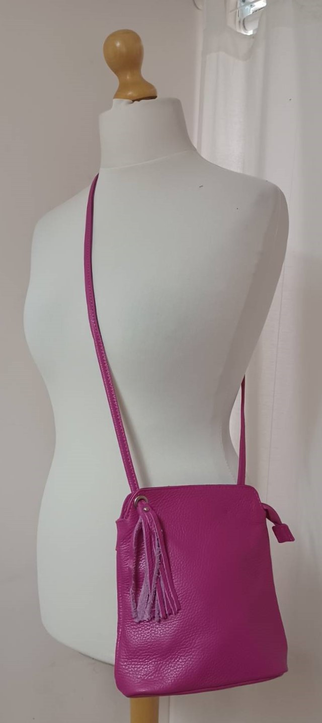 - Beautiful, fuchsia, leather bag