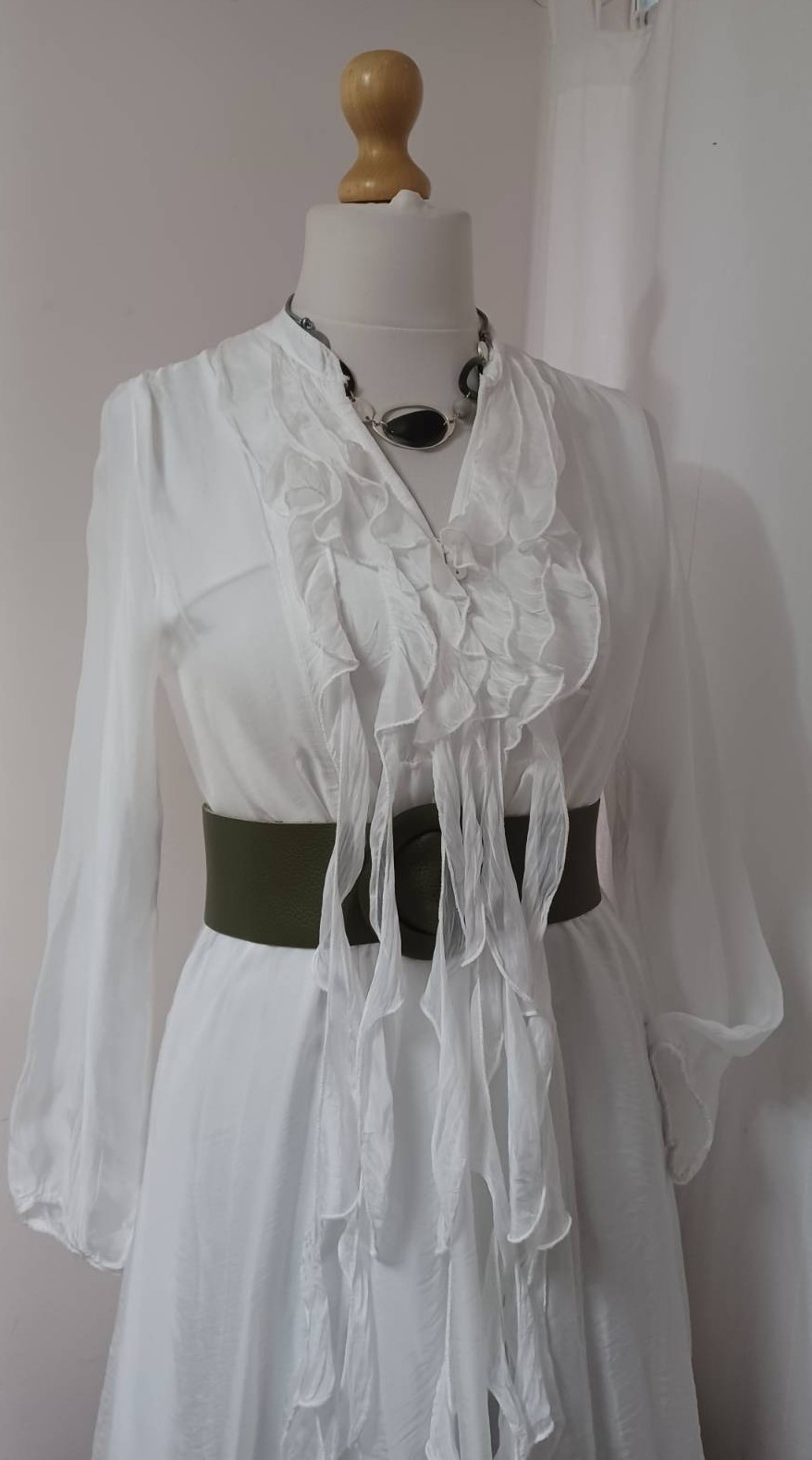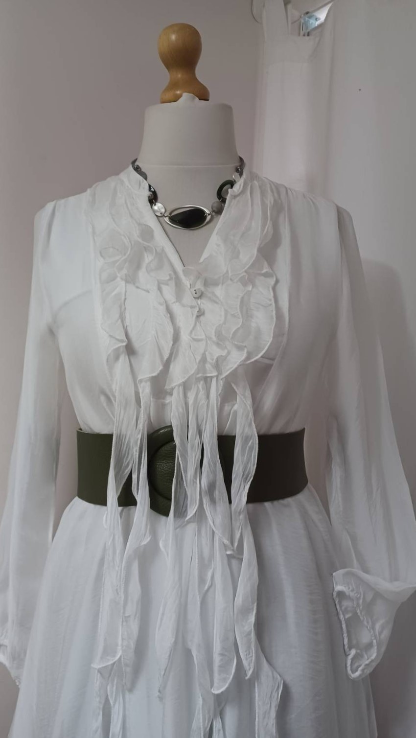 - Width: 5.5cms wide at the buckle end, increasing to 8cms at the loose end