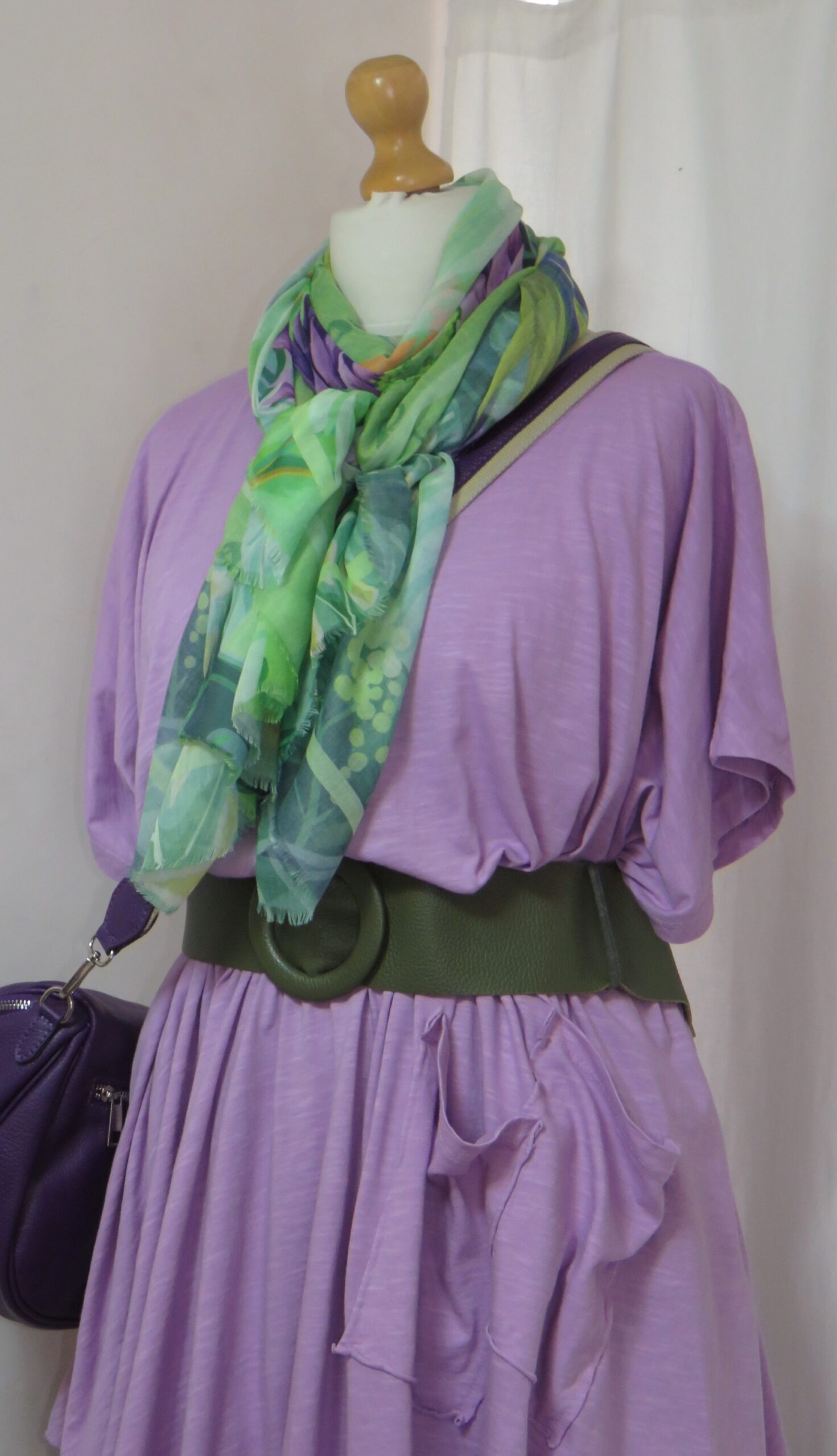 - I’ve tied a piece of khaki, t-shirt yarn around the belt, to thread the loose end through, but this can easily be slid off if you don’t want it