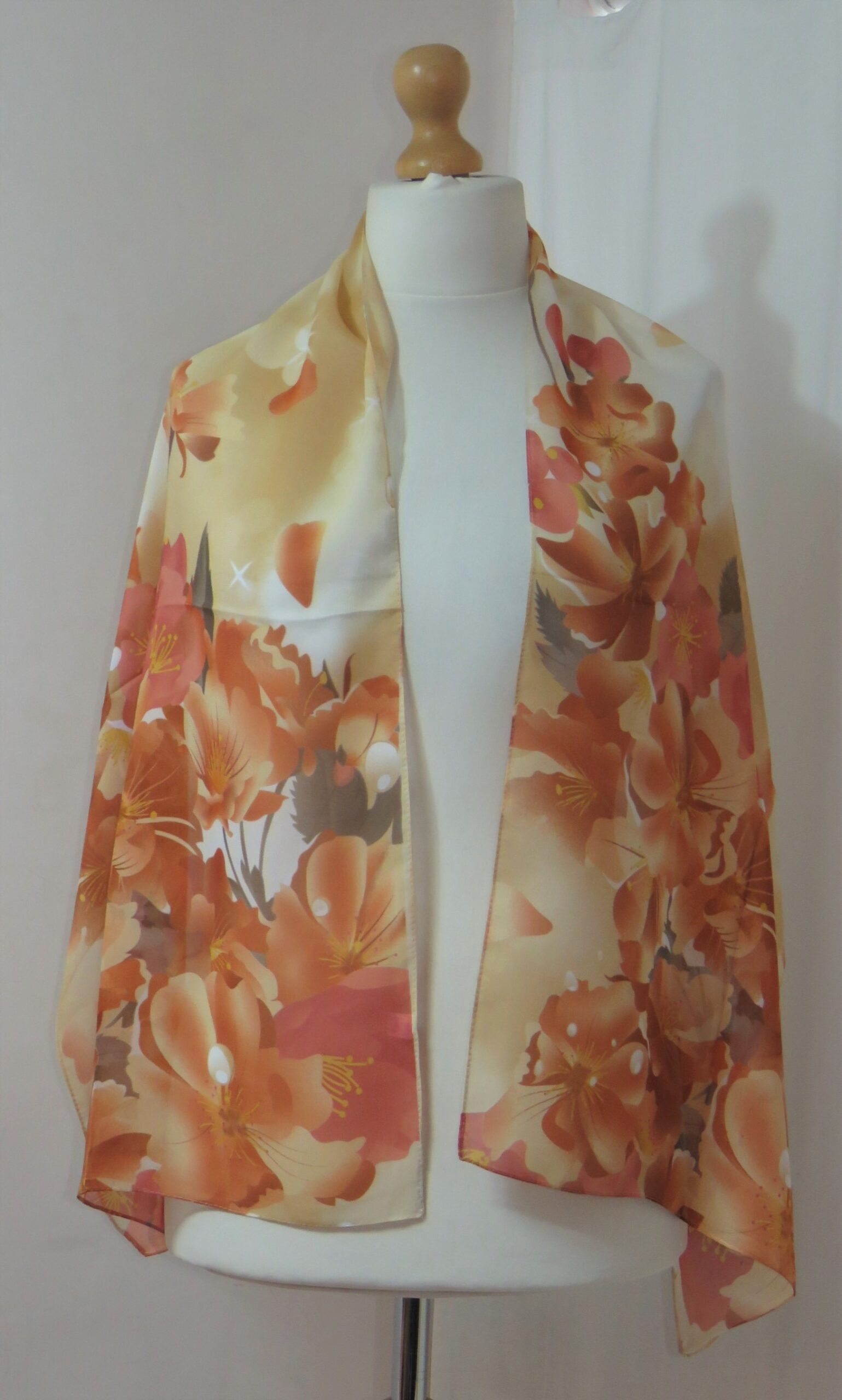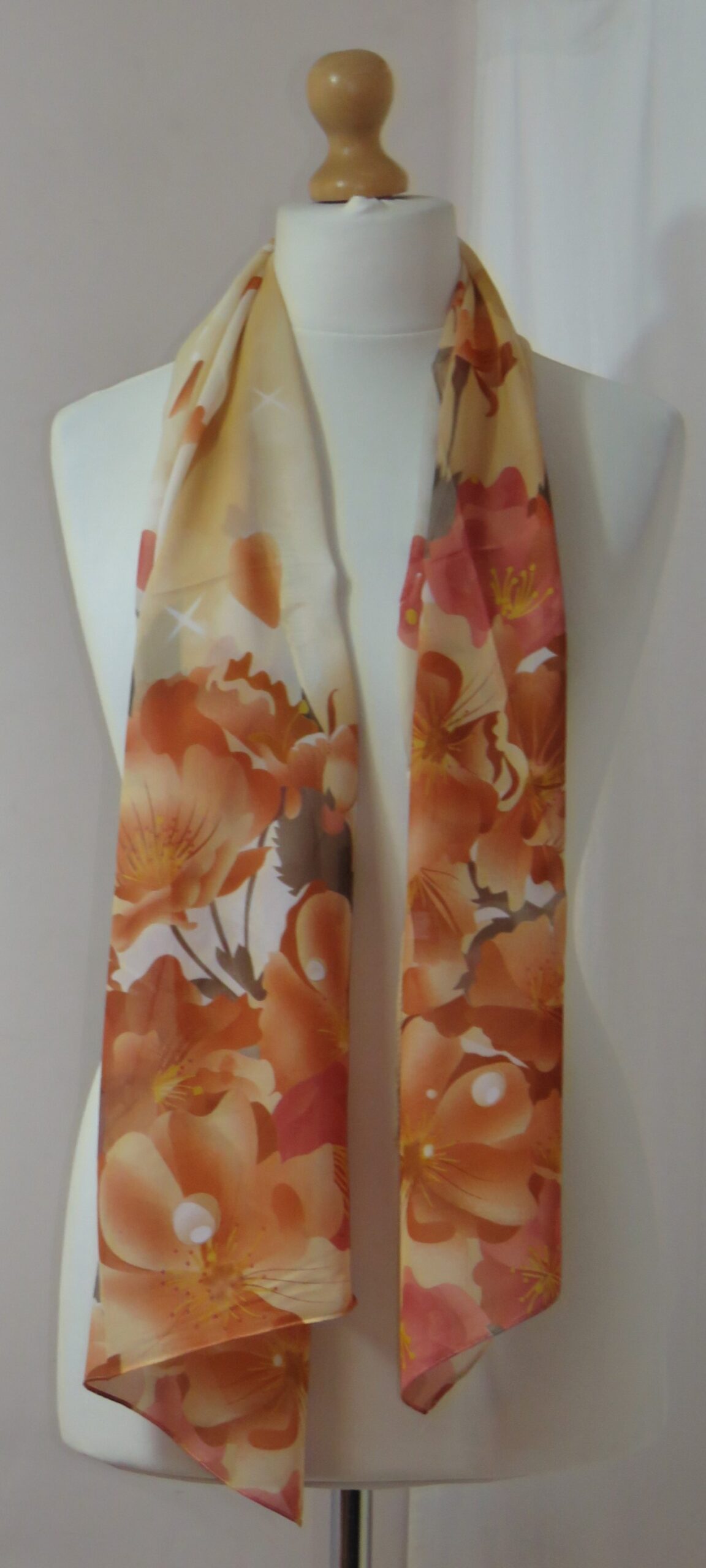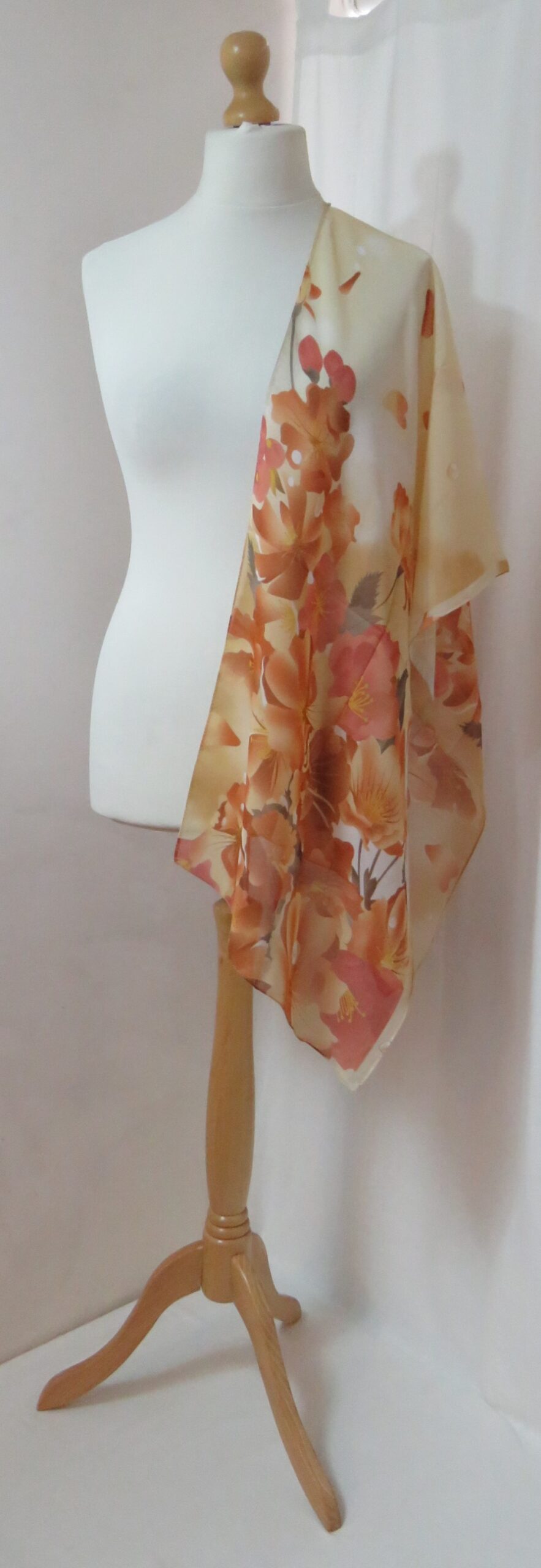 • Features a fabulous, ginger, autumnal floral print on a beige background