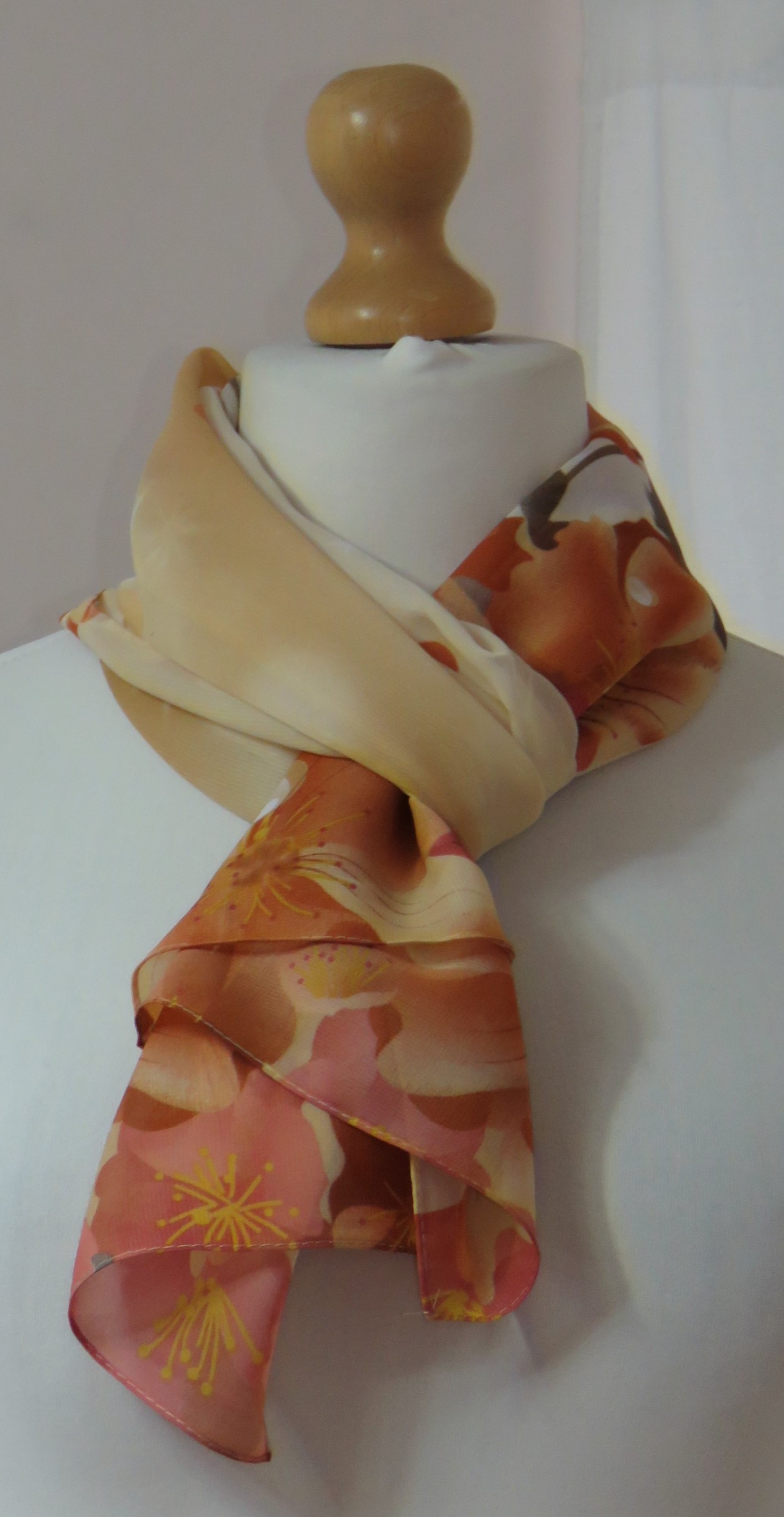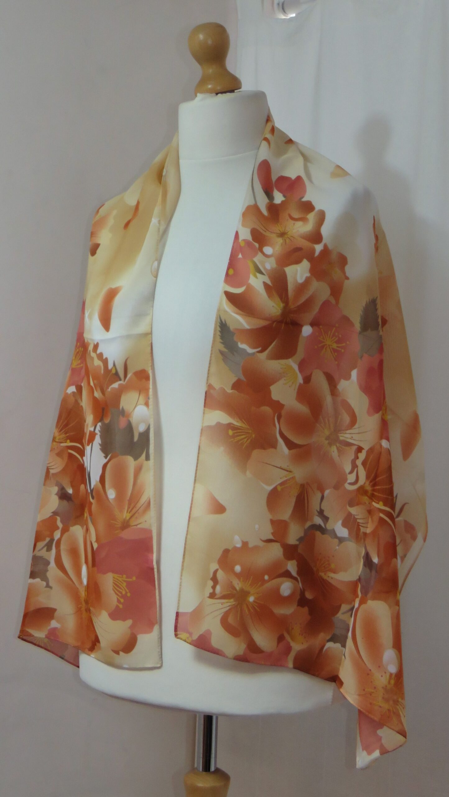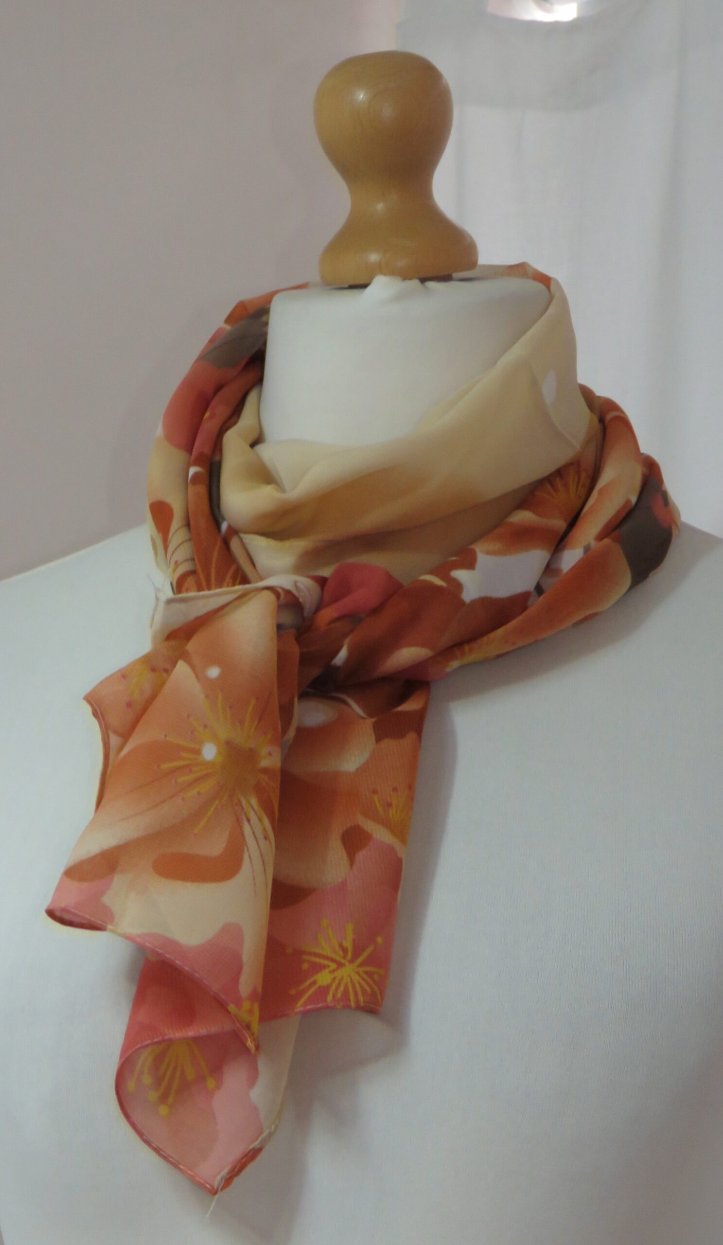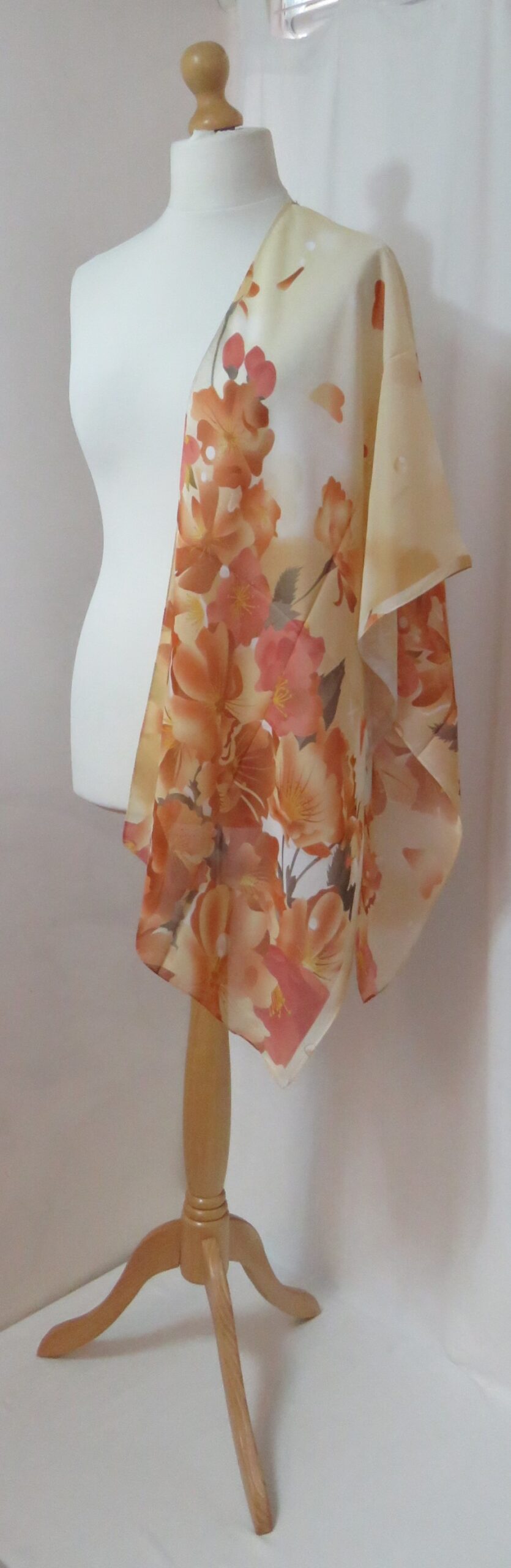 • Features a fabulous, ginger, autumnal floral print on a beige background