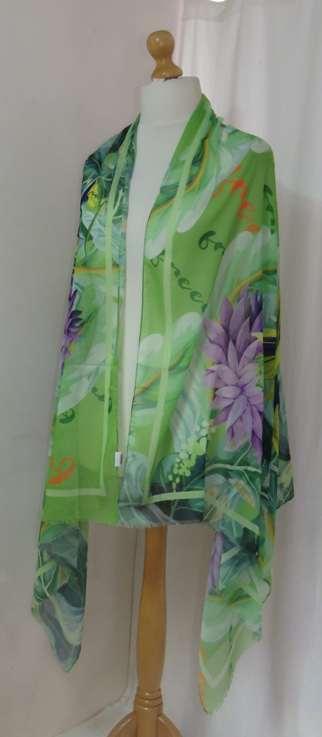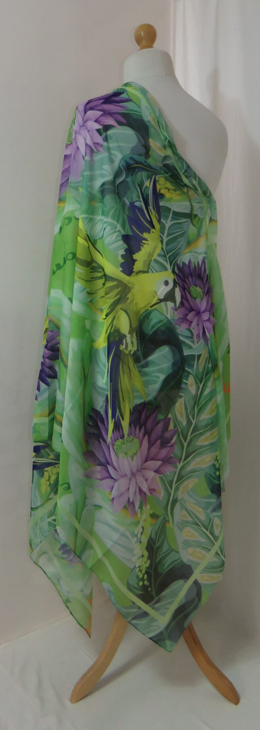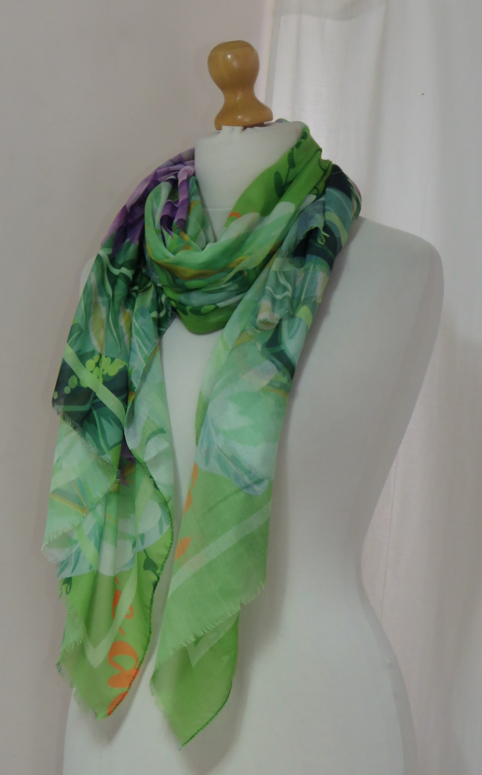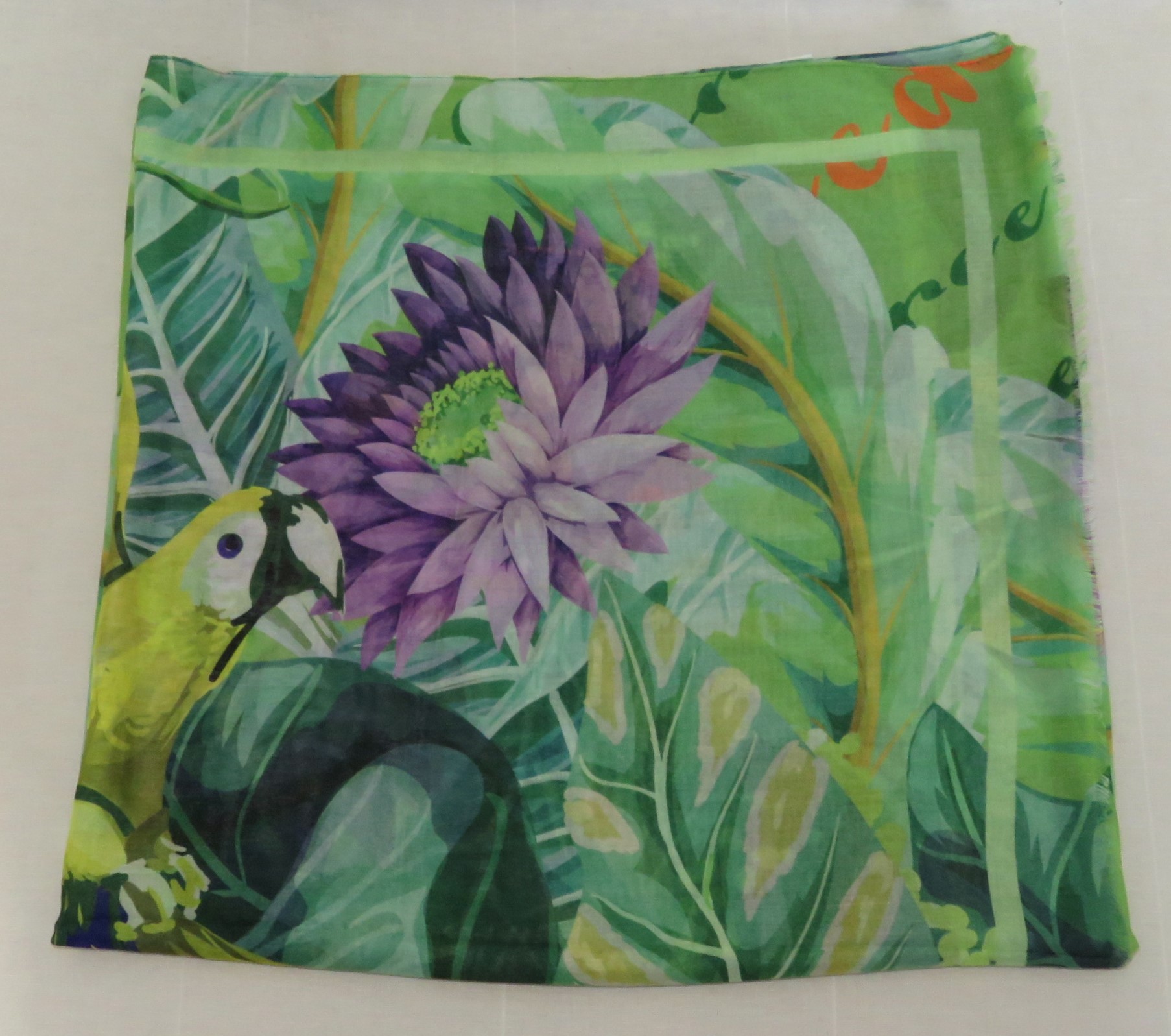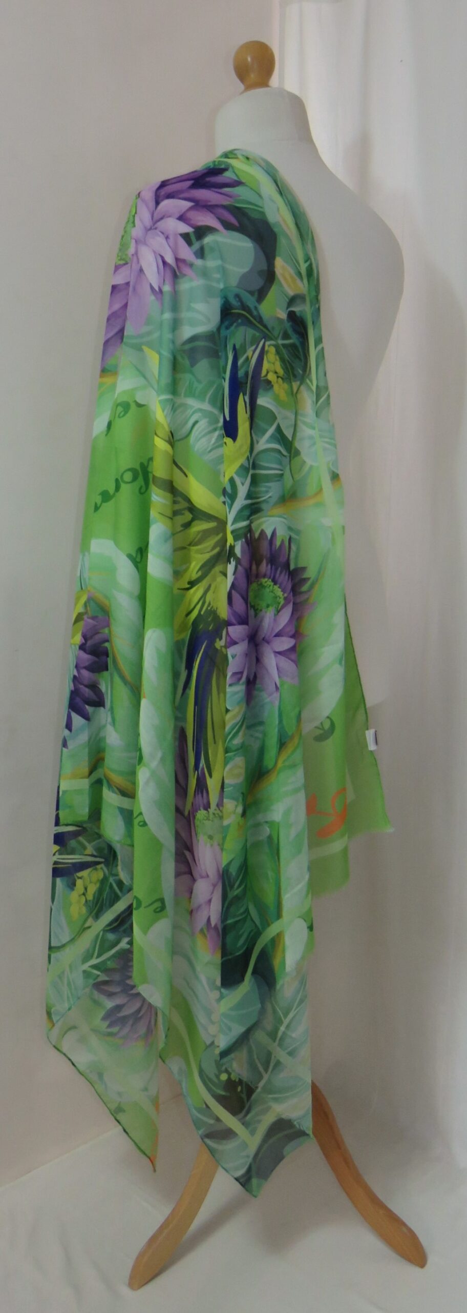 Green & purple, floral/parrot-print, large scarf