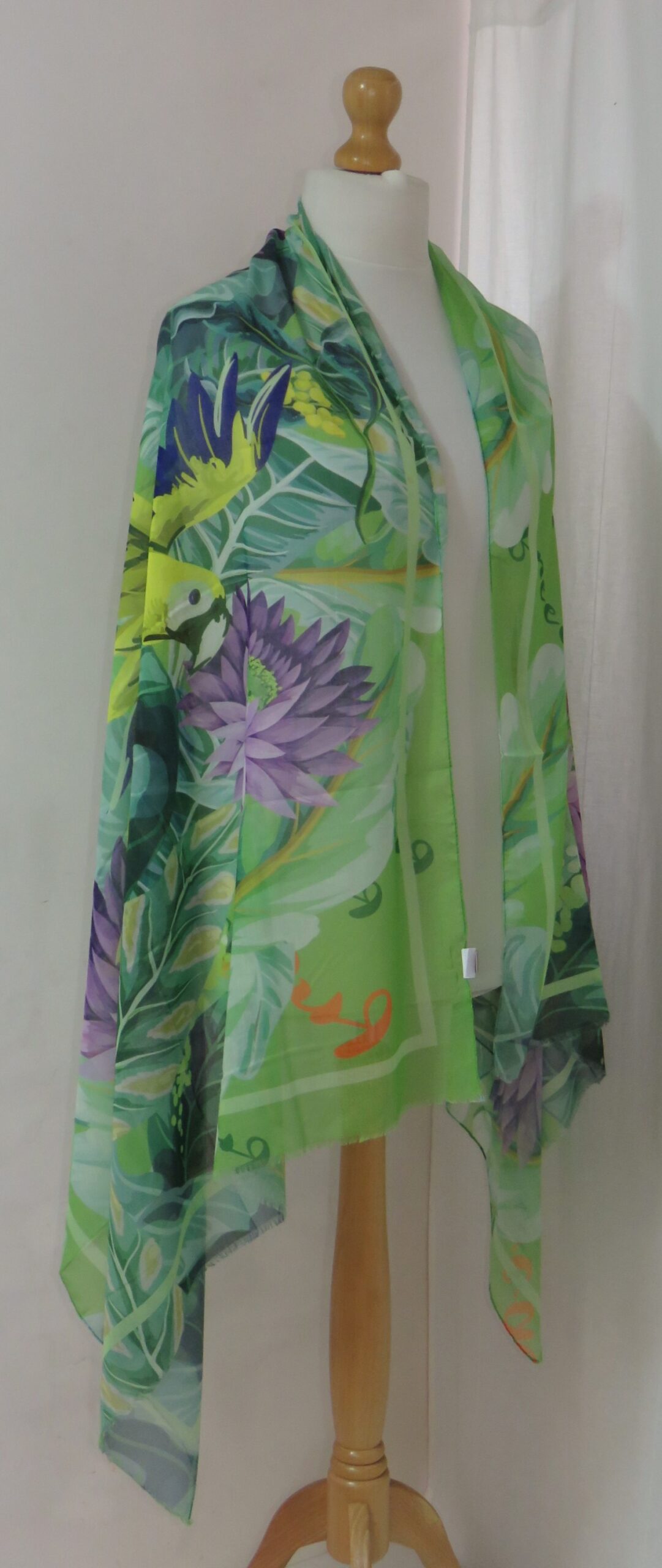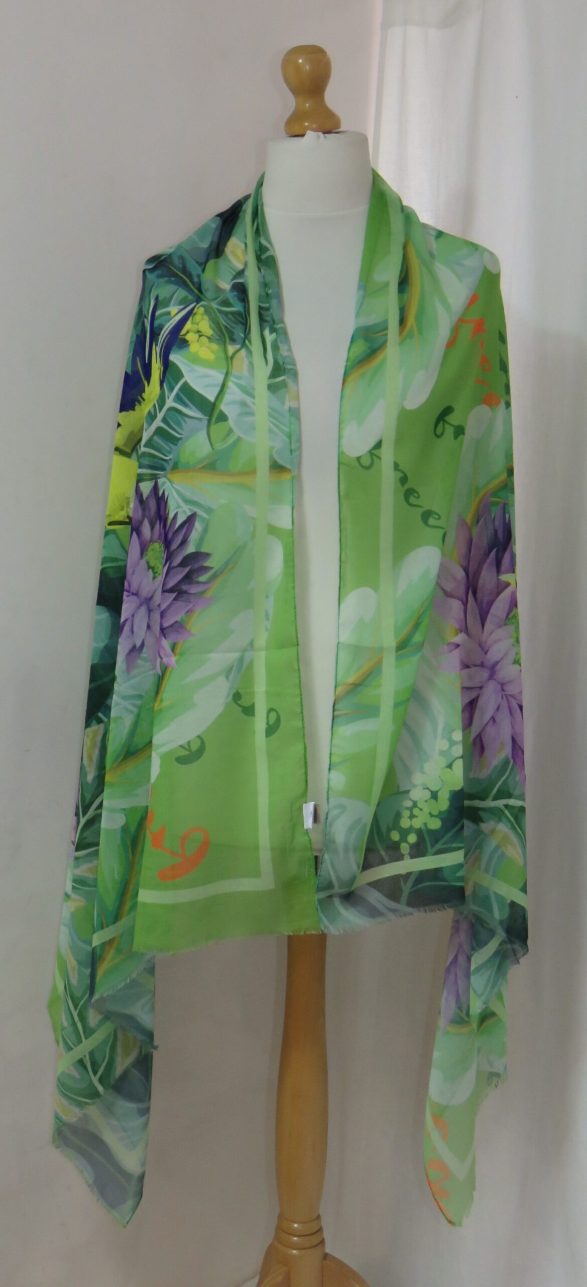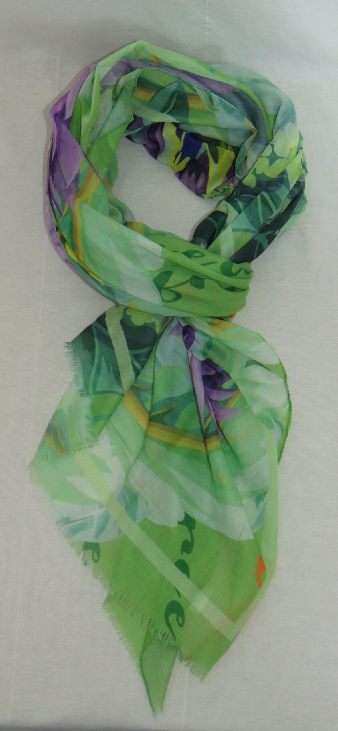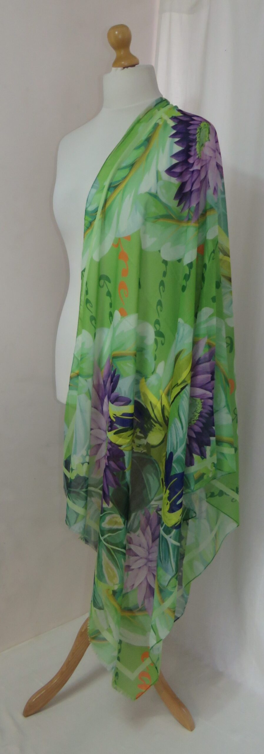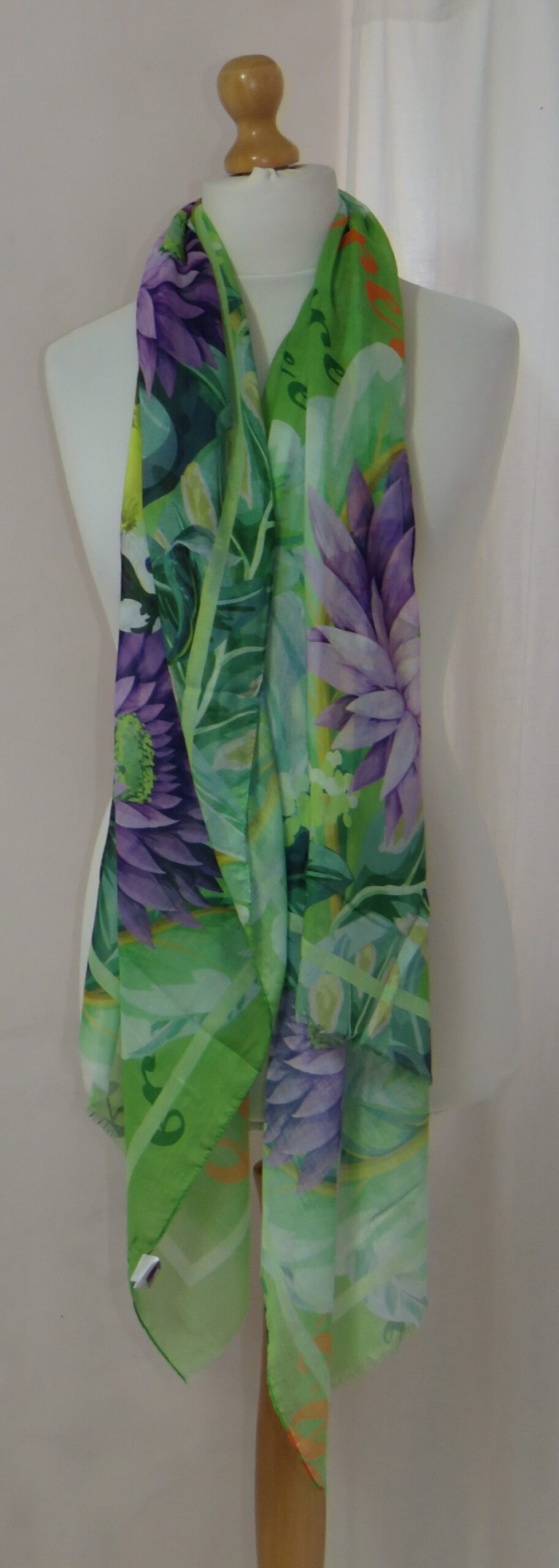 Green & purple, floral/parrot-print, large scarf
