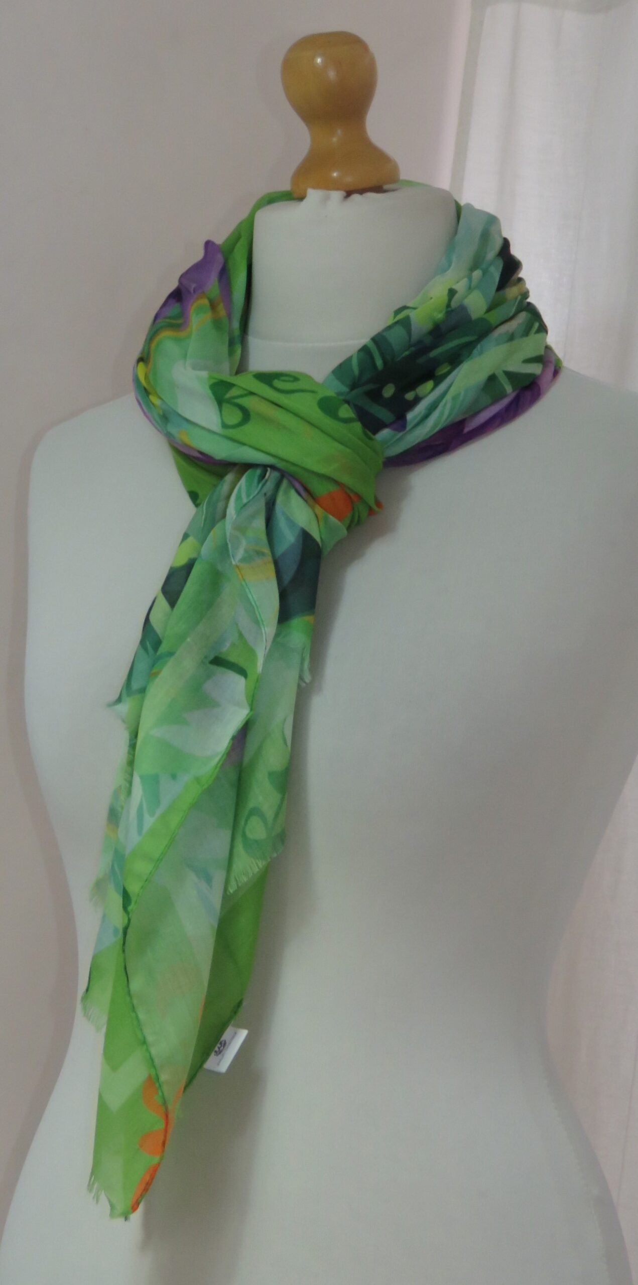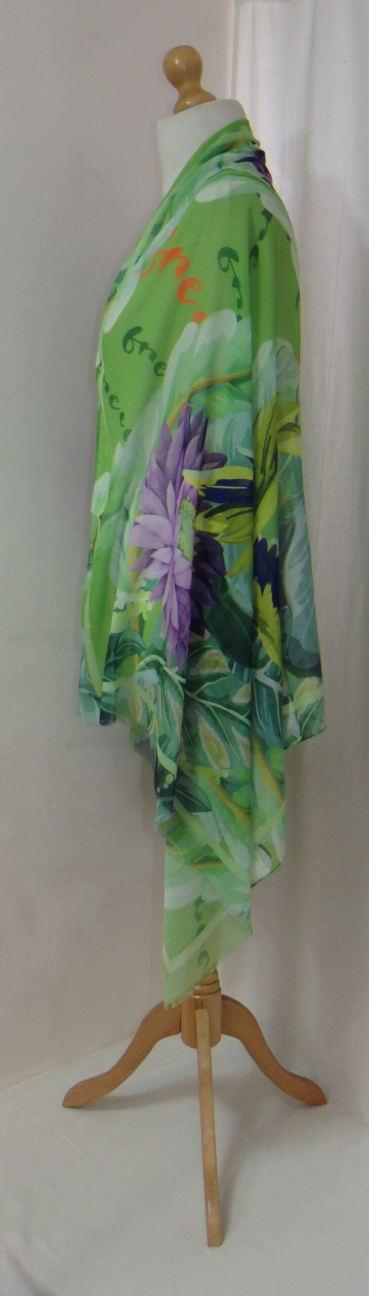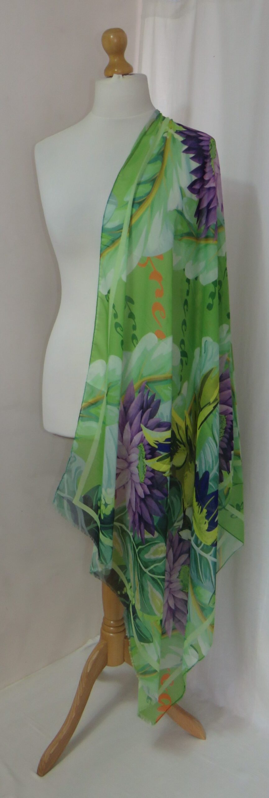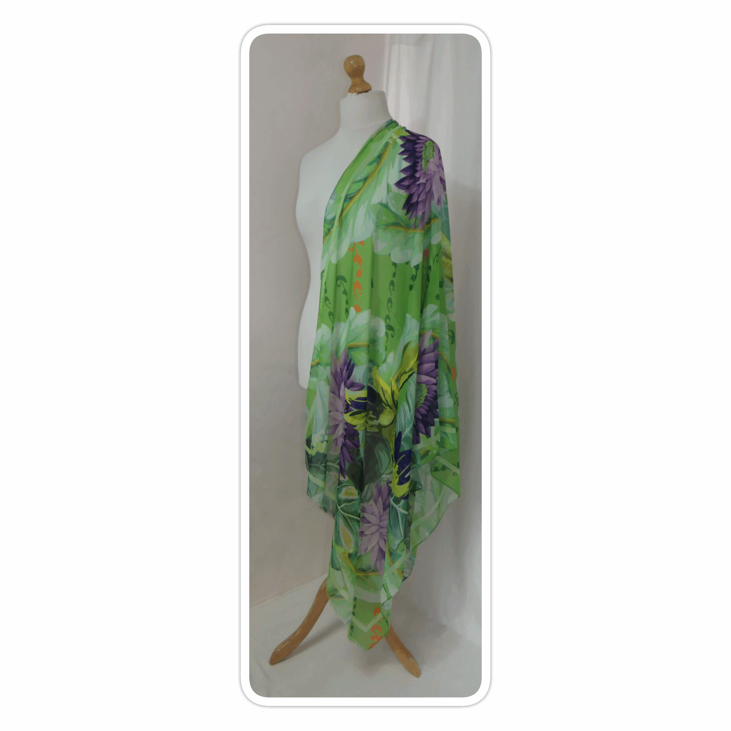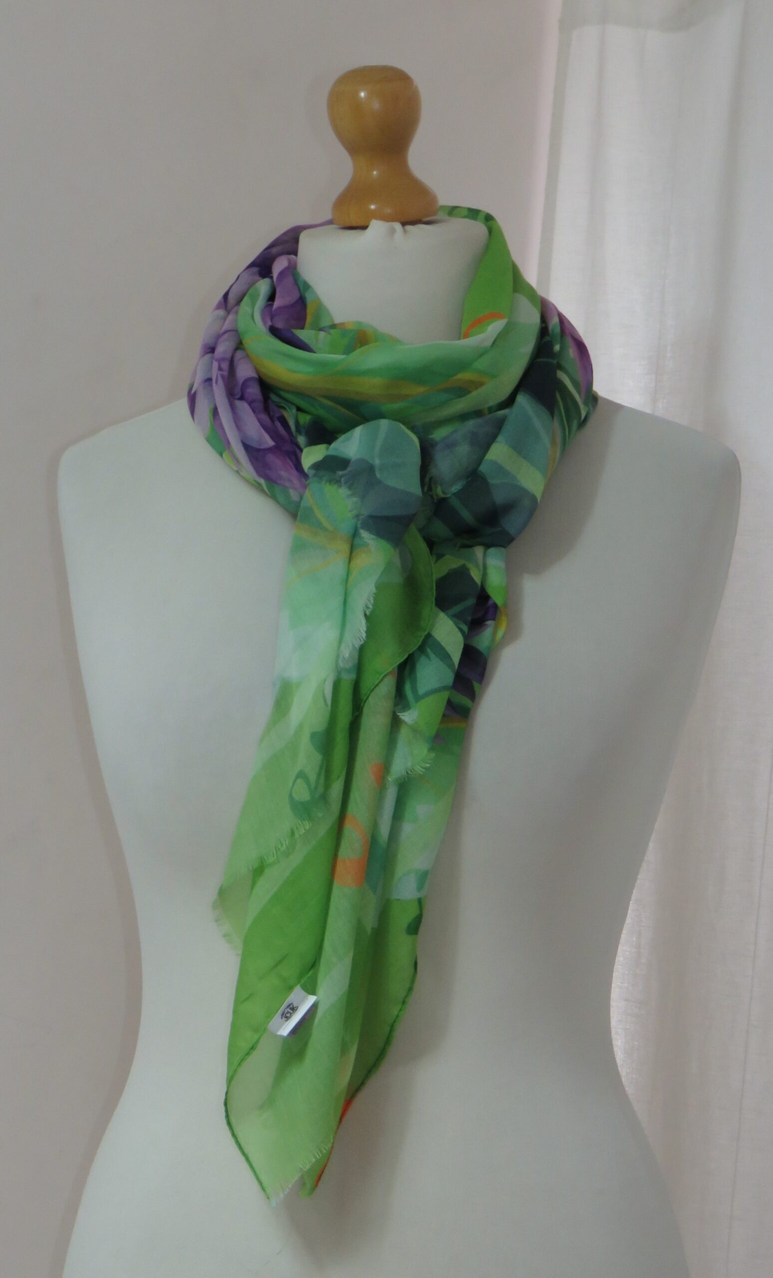Green & purple, floral/parrot-print, large scarf