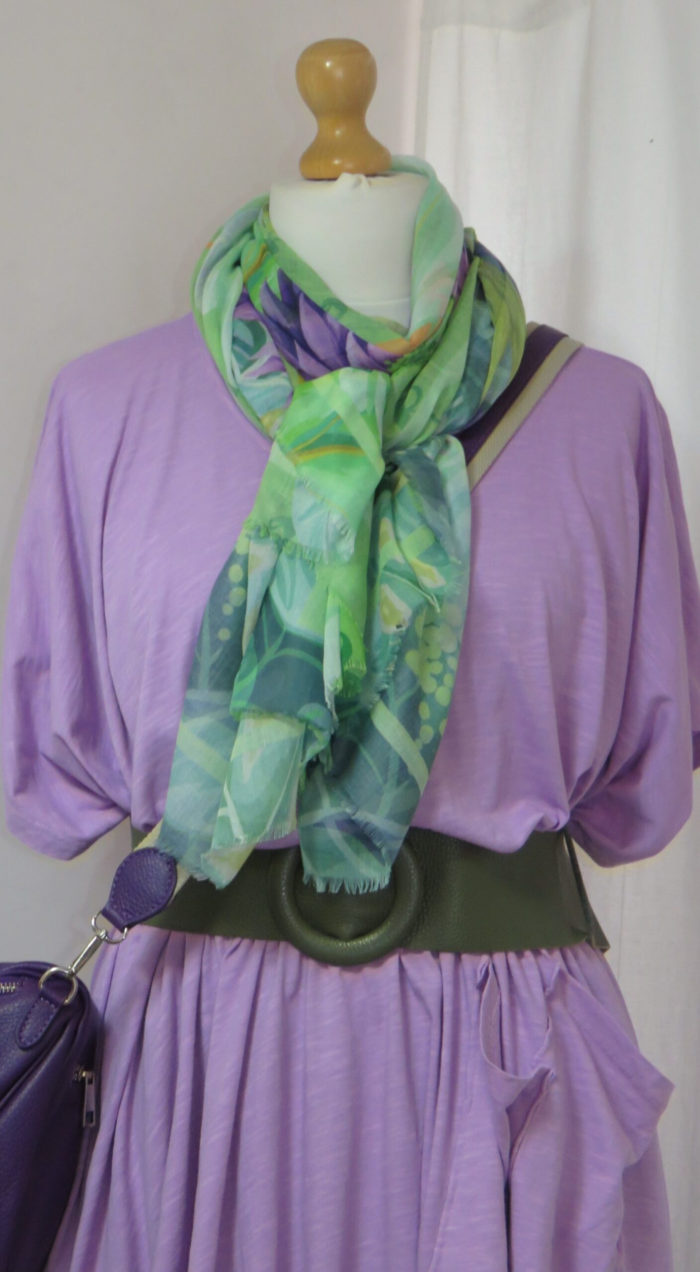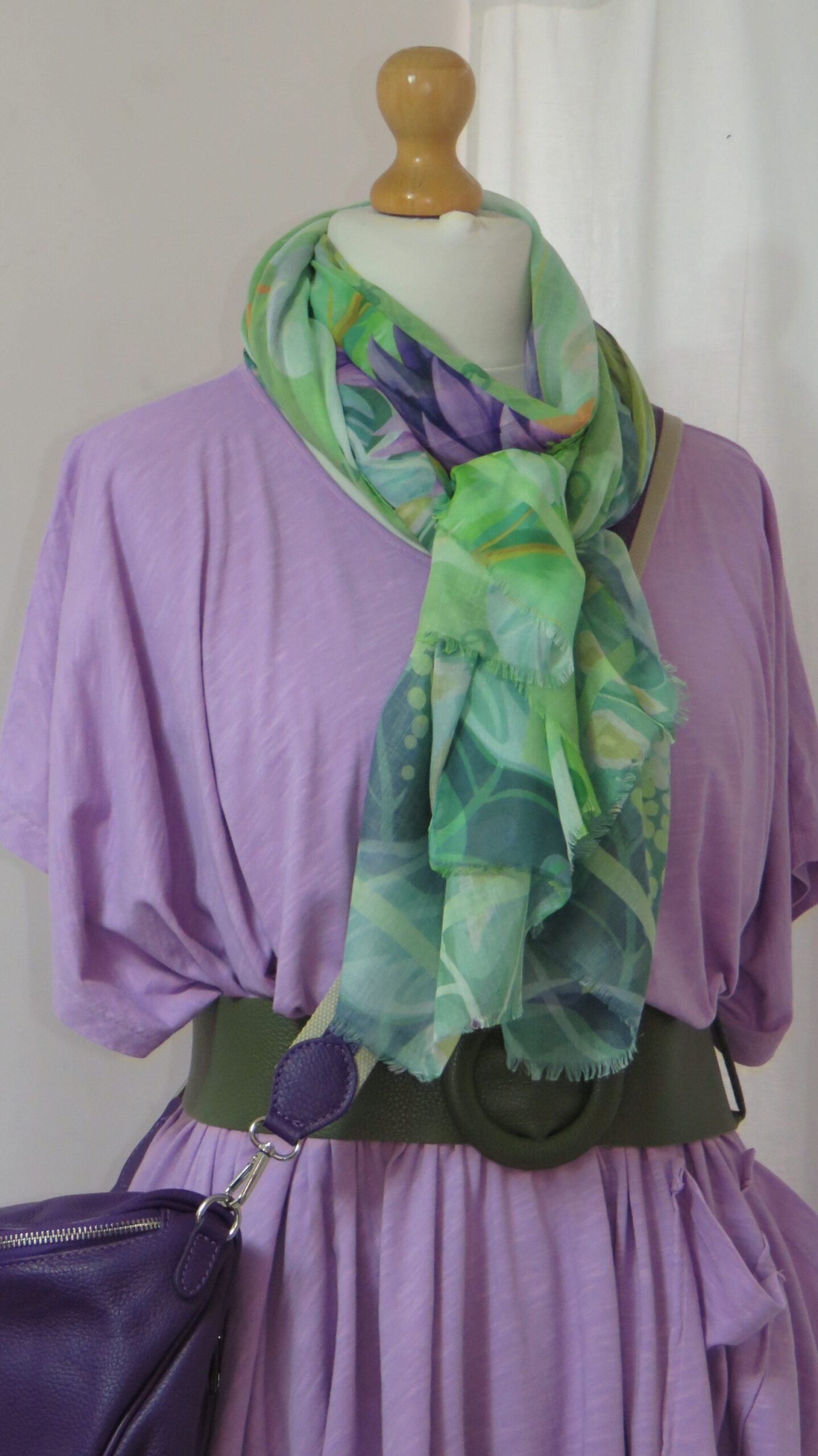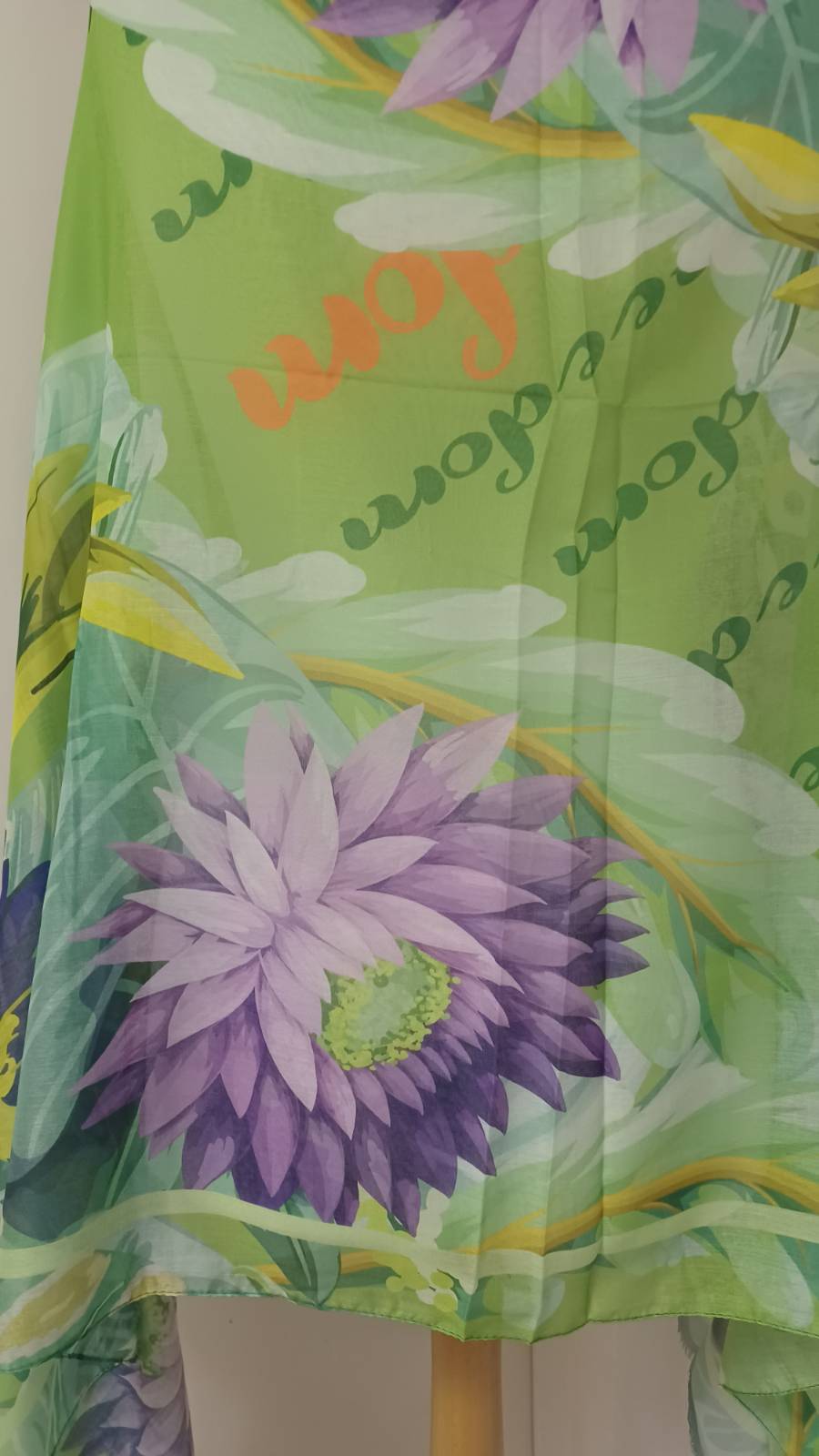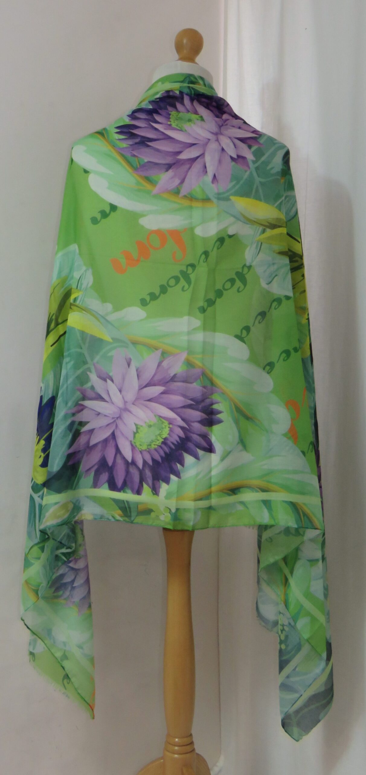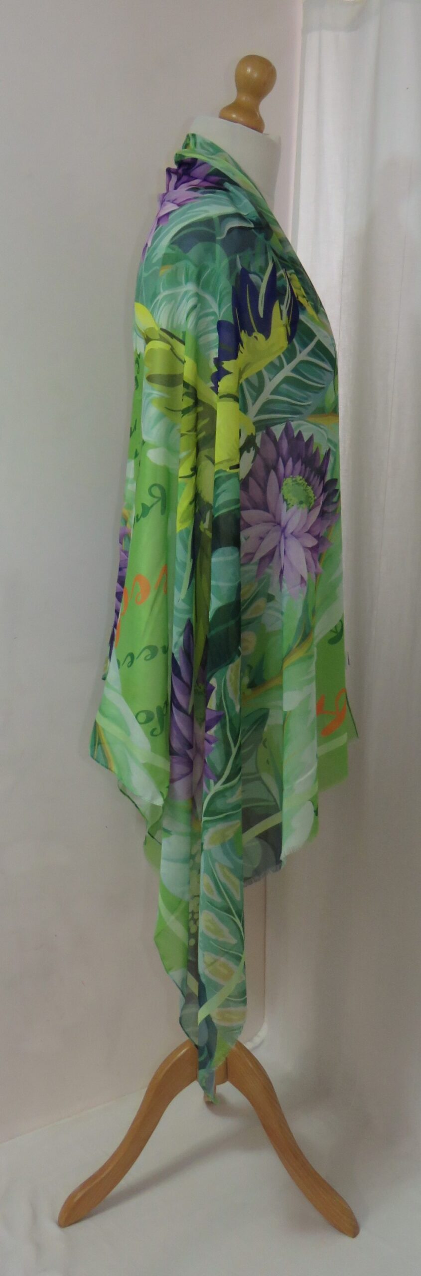 Green & purple, floral/parrot-print, large scarf