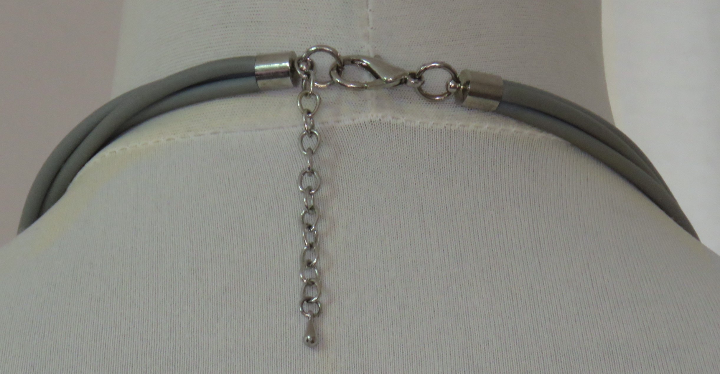 Grey rubber & silver-coloured bead, necklace
