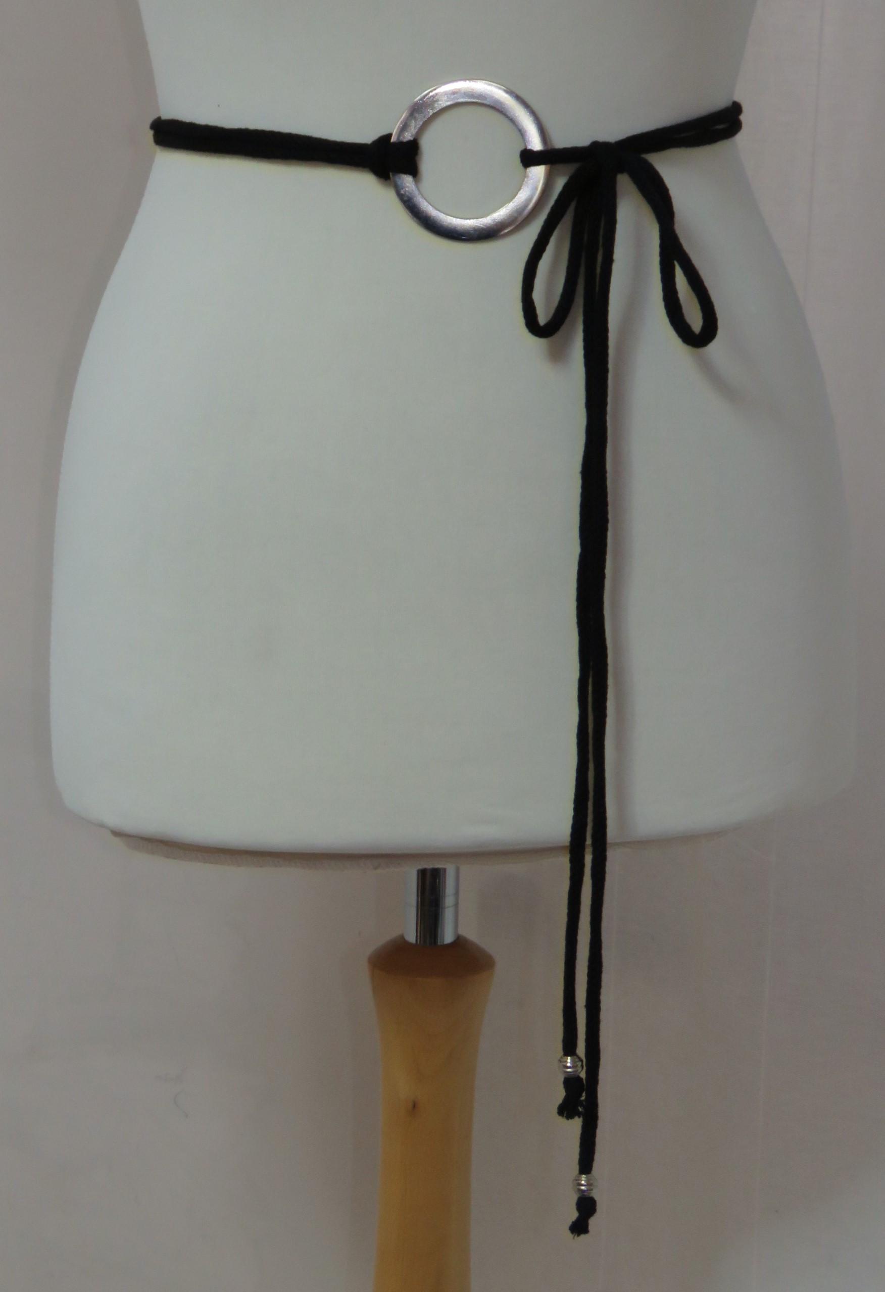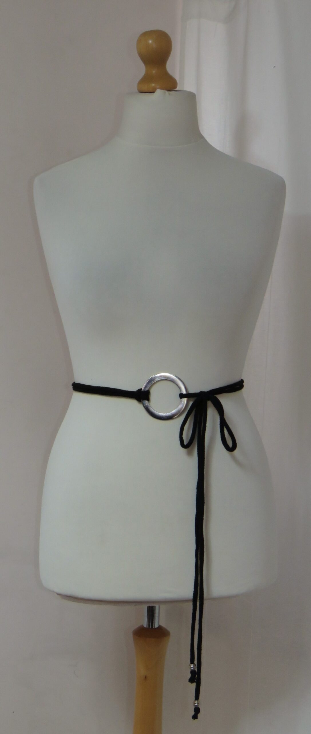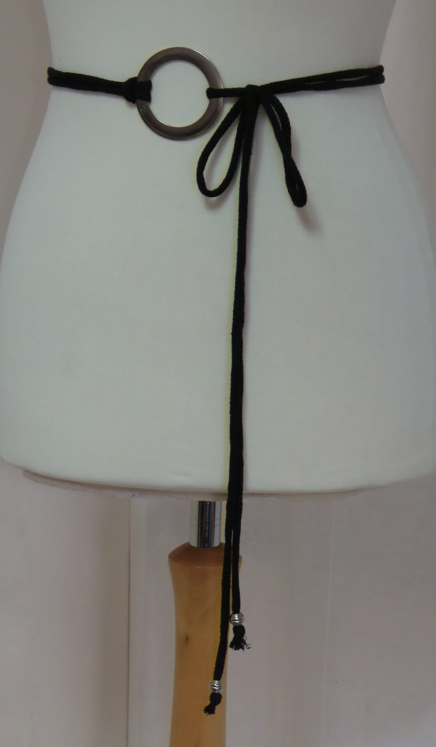 • Lariat style – you simply wrap it around the waist, thread through the ring and tie