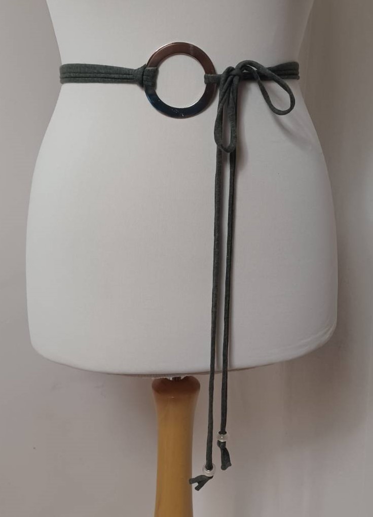 - To wear it as a hip belt, position the ring at the front, tie the threads at the back then bring round to the front and thread through the ring