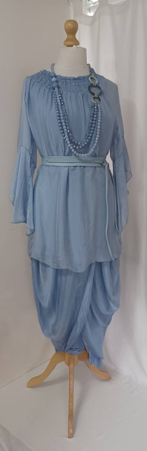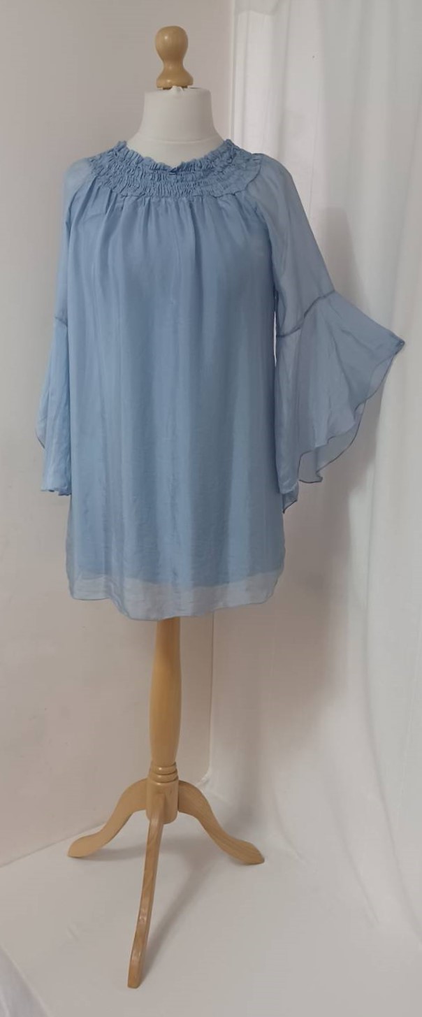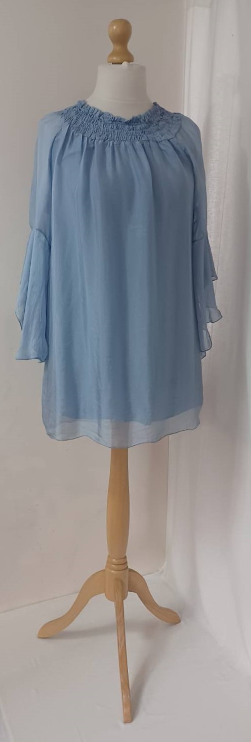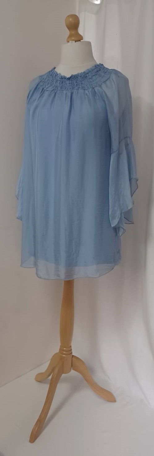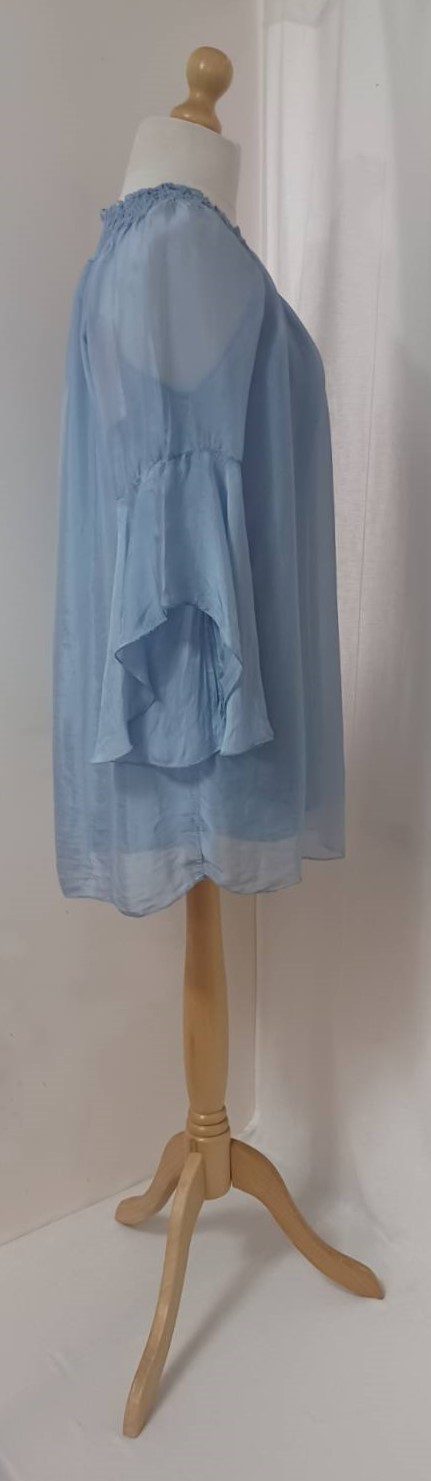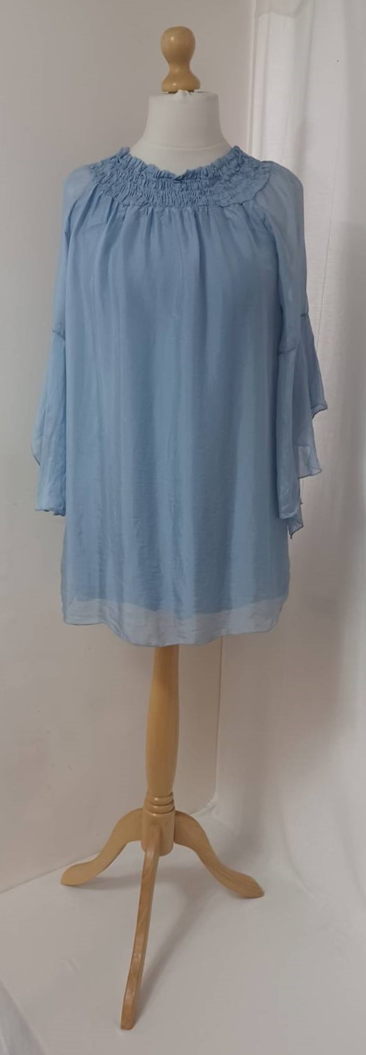 - Lagenlook, lavender blue, tunic blouse