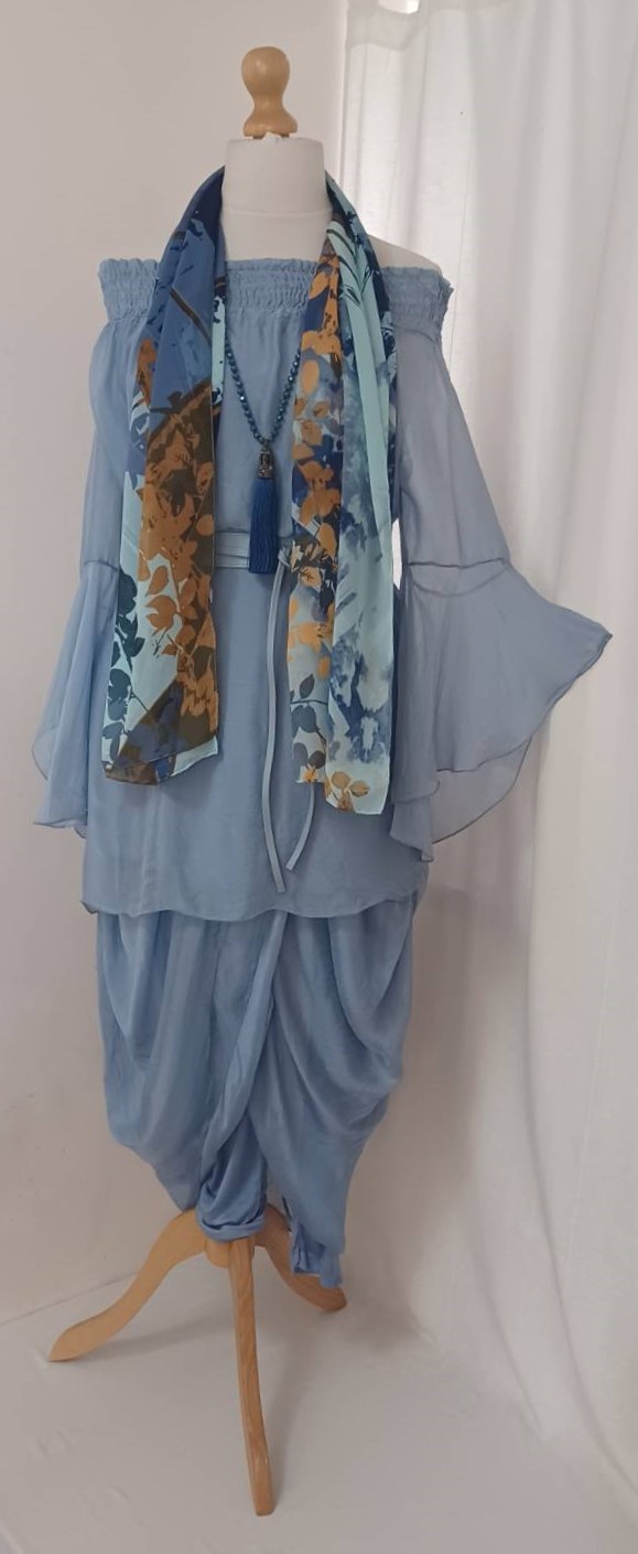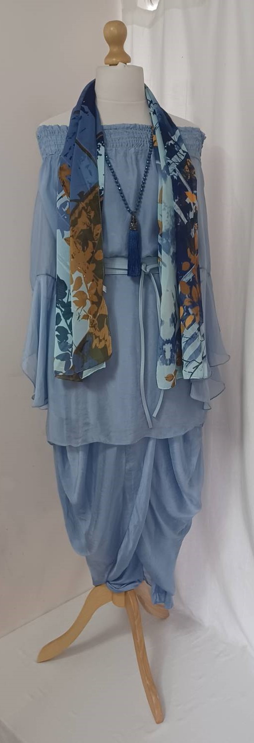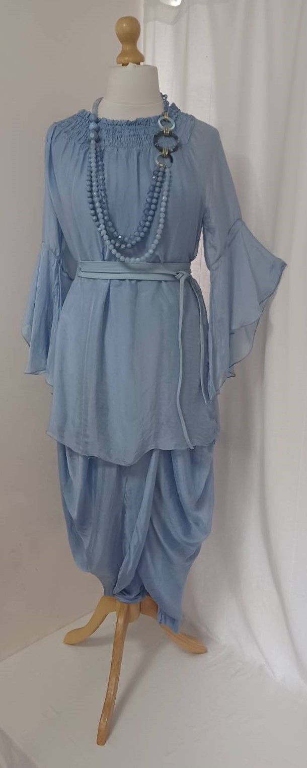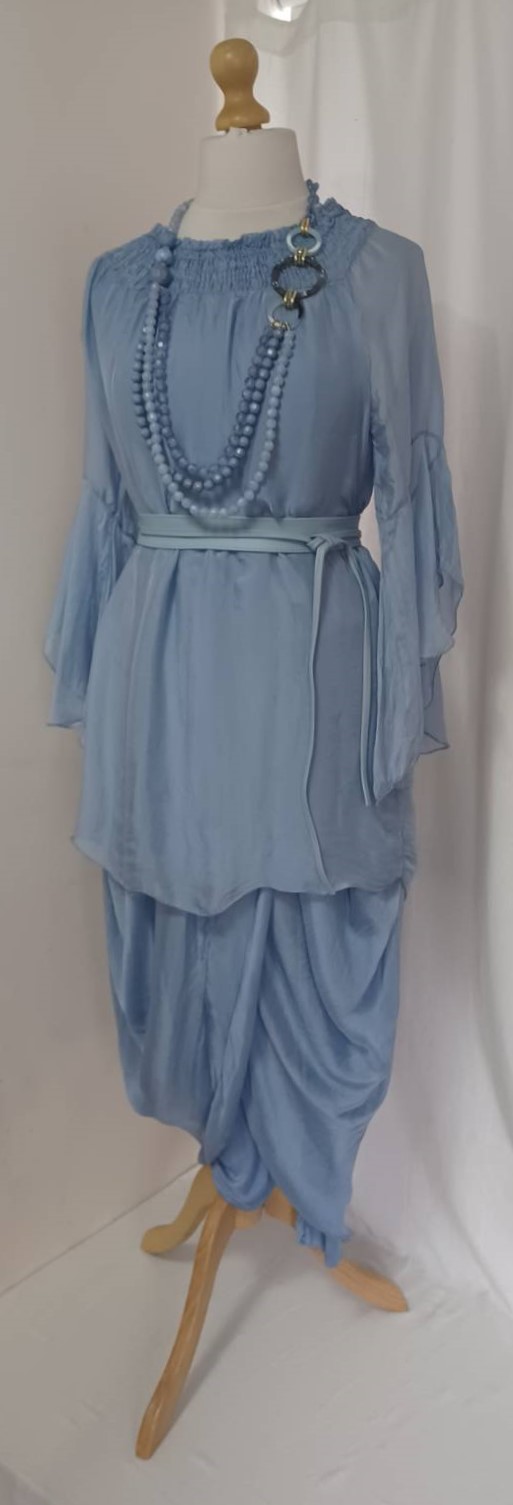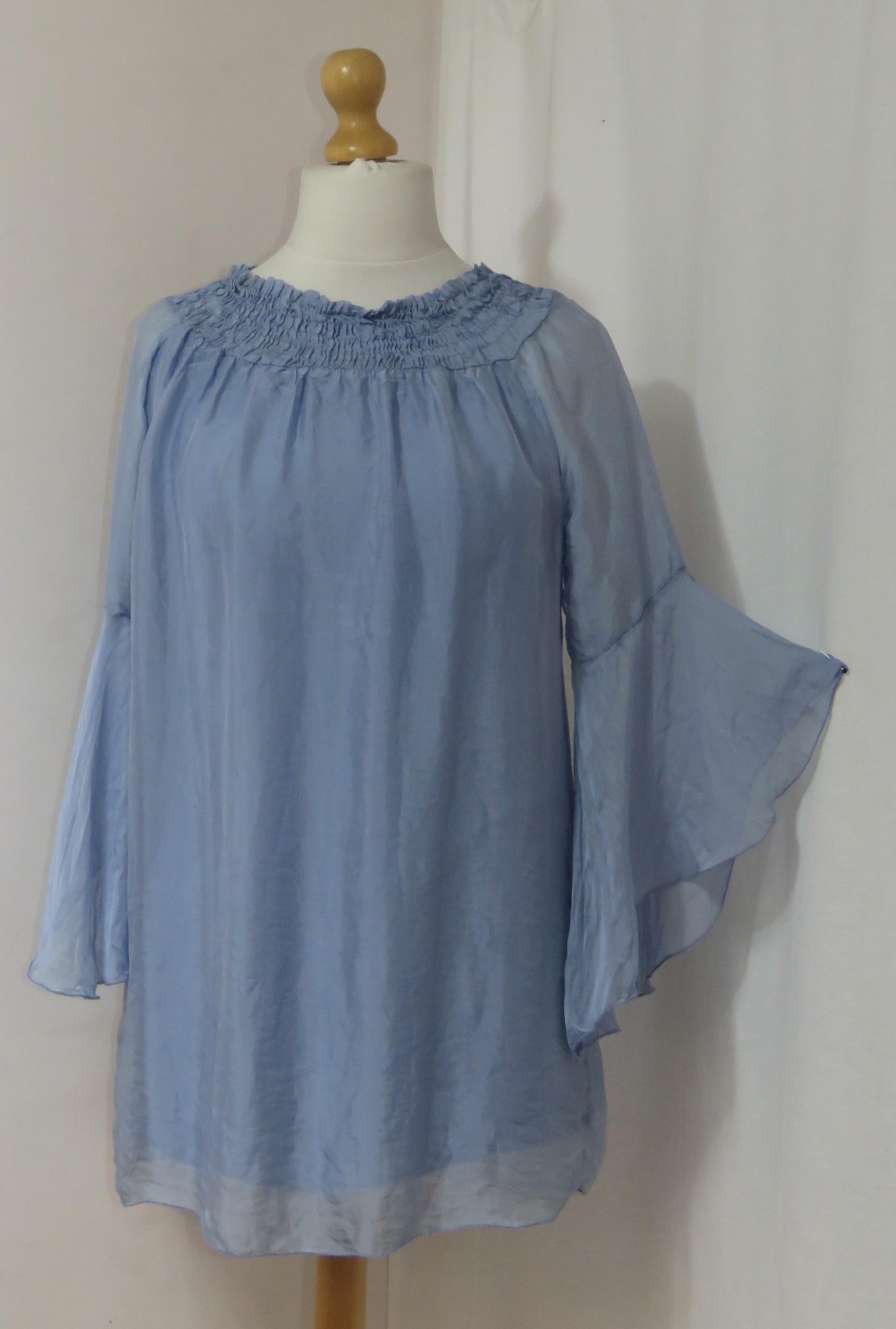 - Lagenlook, lavender blue, tunic blouse