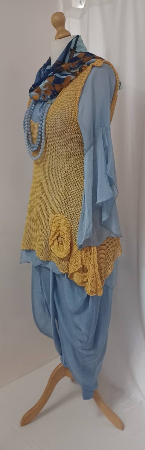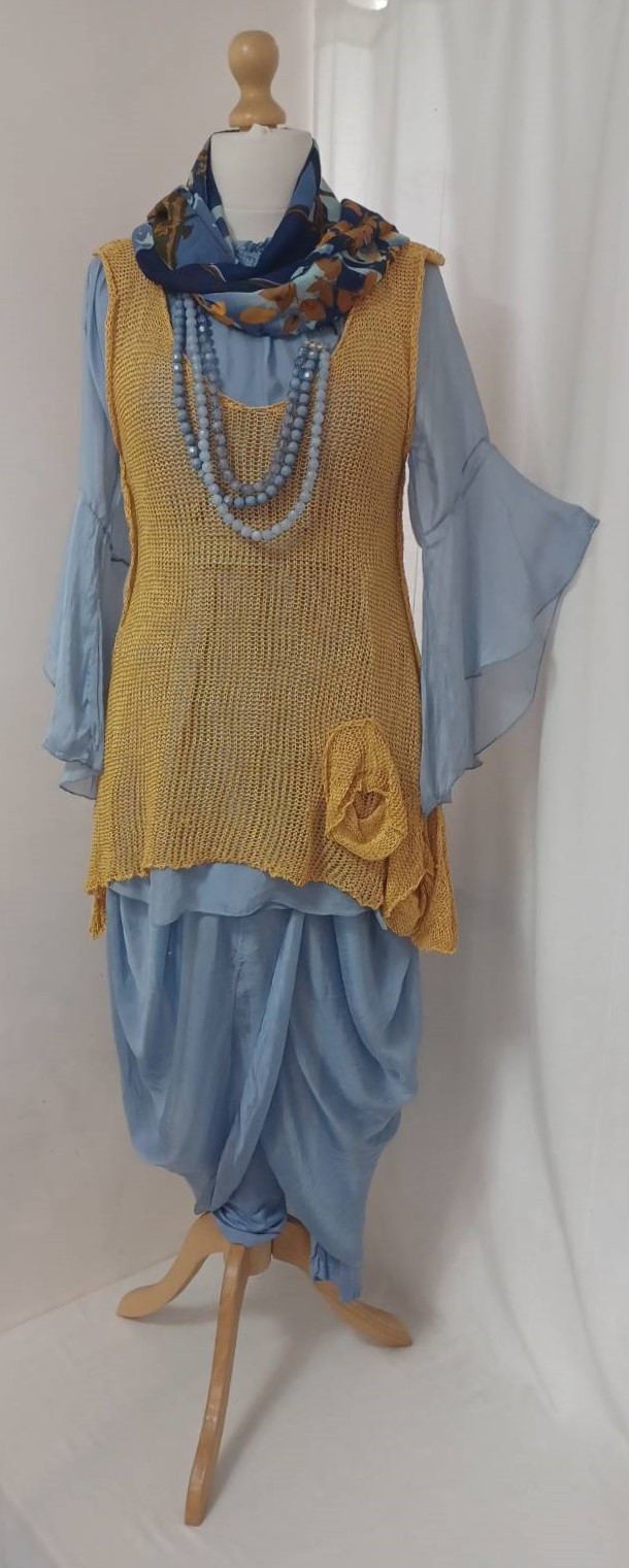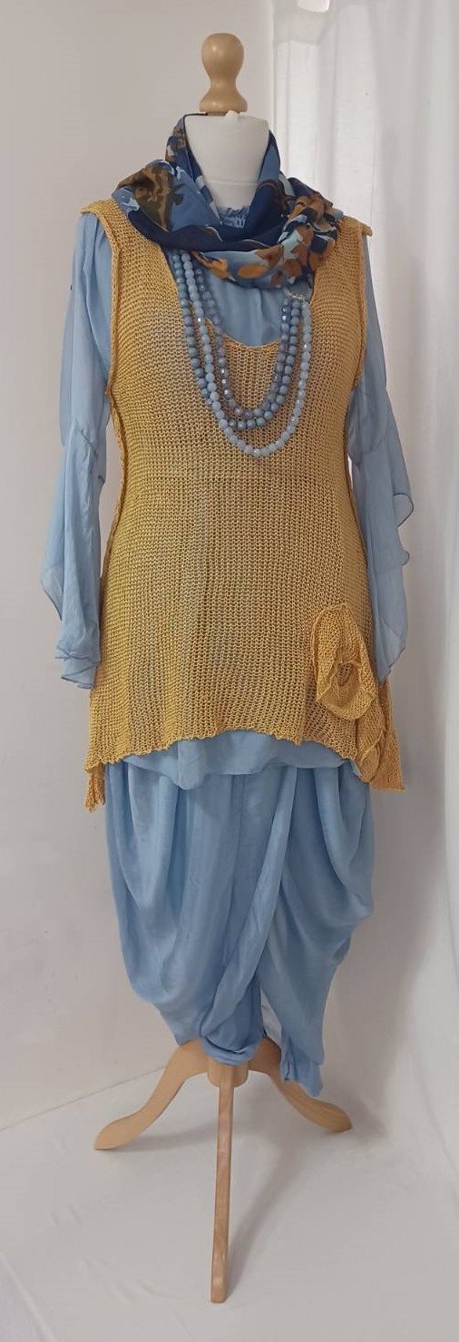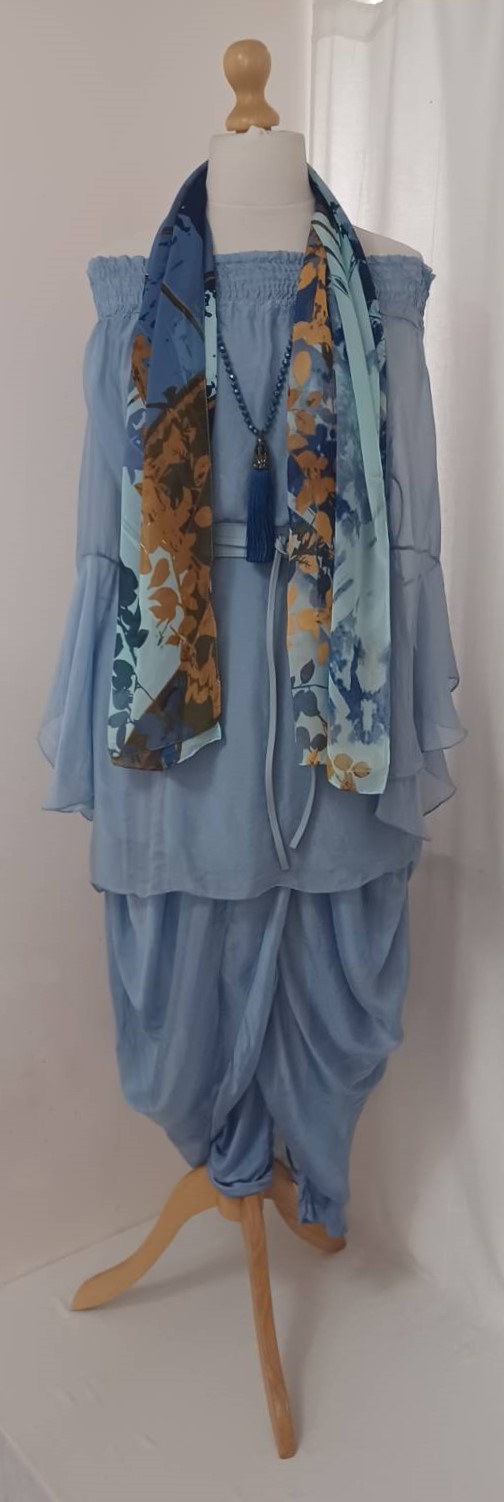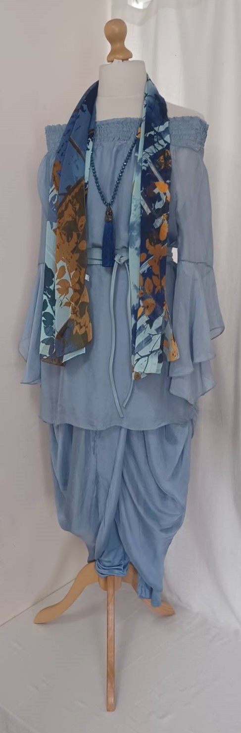 - Lagenlook, lavender blue, tunic blouse