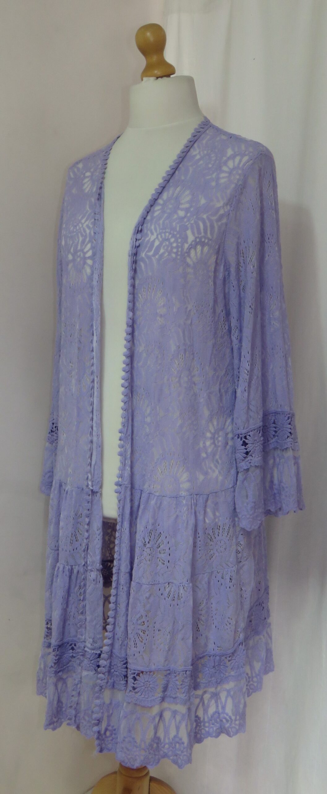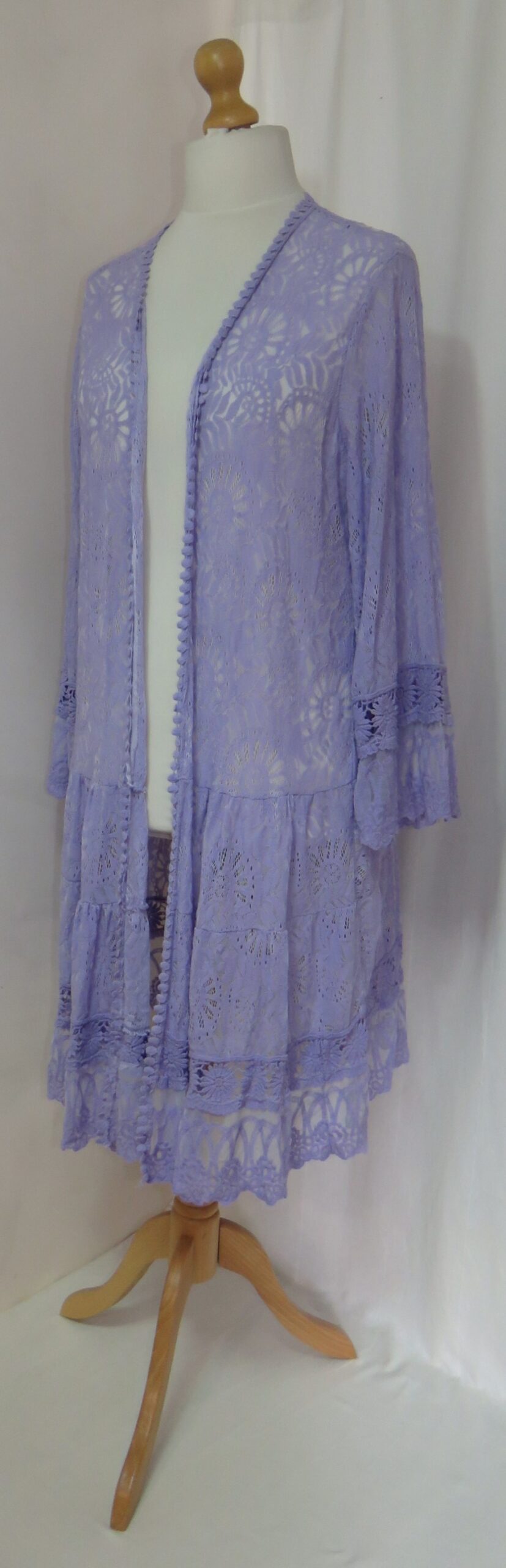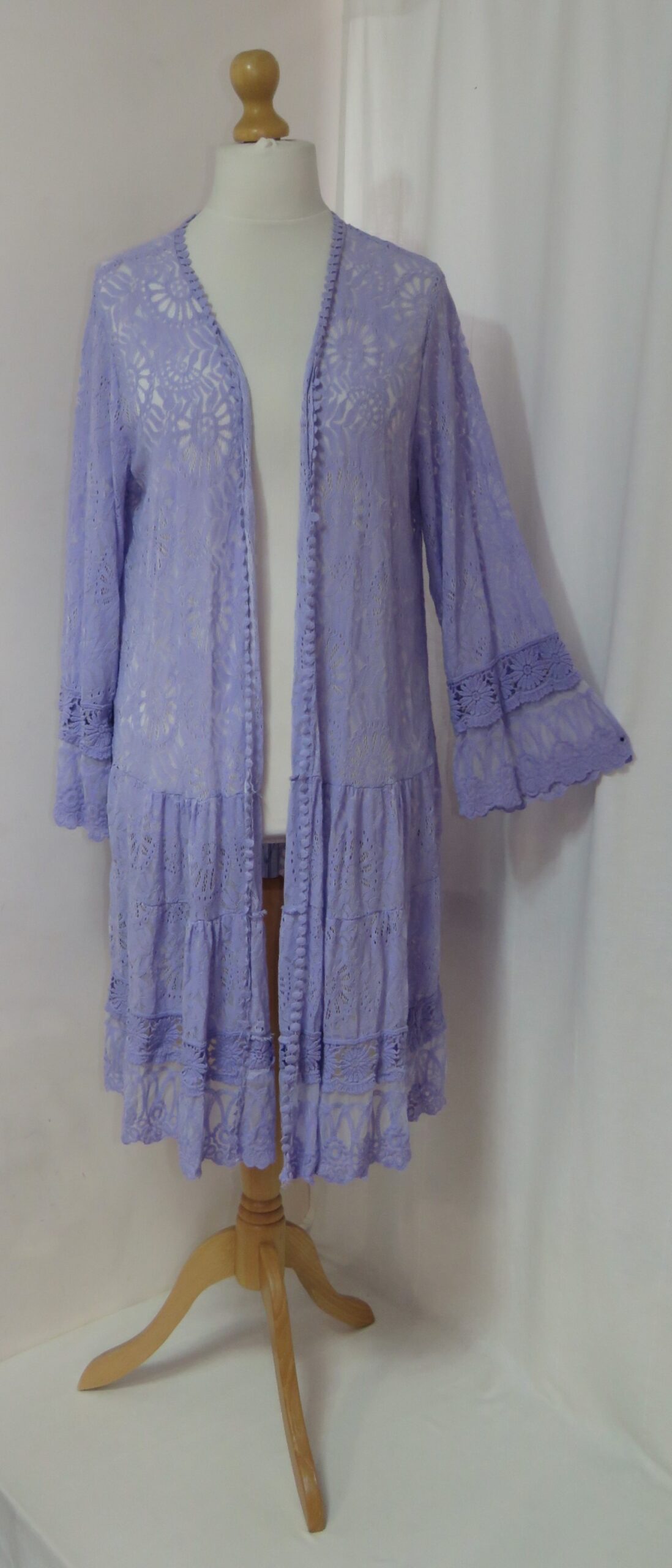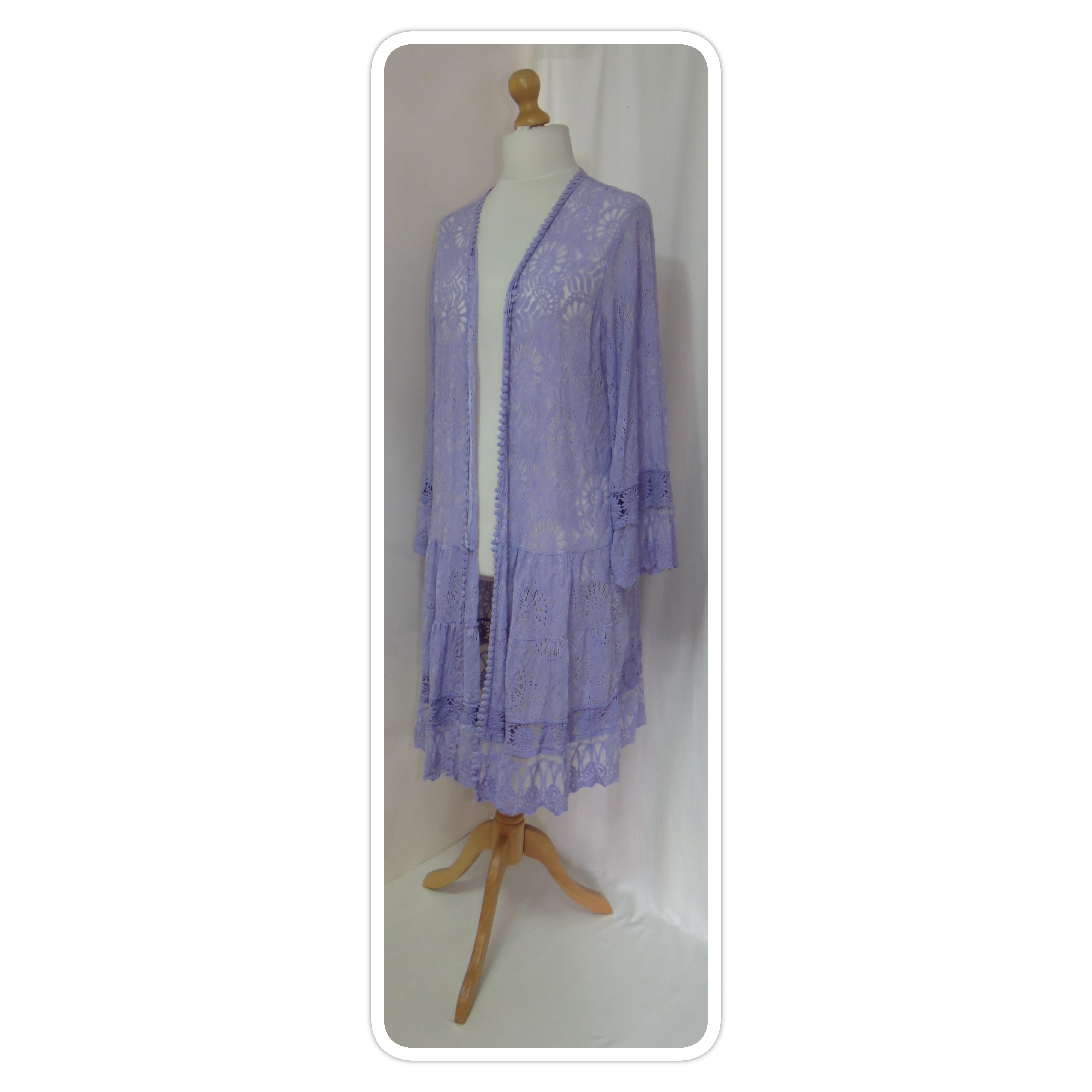 - Lagenlook, long, lilac cardigan