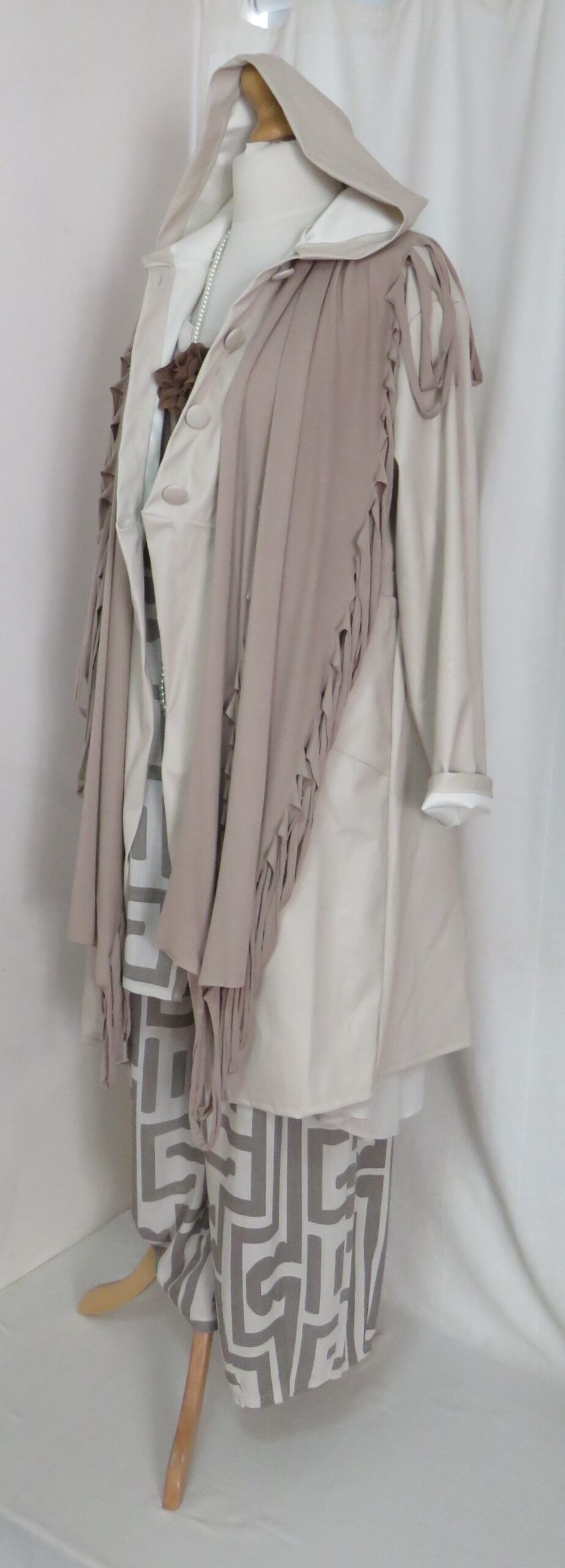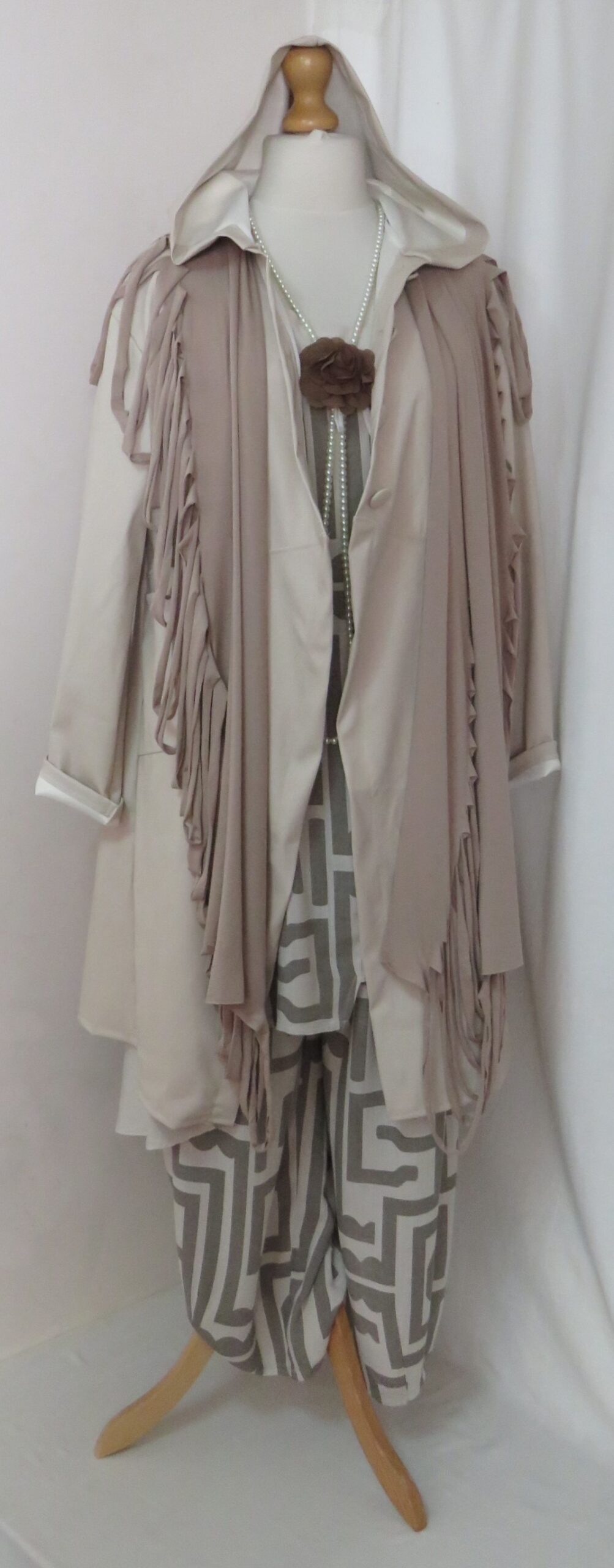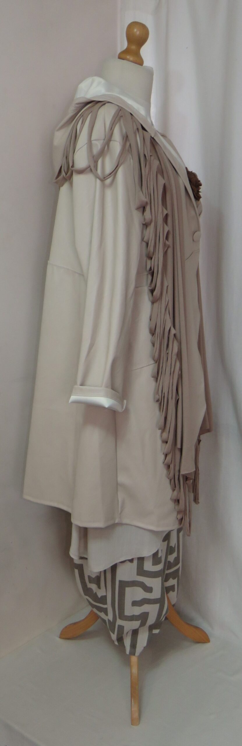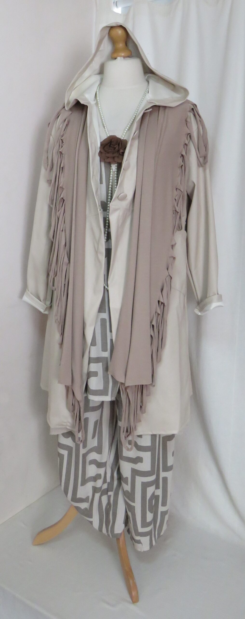 • Lagenlook, pale beige (bordering on cream) raincoat