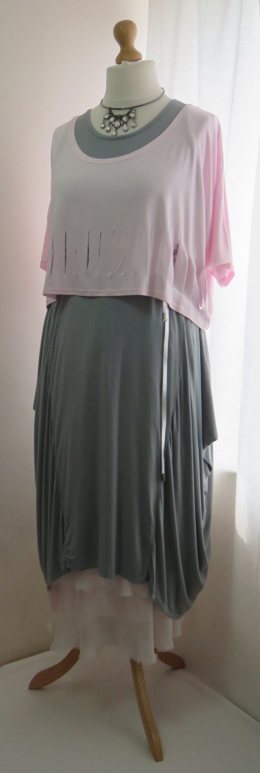 - Lagenlook, pale pink, cropped overtop by Cover Up