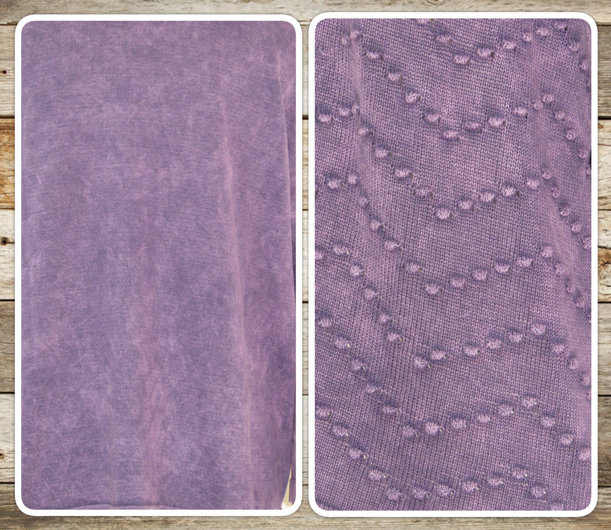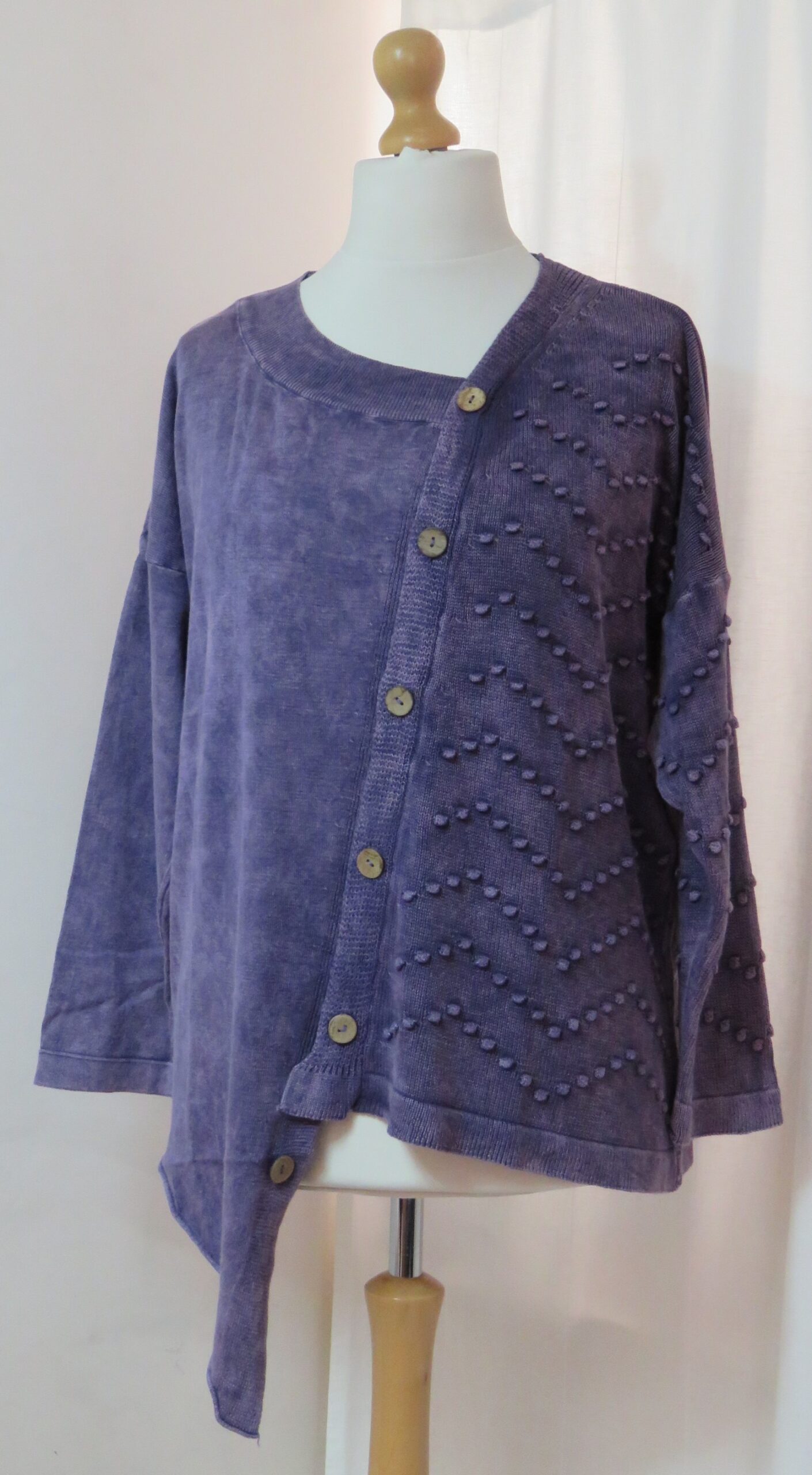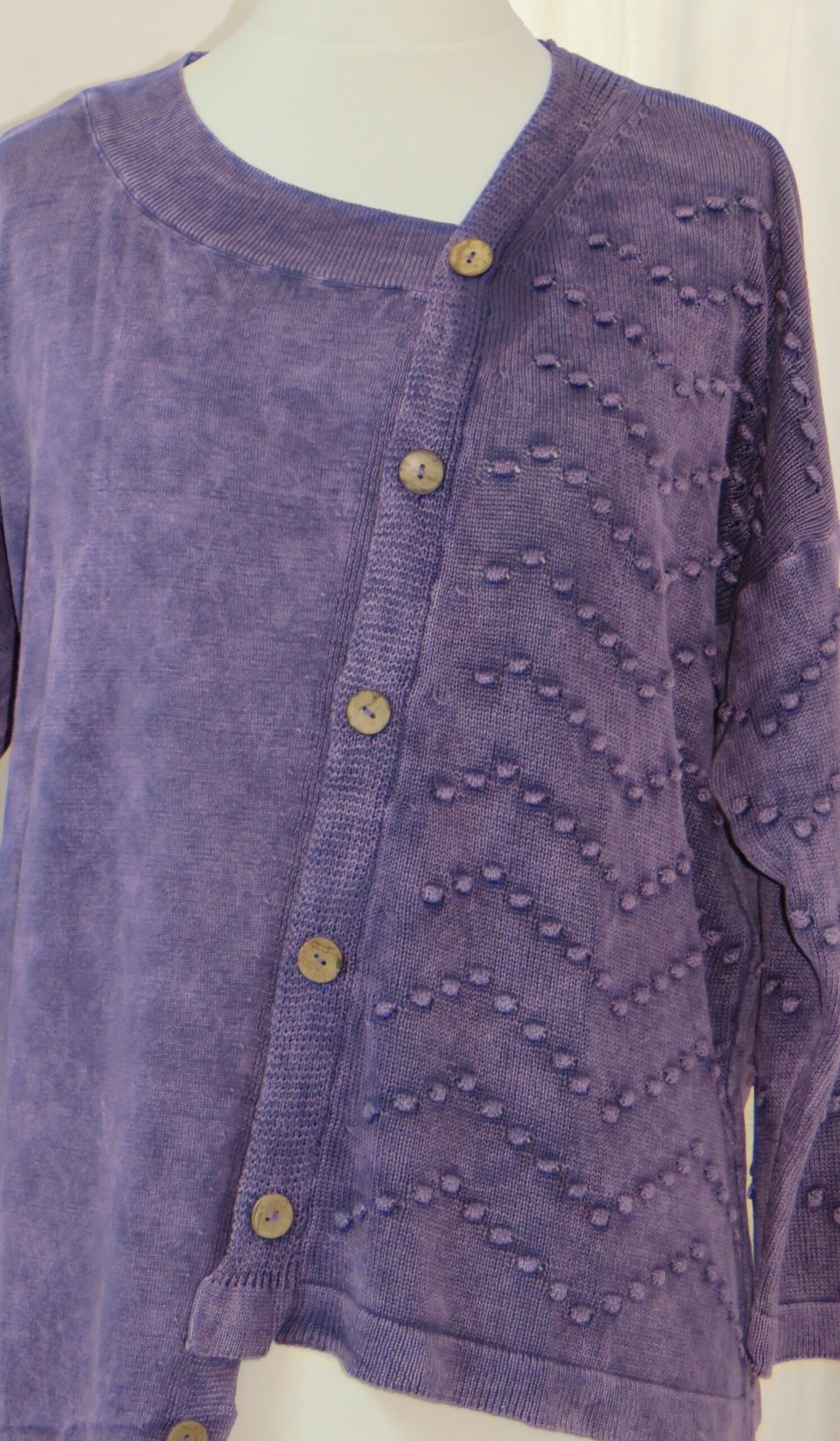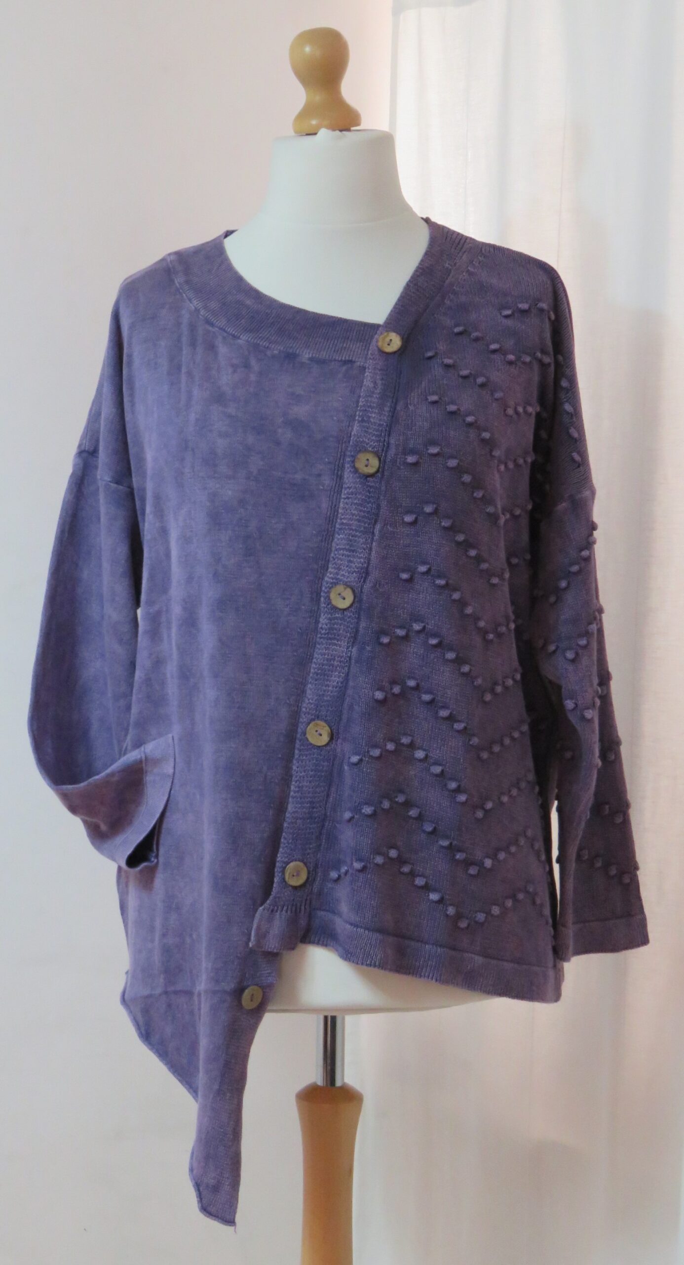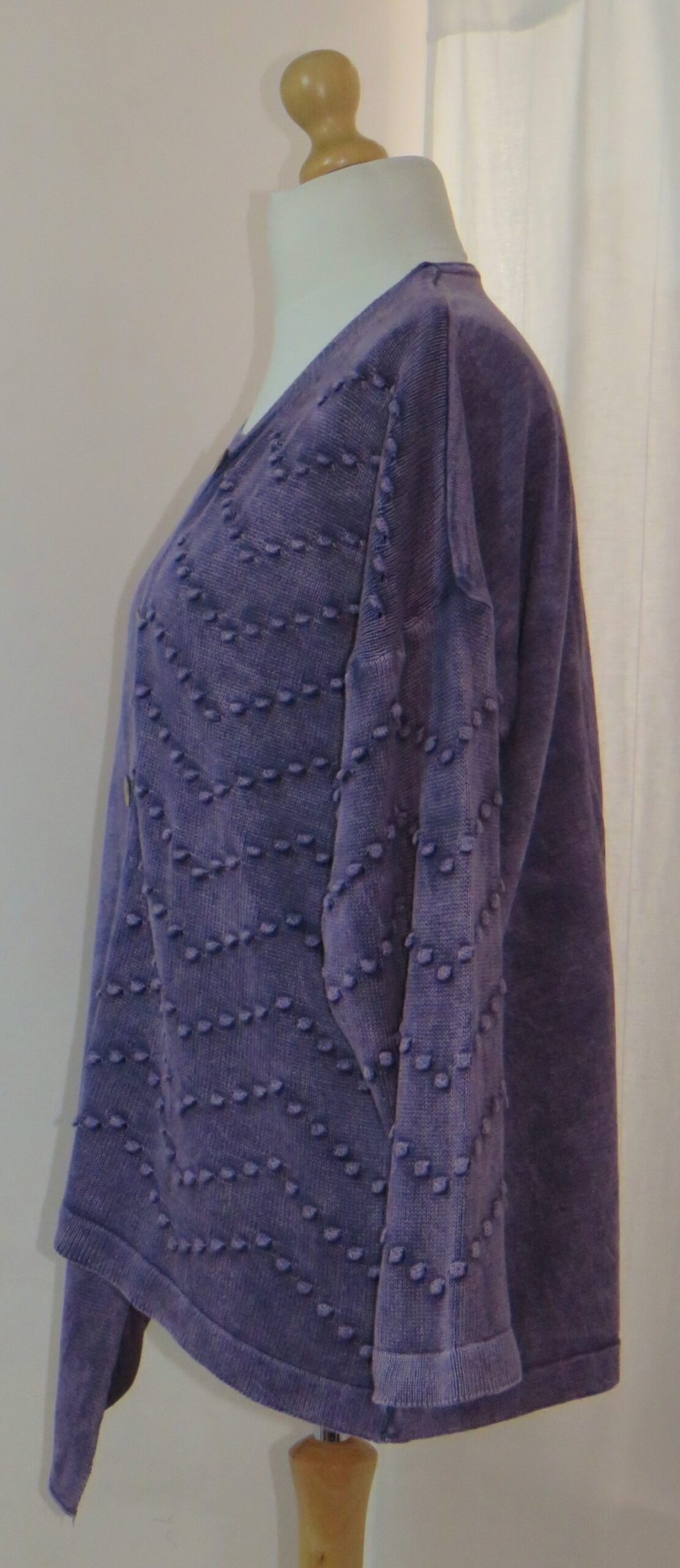 - Left front and sleeve are a fabulous “bobble” knit