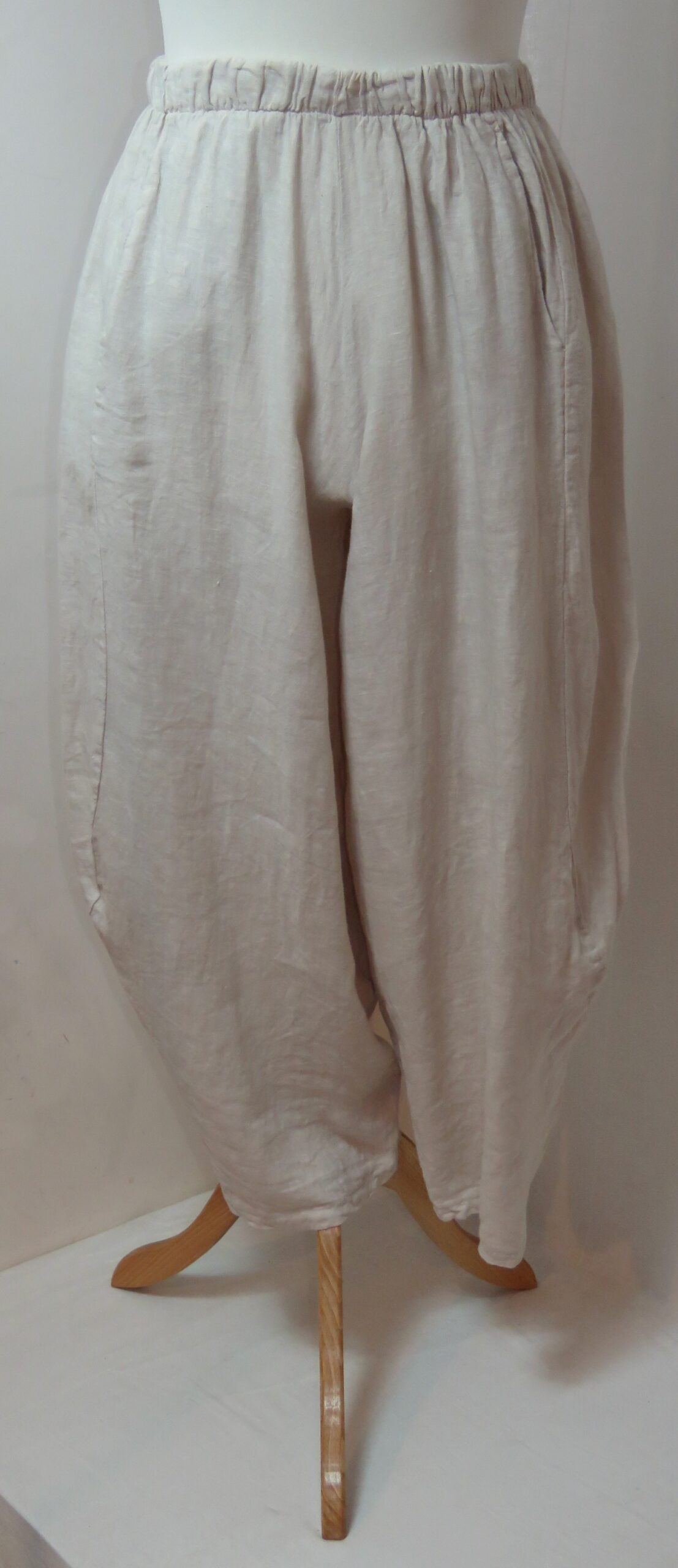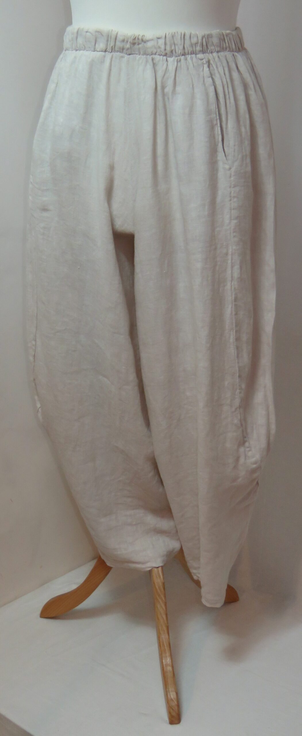 - Curved panels sewn into the sides,which gives them a flattering, baggy “balloon” shape