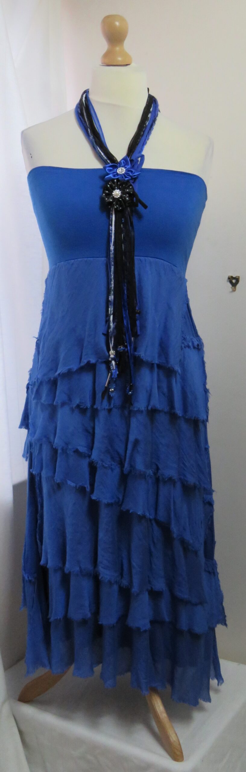 - Can also be worn pulled up over the bust, as a strapless dress