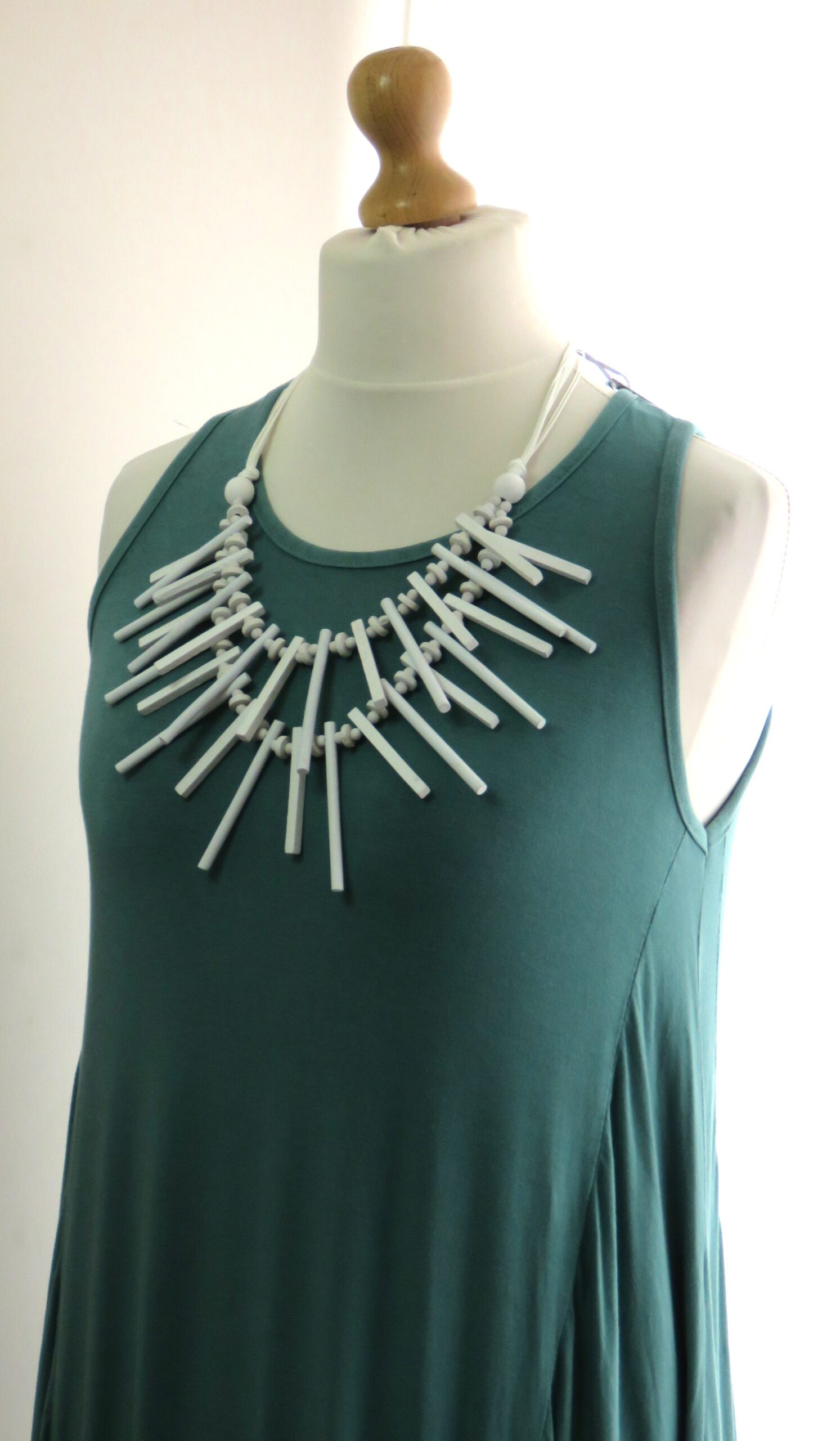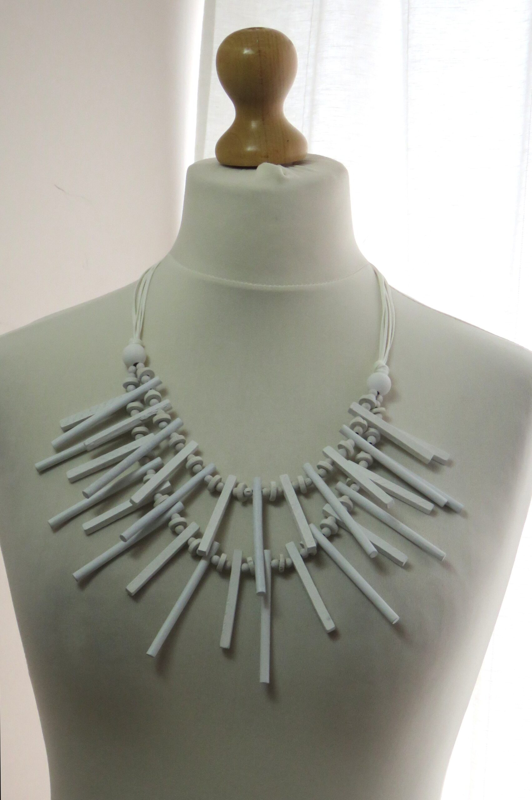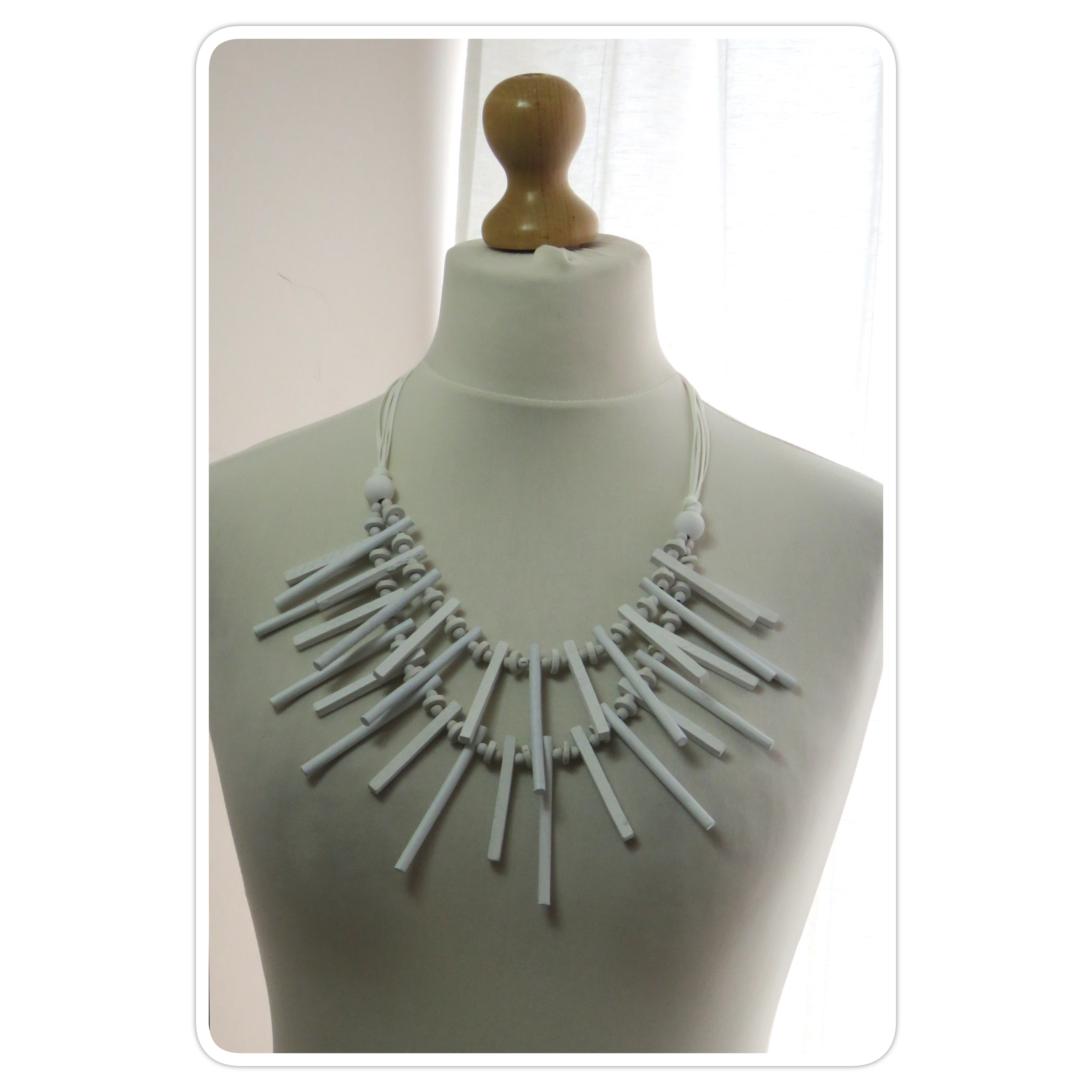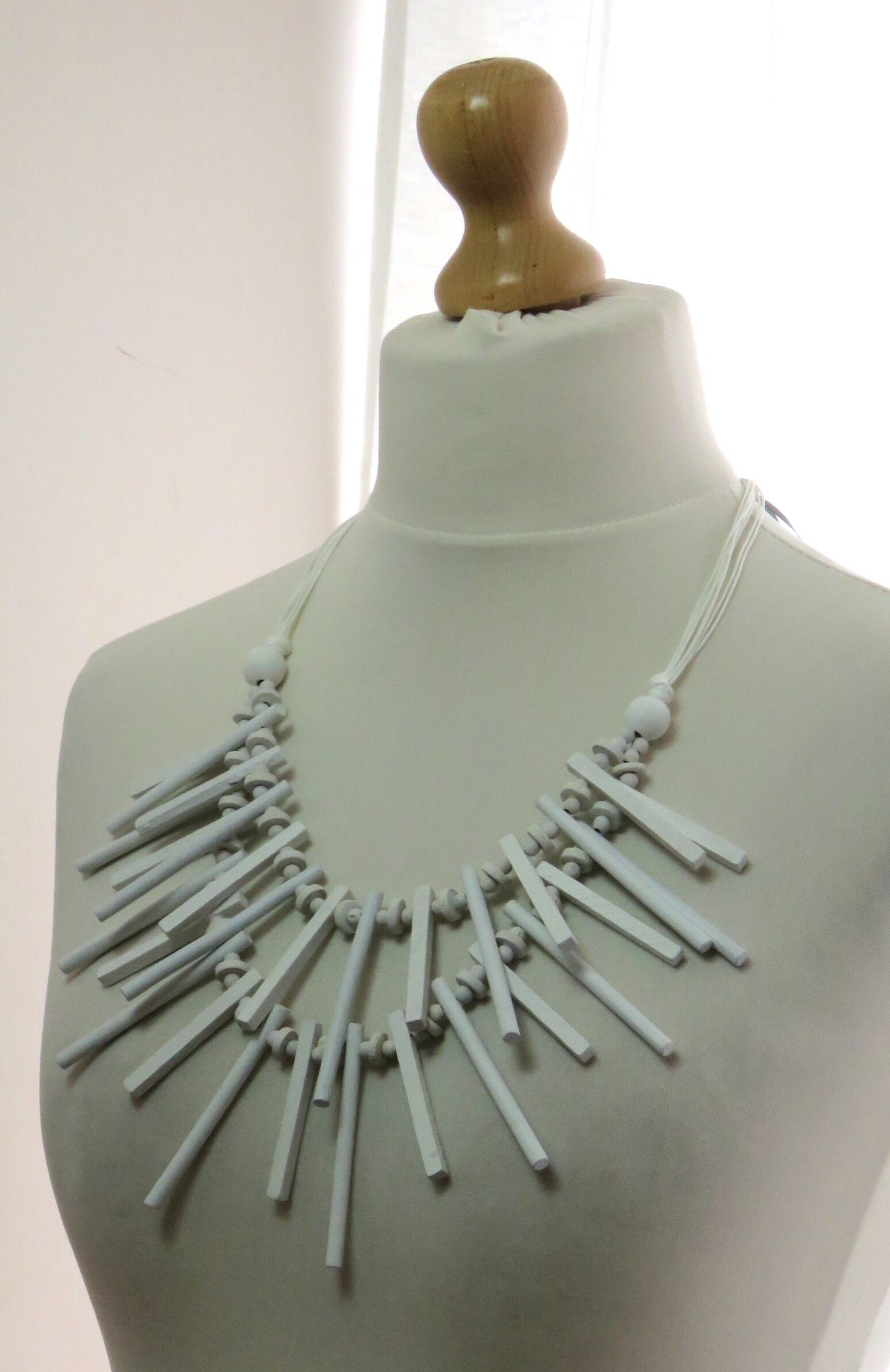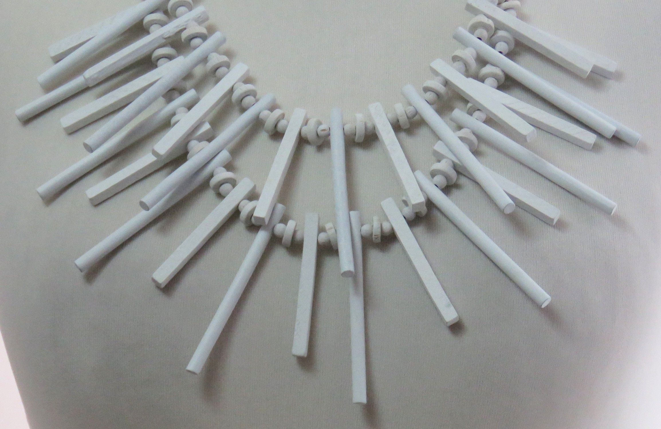 Statement, white, wood, stick-style necklace