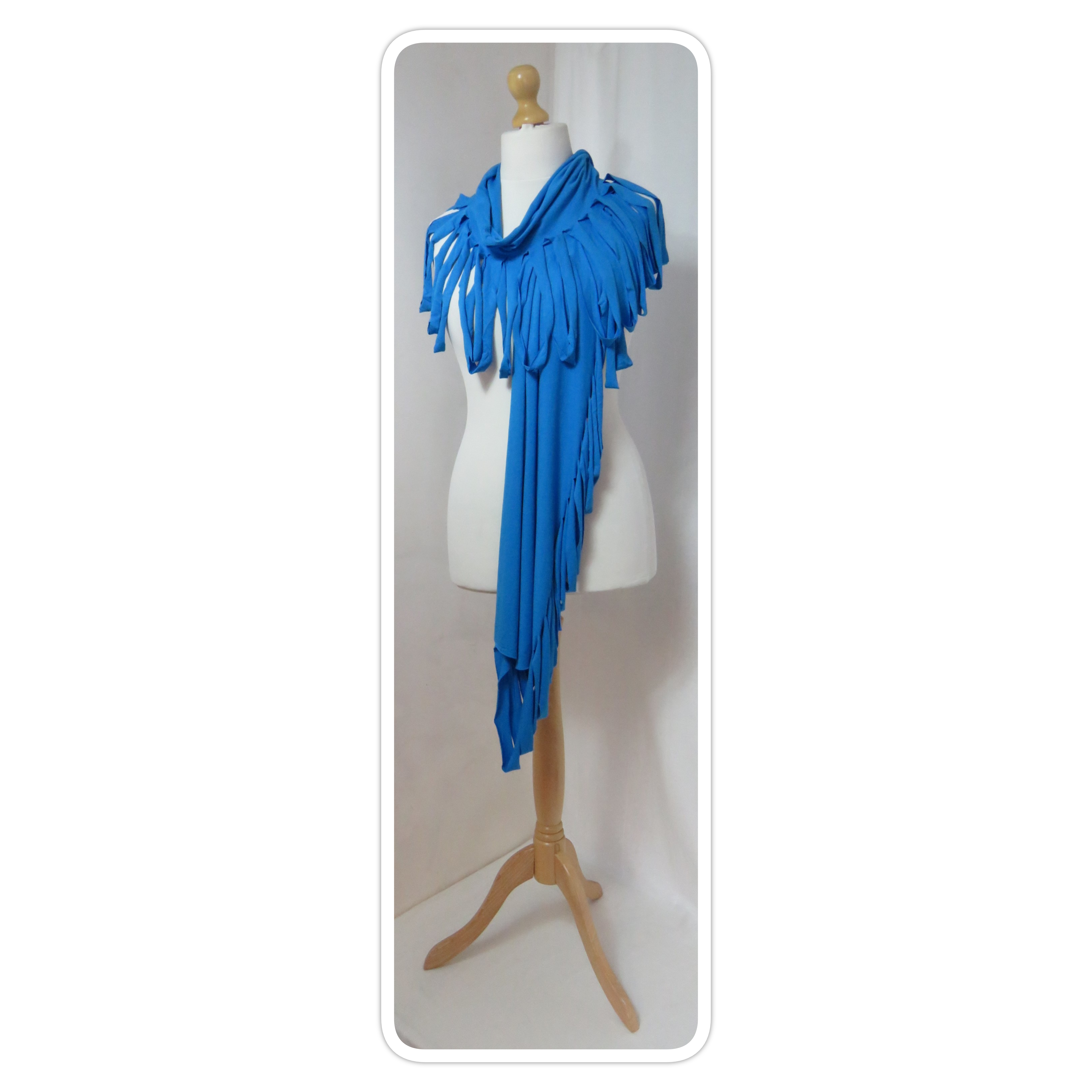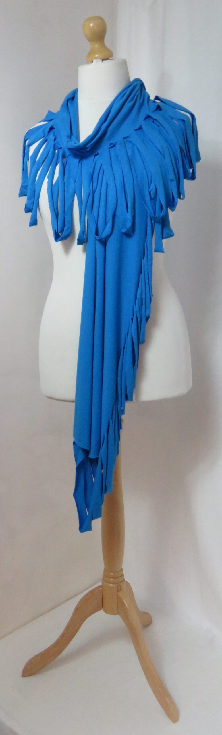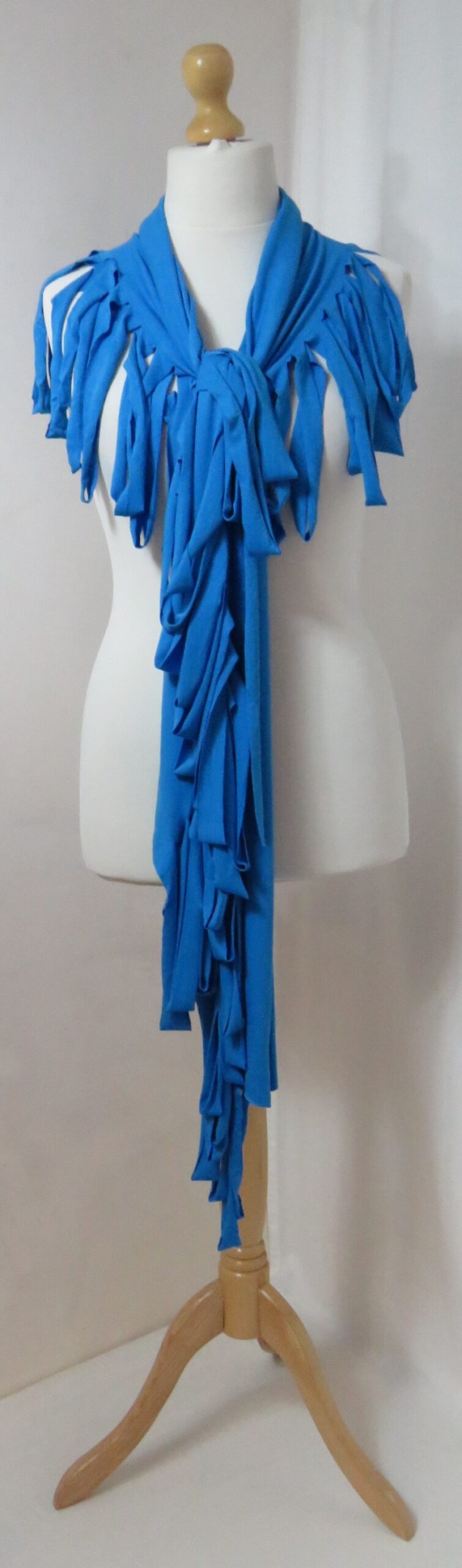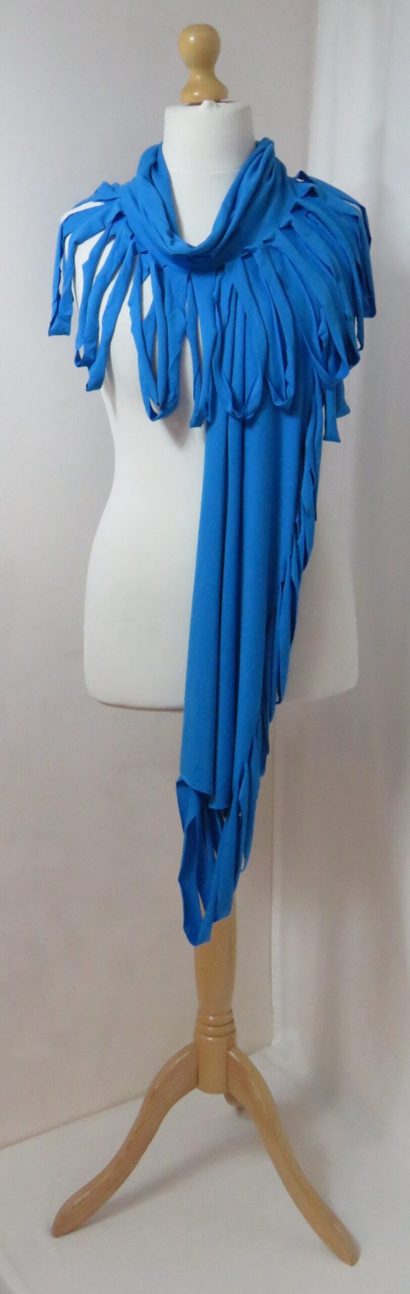 This is a fabulous, turquoise Lagenlook, jersey, ladder scarf. It measures approx. 197cms x 71cms (measurements may vary slightly – if you want to know exact measurements, please contact me) and can be worn in many different ways. You can: