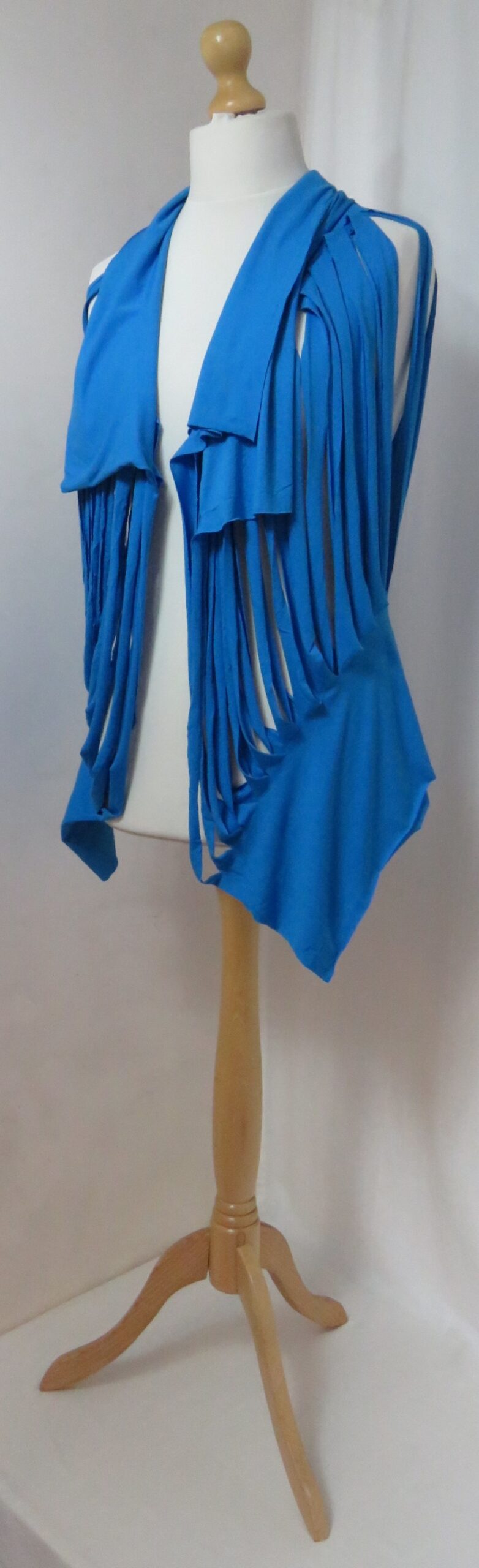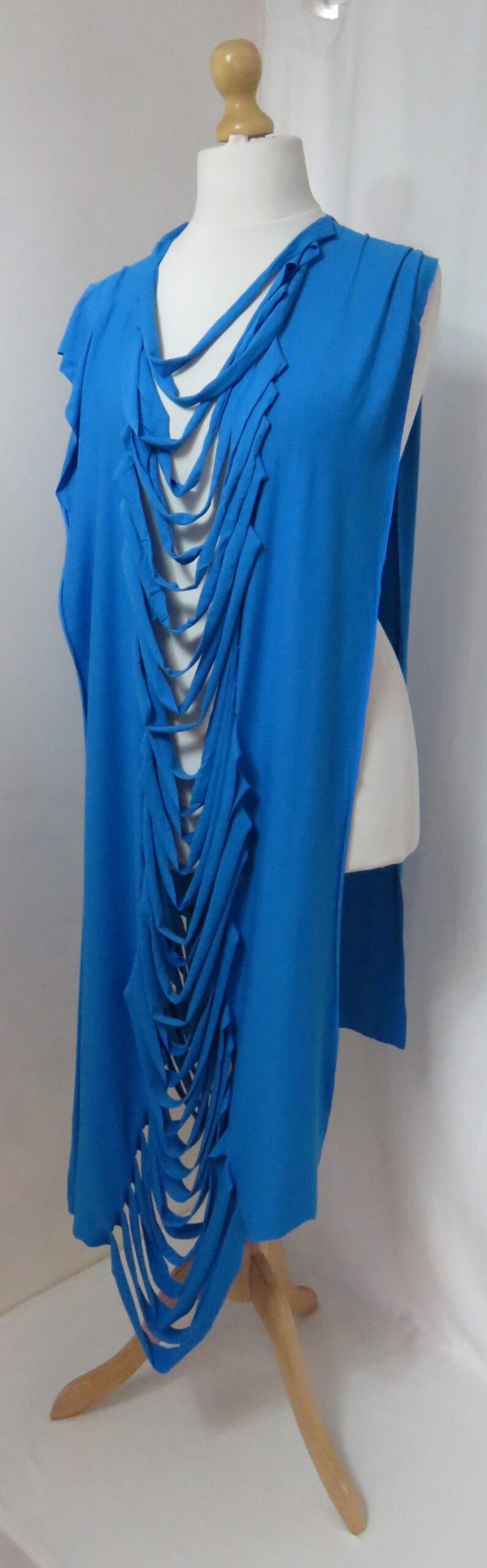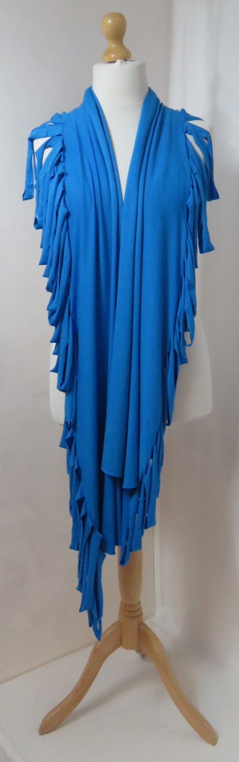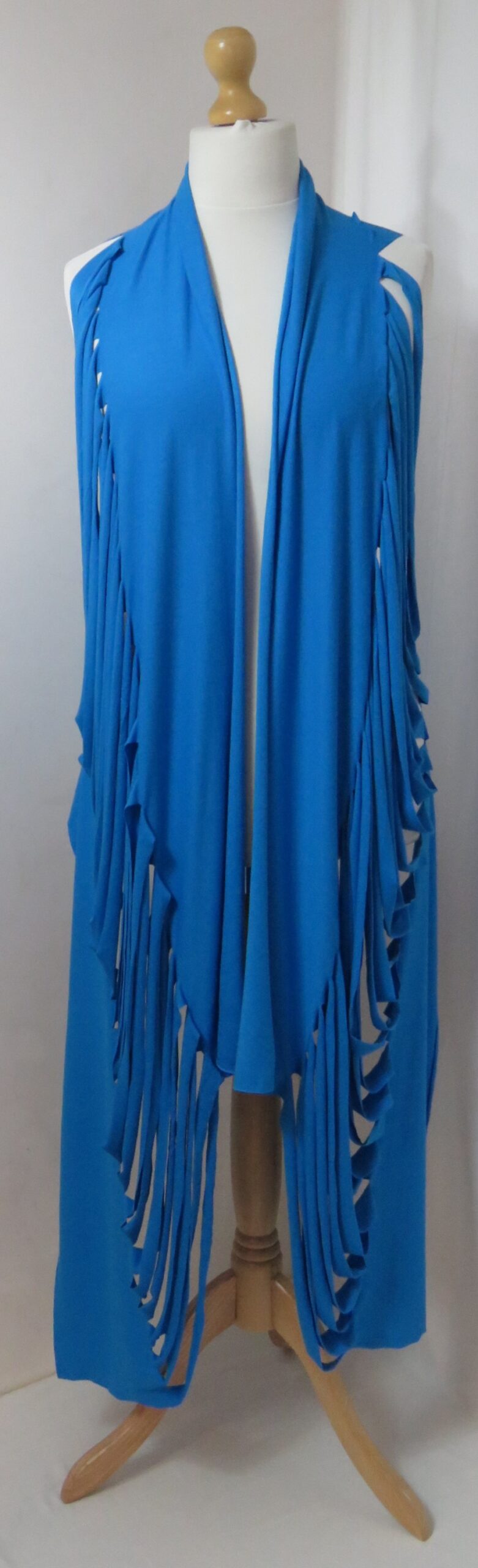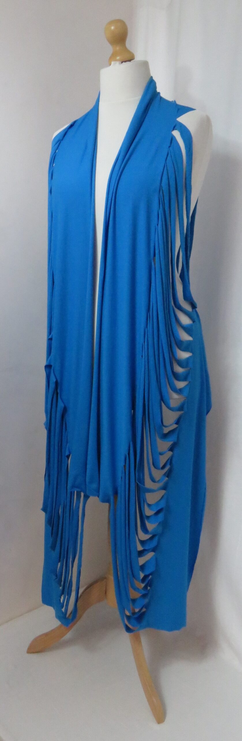 This is a fabulous, turquoise Lagenlook, jersey, ladder scarf. It measures approx. 197cms x 71cms (measurements may vary slightly – if you want to know exact measurements, please contact me) and can be worn in many different ways. You can: