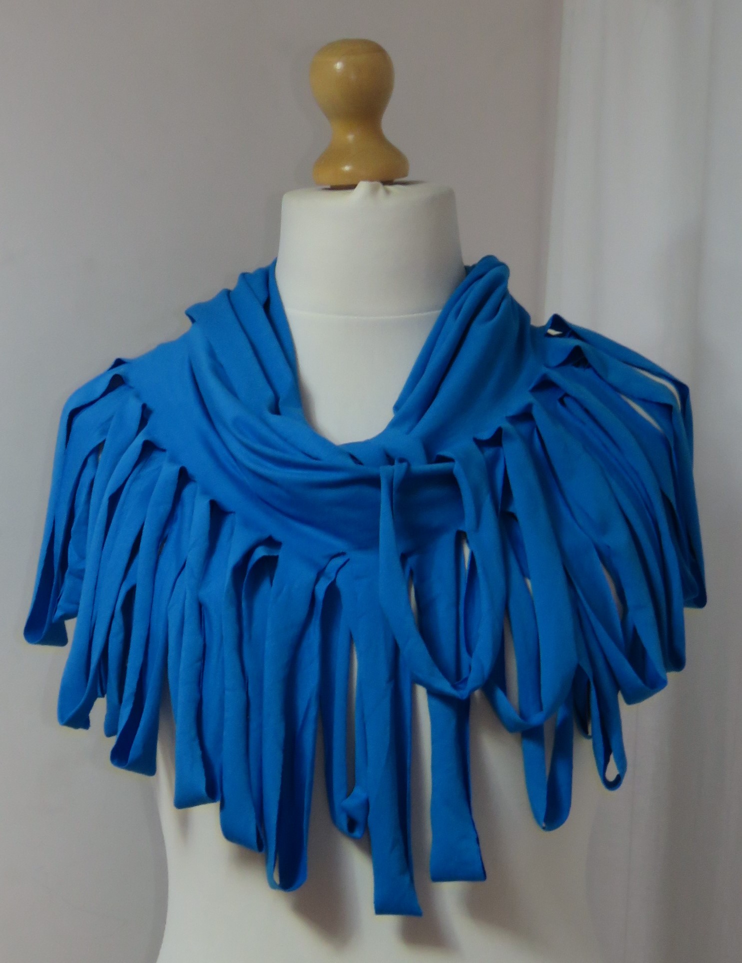 - Fold it in half lengthways and wear as a loopy-edged scarf