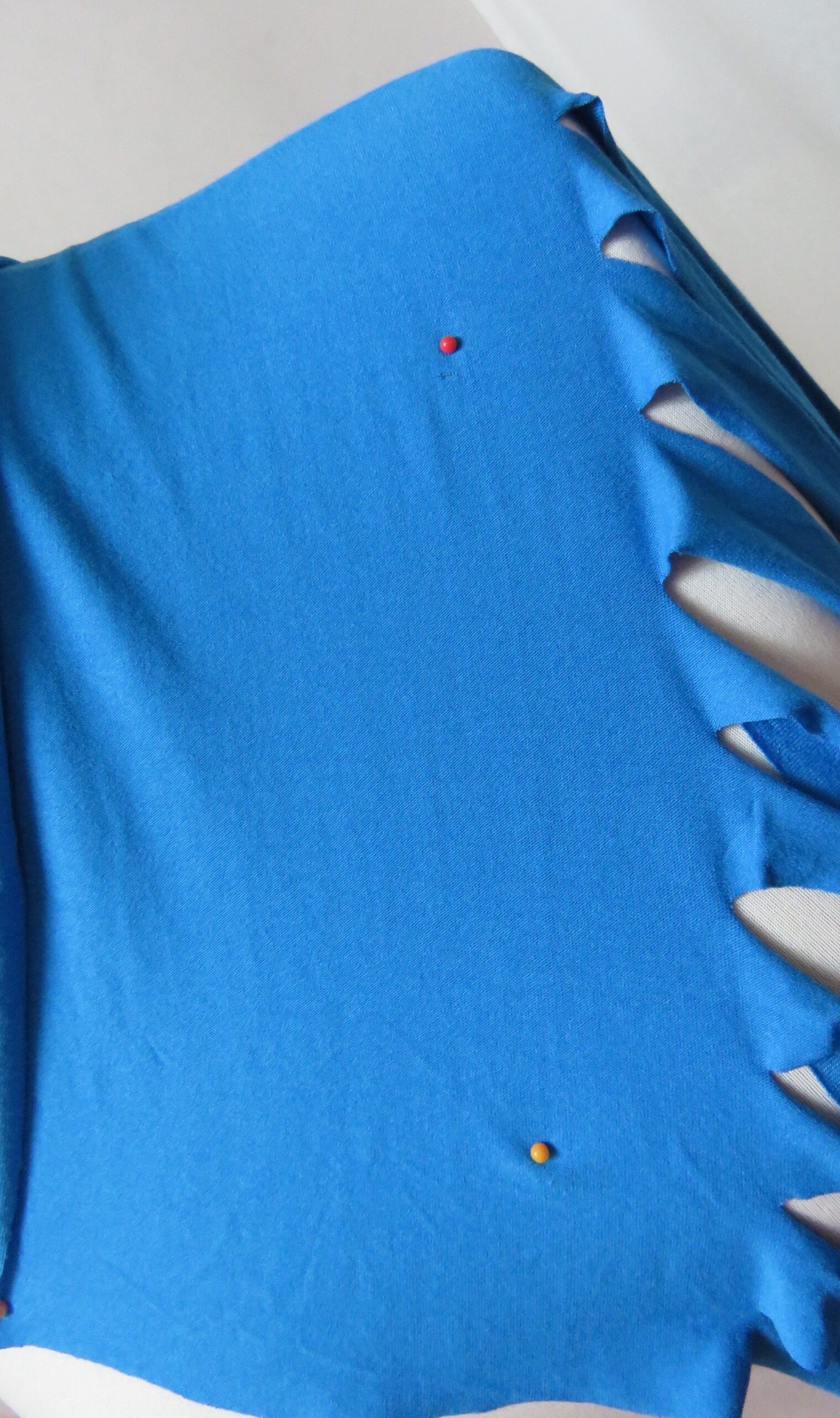 - Turn it horizontally, fold it in half and put your arms through the slits, to create a short waistcoat/bolero
