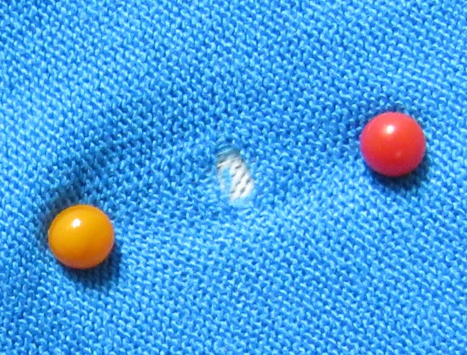 PLEASE NOTE – this item is a “second”. It has 2 very small holes towards one end (photos 14, 15 & 16 show the holes marked by the pin heads; in photos 17, 18 & 19, I’ve stretched the fabric out, so you can see them more easily). I’ve taken £1 off my normal asking price to reflect this.