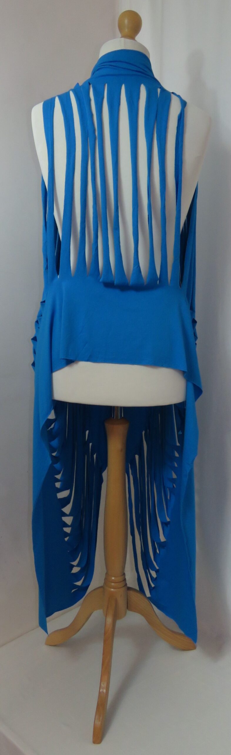 - Turn it horizontally and put your arms through the slits to create a long waistcoat