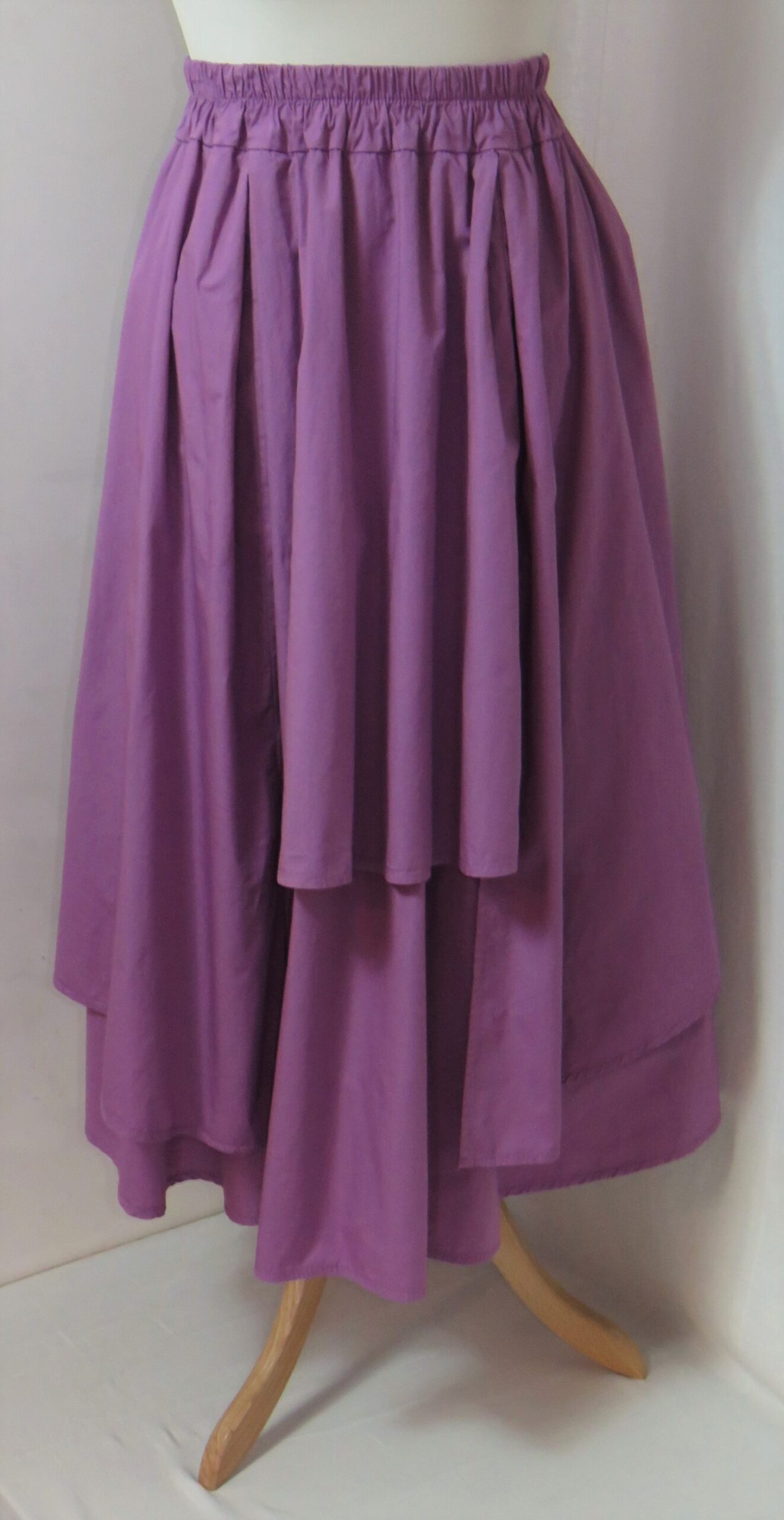 - Double-layered – a full, under layer and an asymmetrical top layer, with pleats at the waist