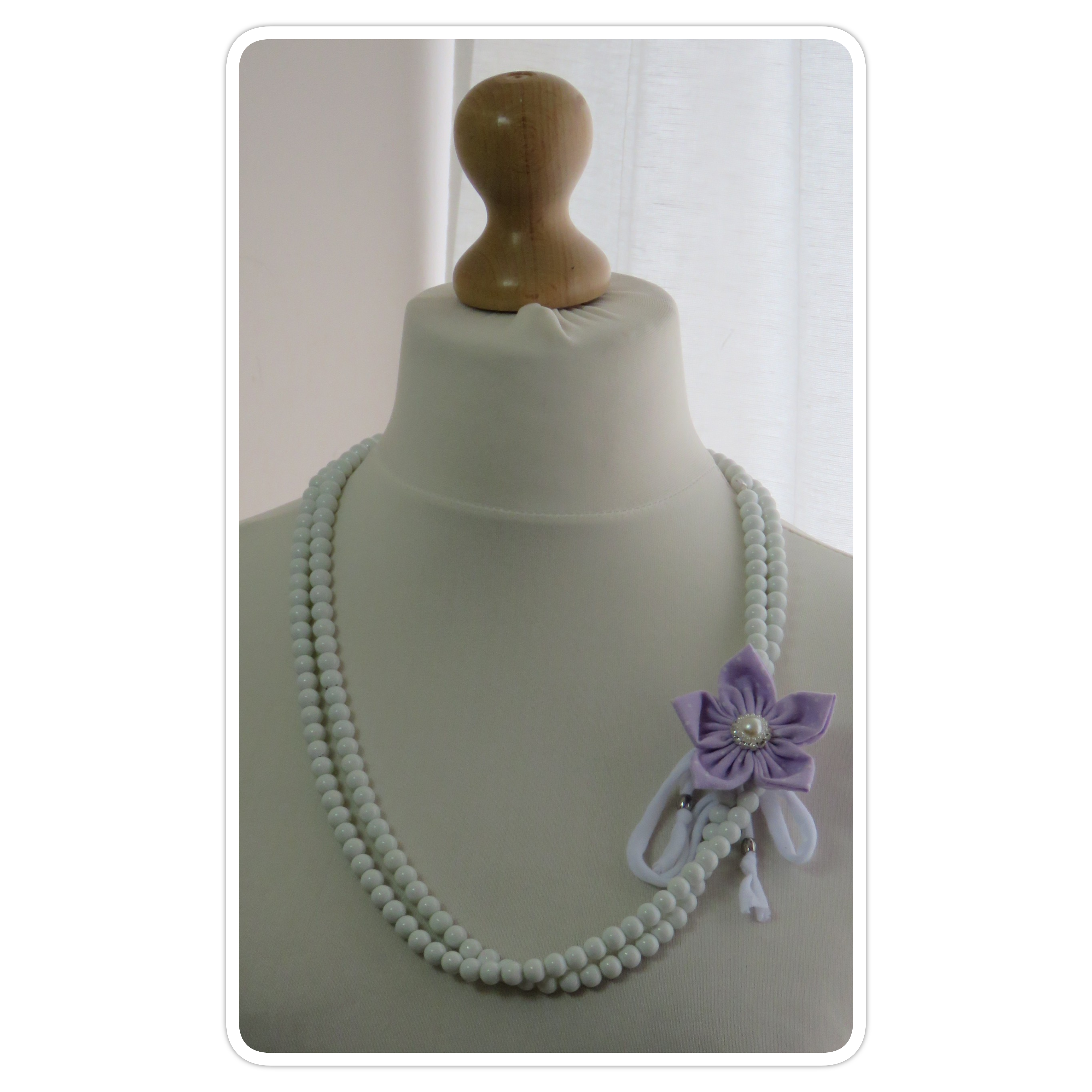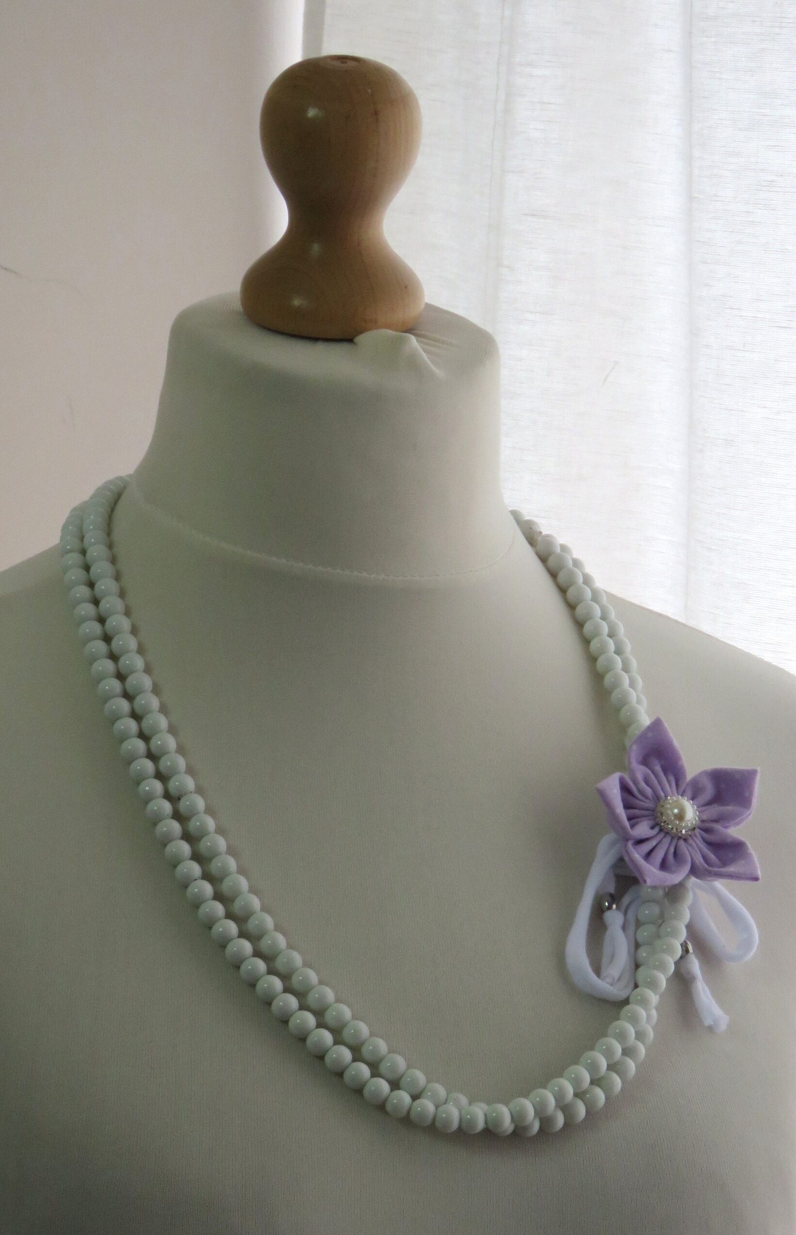 • Fabulous necklace, comprising a long strand of white, glass, pearl-style beads and a removable flower